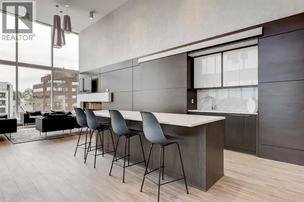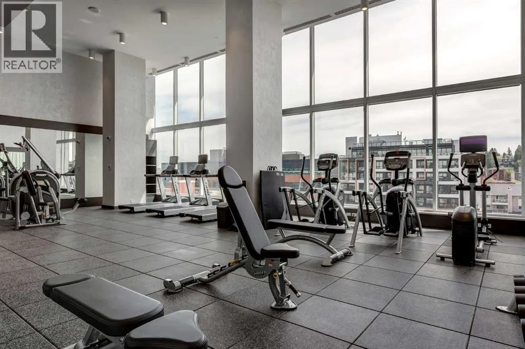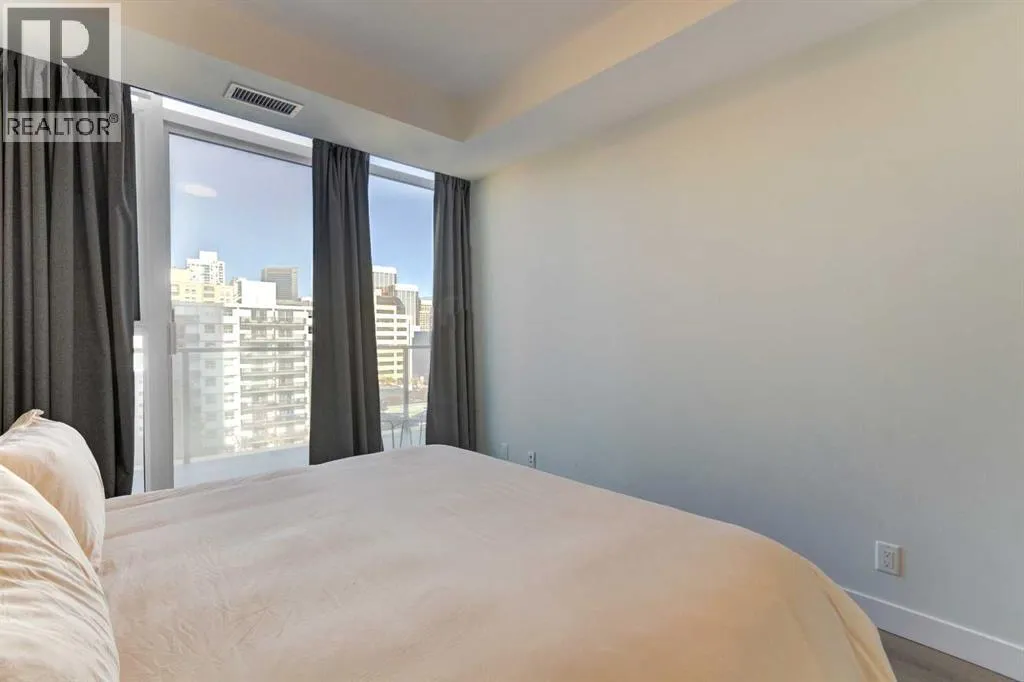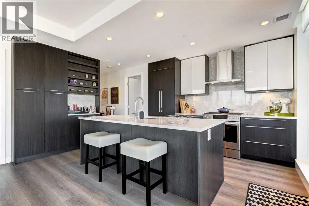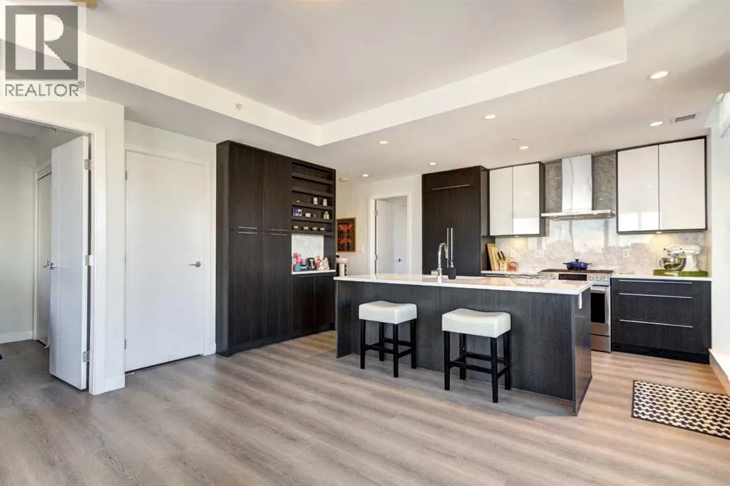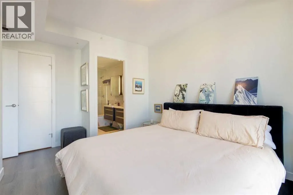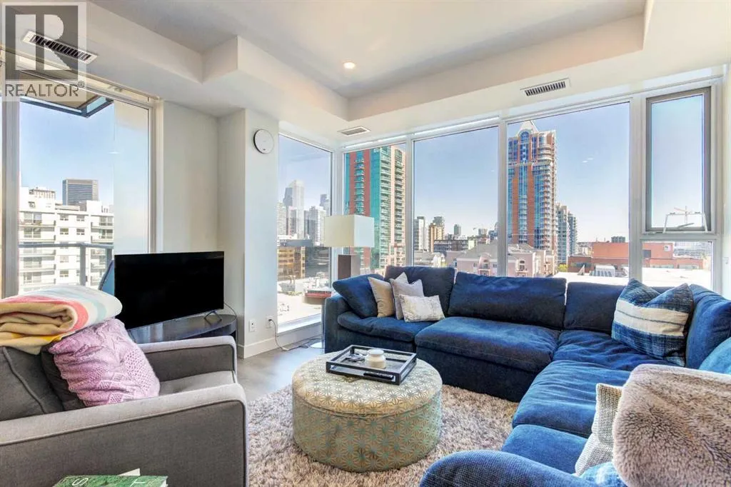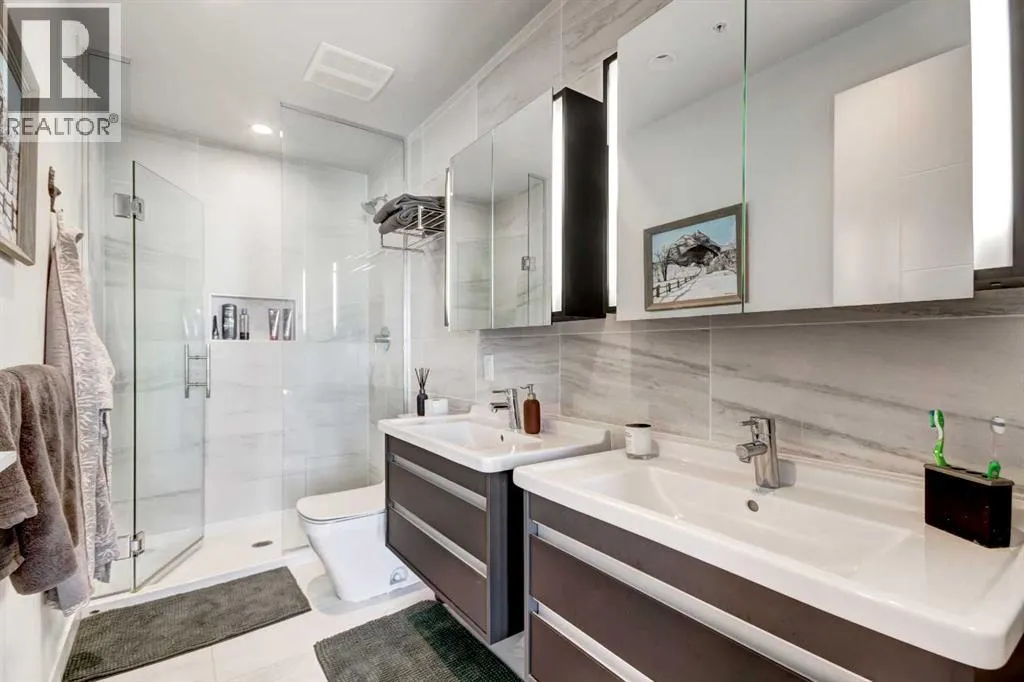 Welcome to unit 703 in The Royal! A lovely 2 bedroom 2 bathroom double balcony corner unit with stunning downtown views. The floor to ceiling windows flood the main living space with natural light and the north and east vistas are stunning. The bright kitchen is fully equipped with a large quartz island, high end appliances, plenty of cabinet and counter space with custom built in - all overlooking the main living and dining areas, perfect for entertaining. Large primary bedroom, with direct access to the second balcony, features a walk-in closet, an ensuite with a large glass door shower, double vanity and heated floors. The second bedroom is located on the opposite side of the unit, perfect for guests or home office. Other features include air conditioning, a gas line on the balcony for bbq, in-suite full size stacked laundry and additional 4 piece bathroom with soaker tub. Residents can enjoy the many amenities including a fitness center, steam room, sauna, squash court, 24-hour concierge/security, outdoor courtyard, and private dining area for larger get togethers. Located just off 17th avenue you will have quick access to great shopping, restaurants, groceries, coffee shops and pubs. Building is very pet friendly, with approval, and there are many parks and green spaces near by. This unit is complete with a secure heated underground parking space and a separate storage locker. An excellent well cared for urban home. (id:27476)