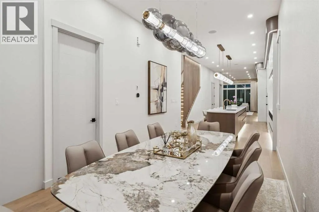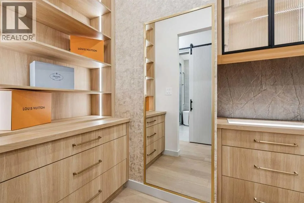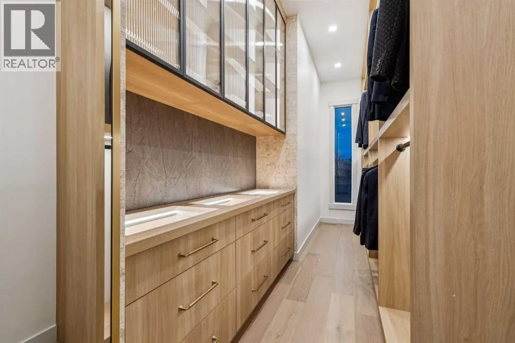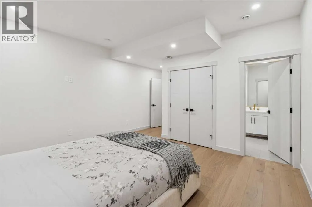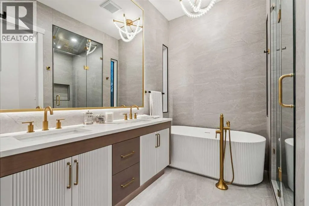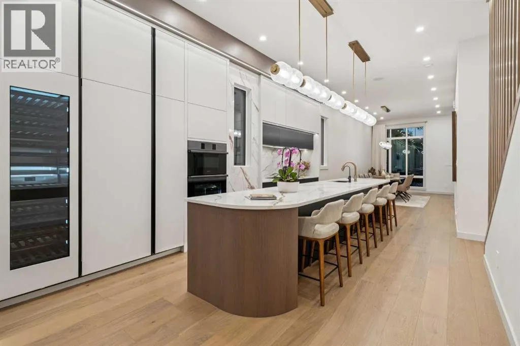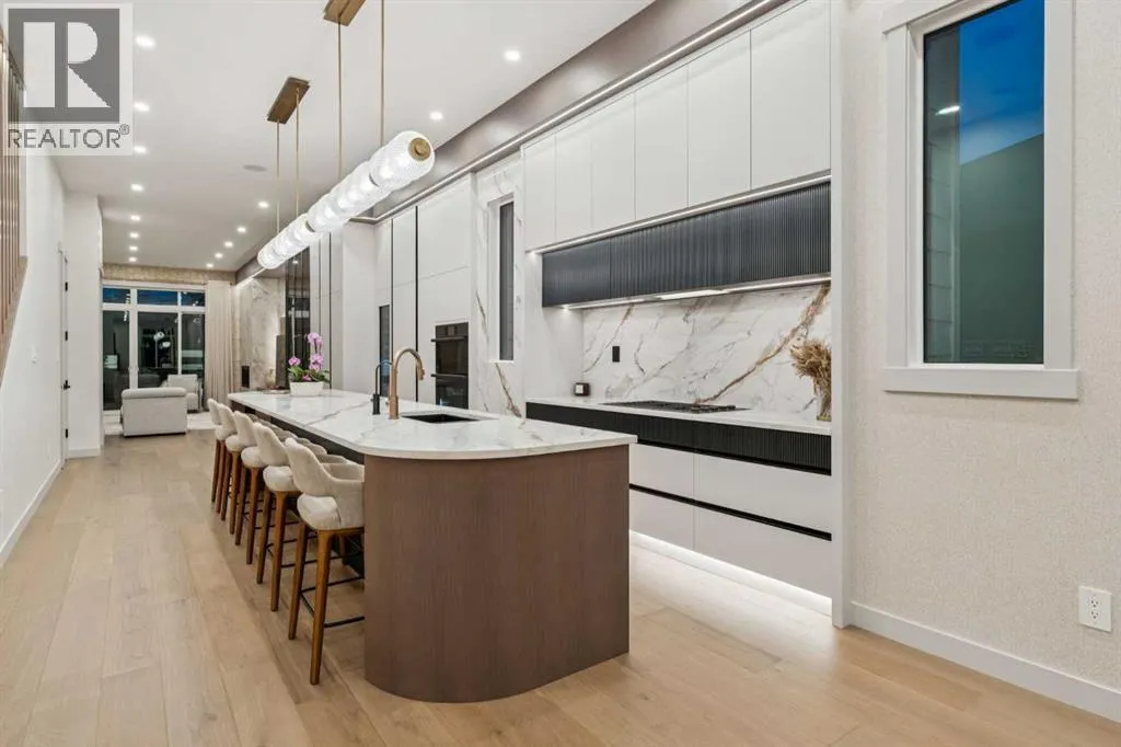 Modern Luxury Meets Urban Living in InglewoodWelcome to this stunning brand-new detached home in one of Calgaryâs most sought-after inner-city communities â Inglewood. Thoughtfully designed and originally built by the owner for his own family, this residence showcases an extraordinary level of craftsmanship and detail rarely found in new construction.Step inside to a bright, open-concept main floor featuring 11-foot ceilings, large-plank white oak engineered hardwood, and floor-to-ceiling custom storage. The inviting front patio sets the tone for urban living, perfect for morning coffee or evening conversation. The chef-inspired kitchen is an entertainerâs dream, complete with an oversized island, Fisher & Paykel built-in refrigerator, Cove/Sub-Zero dishwasher, 6-foot wine fridge, and elegant glass-enclosed lighted shelving. A cozy gas fireplace, natural stone powder room with smart bidet toilet, and functional side entrance mudroom with built-in seating complete the main floor.Upstairs, natural light floods the space through expansive windows. A flex/bonus area offers versatility for an office or reading nook. The primary retreat is a true sanctuary featuring a freestanding soaker tub, dual vanities, glass-enclosed steam shower with heated floors, and a custom walk-in closet with floor-to-ceiling built-ins, lighted glass drawers, and cupboards. Enjoy breathtaking views of the Bow River and nearby park â a rare find in urban living. Two additional bedrooms, each with their own 3-piece ensuite and custom walk-in closets, provide exceptional comfort and privacy. The laundry room with extra storage and sink adds convenience to the upper level.The fully developed basement offers incredible flexibility with two bedrooms (one with a private ensuite), an additional 3-piece bath, full kitchen with Samsung stainless steel appliances, separate laundry, and roughed-in in-floor heating. While currently set up as an illegal suite, it includes a dedicated side entrance and al l the essentials should a future owner wish to pursue legal secondary suite status.Outside, the backyard oasis features a large vinyl deck, low-maintenance landscaping with exposed concrete, and a detached double garage equipped with a dedicated electrical panel and dual overhead doors â ideal for entertaining or practical use.Additional features include a high-end New York lighting package, $9,000 water softener and filtration system, and separate Nu-Air HRV systems for both upper and lower levels.Ideally located in vibrant Inglewood, youâll enjoy easy access to parks, pathways, shops, restaurants, and downtown Calgary â all while embracing the best of inner-city living. (id:27476)