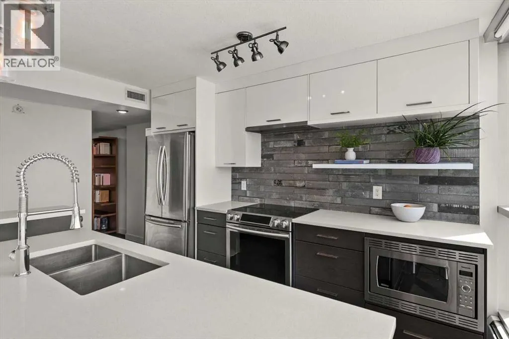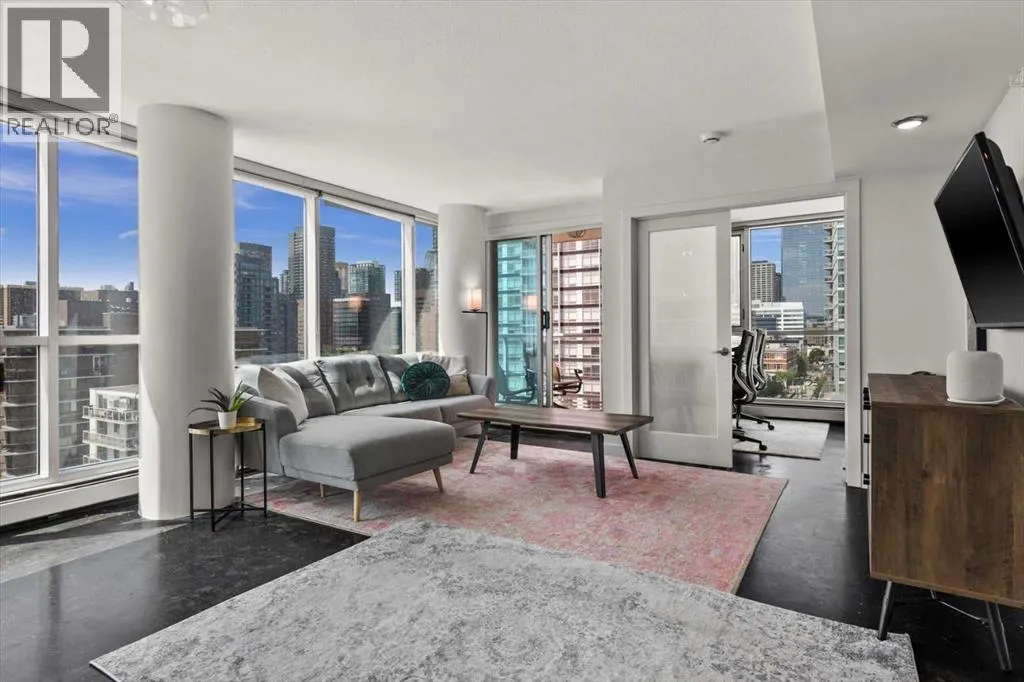 *CHECK OUT 360 VIRTUAL TOUR* West-Facing, Corner Unit with Modern Upgrades & Central A/C! Soak in the incredibledowntown views from this sleek 2 bedroom condo, where floor-to-ceiling windows bring the city skyline right into your living room. Located in TheChocolate building in the heart of The Beltline, enjoy the ultimate urban lifestyle just off 1st Street and 17th Ave, offering incredible restaurants,cocktail bars, and coffee shops, all while just a short distance from the Calgary Saddledome and Stampede Park. Designed for both comfort and style,the open-concept layout features polished concrete floors and a fully upgraded kitchen complete with quartz countertops, sleek stainless steelappliances, bright cabinetry, and a large island offering plenty of space to host and entertain. The main living area is the perfect spot to relax andenjoy the city views with floor-to-ceiling windows throughout. Wake up each morning to breathtaking views of the iconic Calgary Tower, perfectlyframed from your NW facing patio, the ideal spot to enjoy your morning coffee, or enjoy evening BBQs. The second bedroom offers versatile space,perfect for a comfortable home office or guest room. The updated 4-piece bathroom features a sleek modern vanity and ample storage. Additionalfeatures include in-suite laundry, a titled underground parking stall, complimentary bike storage, and a common courtyard patio for you to enjoyduring the summer months. Whether you're a first-time buyer, urban professional, or investor, this condo delivers exceptional value and anunbeatable location! (id:27476)