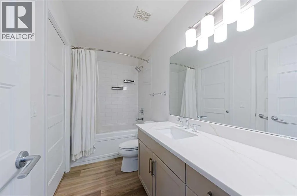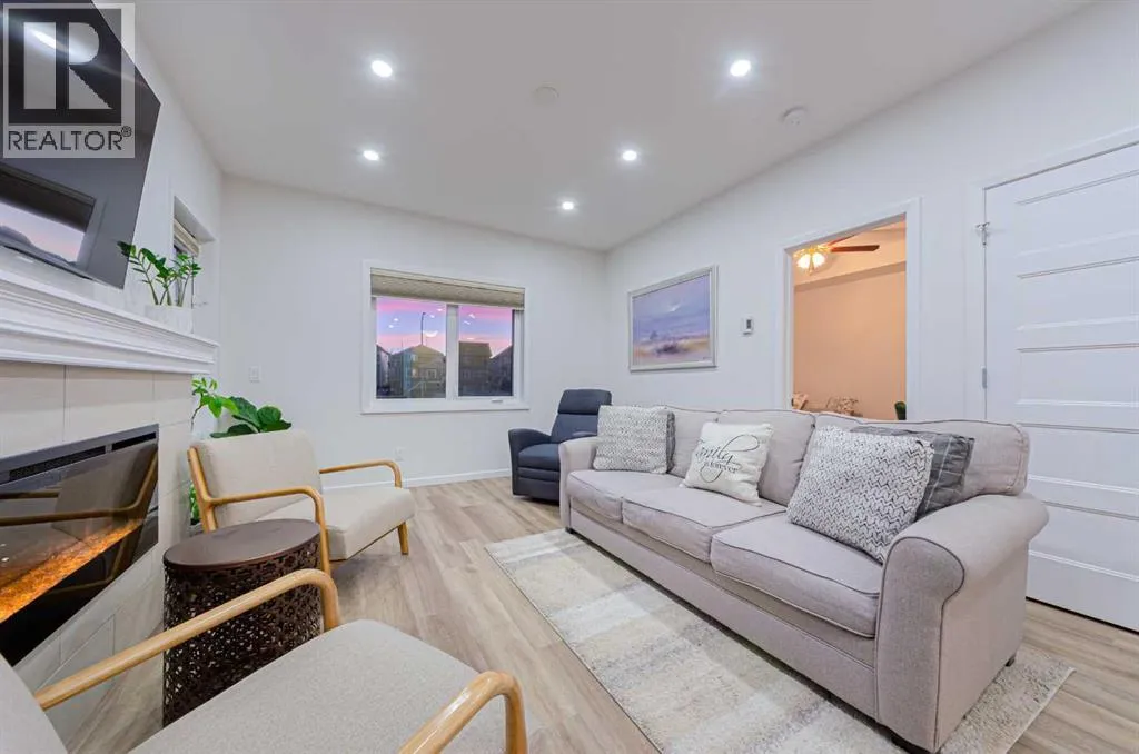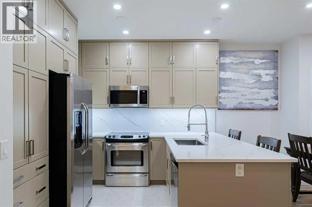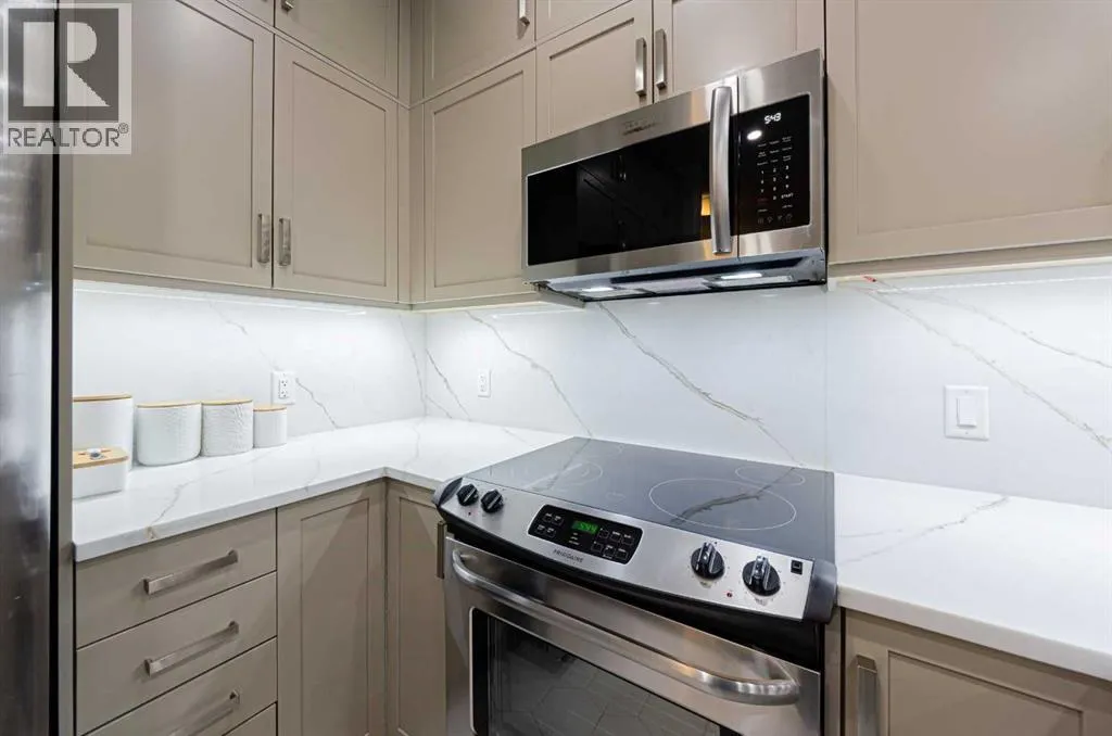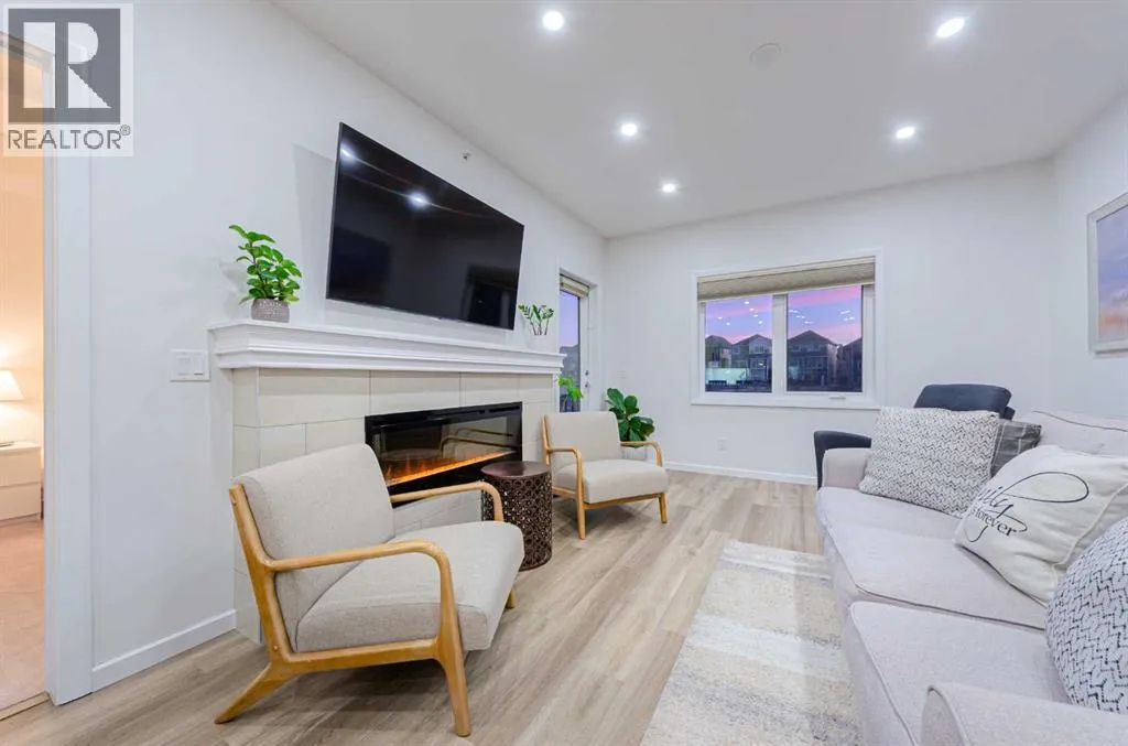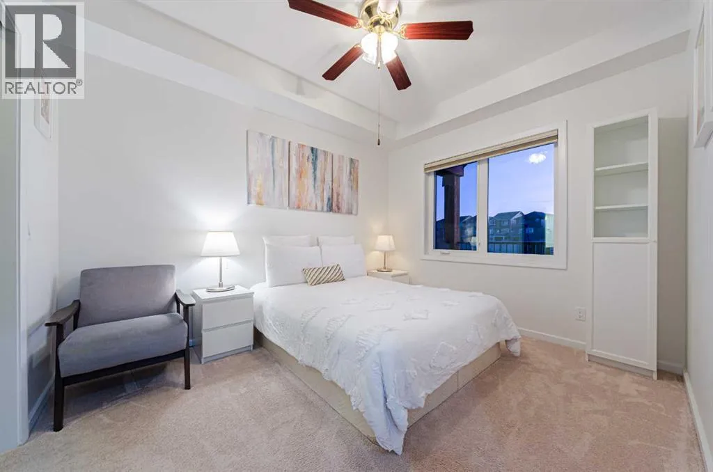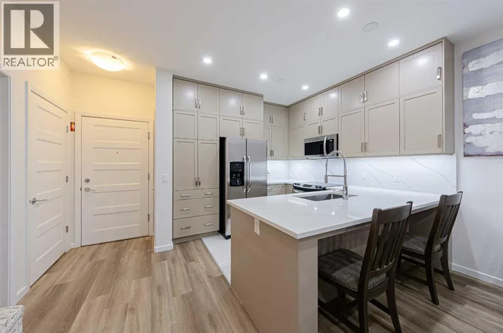 Welcome to The Pinnacle at Kincora, a boutique, meticulously crafted condominium by Cove Propertiesâone of Calgaryâs most trusted and award-winning multifamily developers, renowned for quality construction and thoughtful design.Nestled in one of Kincoraâs most peaceful enclaves, this elegant 2-bedroom plus den (or home office), 2-bath residence offers an exceptional blend of comfort, style, and functionality, all within walking distance to scenic parks, pathways, and everyday shopping conveniences.Offering 1,000 sq. ft. of spacious single-level living, this beautifully upgraded home showcases quartz countertops throughout, designer tile, luxury vinyl plank flooring, and refined fixtures and finishes. The kitchen is equipped with high-end Frigidaire stainless-steel appliances, a one-year-old microwave, and cabinetry enhanced with LED lighting, creating both style and practicality.Enjoy year-round comfort with a portable A/C unit, and appreciate thoughtful upgrades including 16 pot lights that add warmth and brightness throughout the home.A rare find in condo living, this unit includes two titled parking stallsâone heated underground and one convenient outdoor stall directly in front of the buildingâplus bike storage, offering outstanding flexibility and convenience.Step outside to your private, comfortable balcony, complete with wood-style flooring, a gas line, and a one-year-old, barely used Weber BBQâperfect for relaxing or entertaining.Situated in a secure, maintenance-free, 18+ building, The Pinnacle at Kincora offers a unique combination of luxury, tranquility, and effortless living. Pets are permitted with board approval.This is a rare opportunity to own a beautifully upgraded home in an exceptional communityâdonât miss your chance to make it yours. (id:27476)
