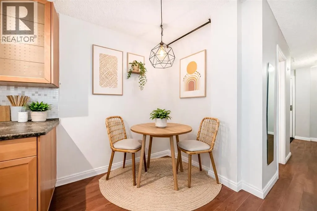 Welcome to Rio Milan â ideally located just steps from the vibrant energy of 17th Avenue, yet quietly set back from the bustle. Thanks to the concrete build, the home offers exceptional soundproofing â a rare urban luxury that lets you enjoy city life without the noise. This is downtown living with breathing room.Inside, a loft-style sliding door and faux brick feature wall adds character and warmth , creating a cozy, yet modern, aesthetic. The newer maple kitchen with smart storage and upgraded SS appliances anchor the space, while the open-concept layout invites personality: bold art, eclectic furniture, and lush plants or a minimalist appealâ make it your own.The thoughtfully designed one-bedroom layout with spacious closets, plenty of open shelving, and a cute laundry nook provides make it comfortable and easy to live in. Step out onto the charming balcony, perfectly styled as a private urban oasis â ideal for morning coffee, tending to plant babies or bird feeders, and unwinding with a glass of wine at the end of the day.Pet lovers will appreciate the very open pet policy, with a fully fenced off-leash dog park just a short walk away. The neighbourhood park is only a few blocks from your door and offers a lighted outdoor skating rink in the winter and shady picnic spots in the summer, adding year-round lifestyle appeal. Weekend routines are effortless with some of the cityâs best brunch spots (Galaxy Diner and Monki Bistro), cafés (Good Earth), local pubs (Pig and Duke, Jamisonâs), trendy restaurants (Ryoku Japanese Kitchen and Bar, Olea Restaurant, Gaga Pizza, bul Dining Room), and grocery (Co-op, Community Natural Foods, and Kalamata Grocery) all just a stoneâs throw away! Practicality meets peace of mind with reasonable condo fees that include heat, water, and sewer, along with secure keyless entry and plug-in parking. Looking ahead, the condo board has planned updates including fresh paint and exterior improvements, as well as the addition of a dedicate d garbage shed at the rear of the building â enhancing both curb appeal and day-to-day convenience.A calm, convenient, and character-filled retreat in the heart of the city â Rio Milan offers the best of reliable urban living without compromise. (id:27476)