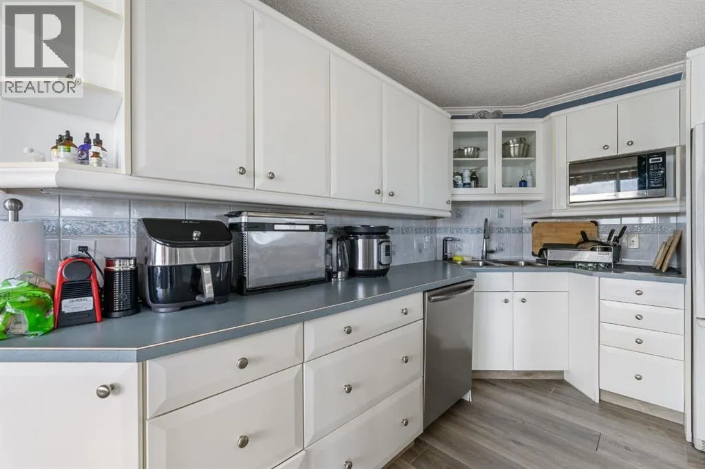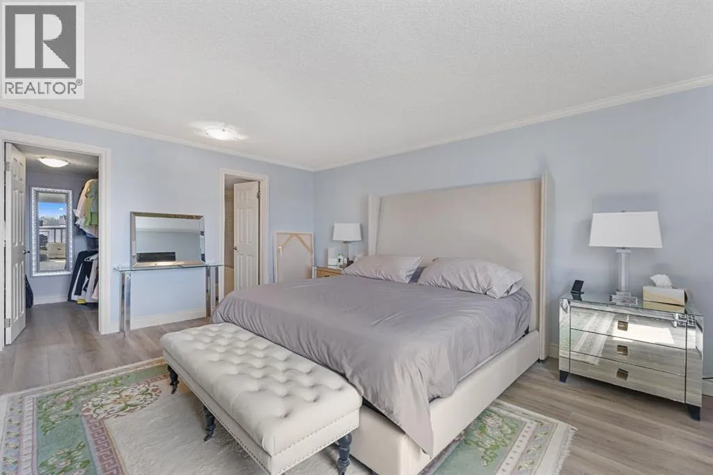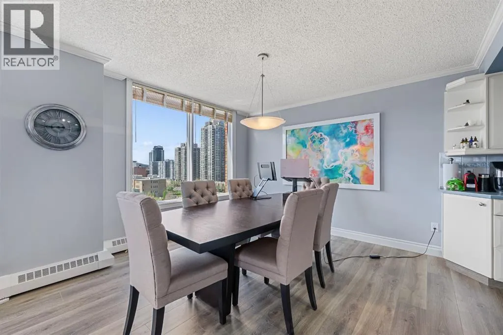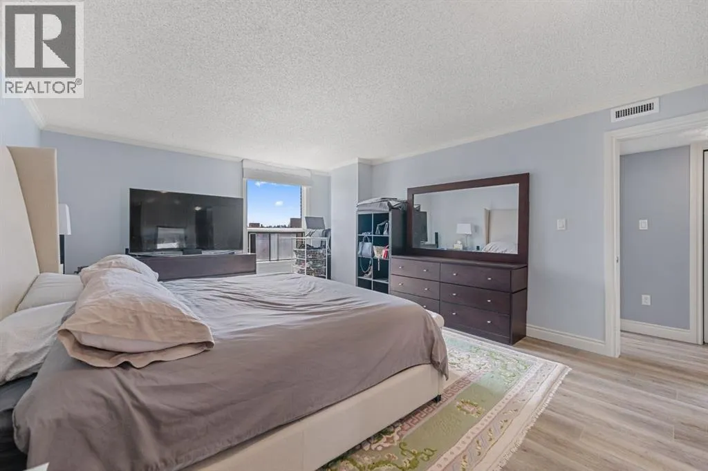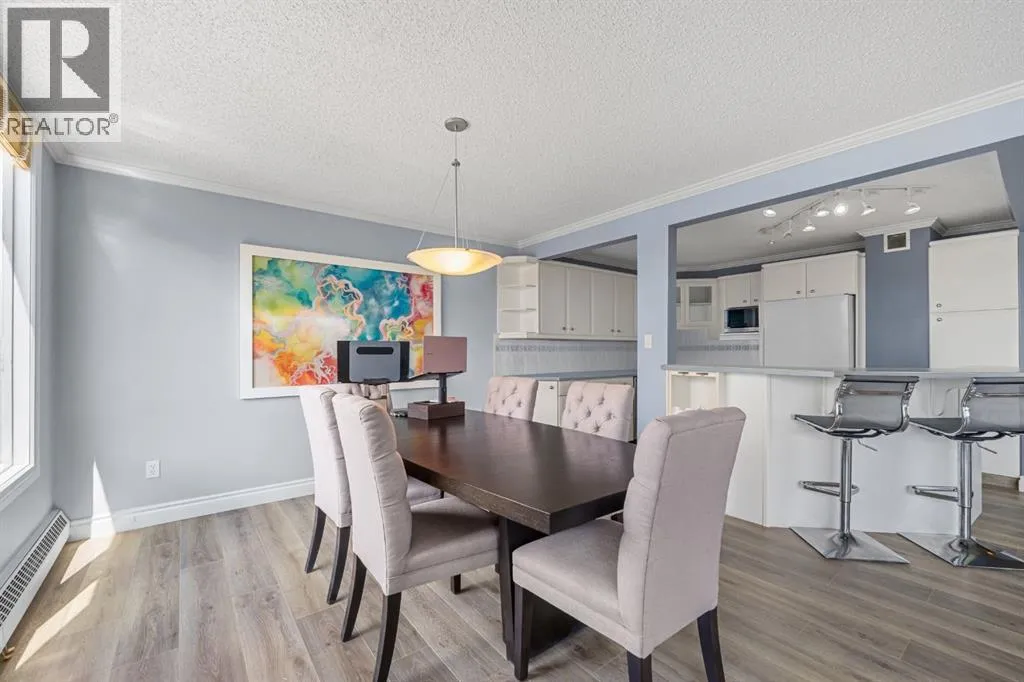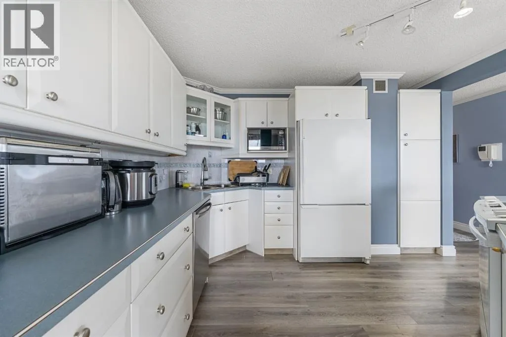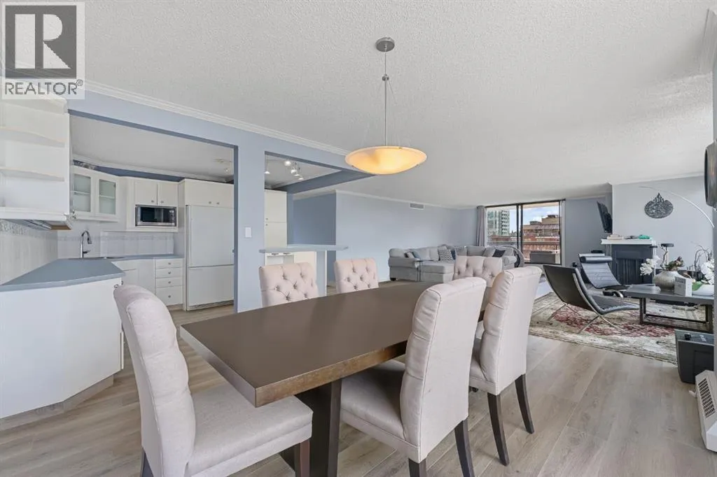 Exceptional southwest corner residence in the sought-after Royal Oak, offering 1,587 sq. ft. of refined, natural light filled, open-concept living. This well-designed home features two spacious bedrooms, two bathrooms, and two titled parking stalls with storage. Enjoy a huge wraparound balcony, central air conditioning, in suite laundry, an additional storage room, and a cozy indoor wood-burning fireplace. The kitchen is equipped with Kitchen Craft cabinetry, ample counter space, and a raised eating bar. Updated Luxury vinyl plank flooring runs throughout. The large primary bedroom includes a walk-in closet and a full ensuite bathroom. Building amenities include a fitness centre, social room, guest suite, bike room, and car wash. Ideally located within walking distance to grocery stores, restaurants, cafes, and the vibrant 17 Ave SW. (id:27476)