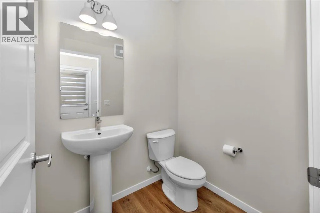 A beautifully maintained 2024-built detached home offering 3 bedrooms, 2.5 bathrooms, and a smart layout designed for modern living. The bright main floor features a versatile flex room, ideal for a home office, playroom, or sitting area, along with a convenient utility sink that adds everyday practicality and can easily be converted into a dog wash. The kitchen is both functional and flexible, featuring a gas stove with the option to convert to electric, while central air conditioning ensures year-round comfort. Upstairs, you will find 3 well-sized bedrooms, including a comfortable primary retreat. The basement is ready for future development, with rough-ins already in place, offering excellent long-term potential.Step outside to a low-maintenance backyard designed for easy living, complete with a gas BBQ hookup and a firepit area perfect for entertaining. The rear parking pad includes an upgraded electrical outlet, ready for future garage development or vehicle plug-in. An added awning over the front entrance enhances curb appeal and functionality. Located in the growing community of Hotchkiss, this move-in-ready home blends the benefits of newer construction with thoughtful upgrades already completed. Simply move in and enjoy. (id:27476)