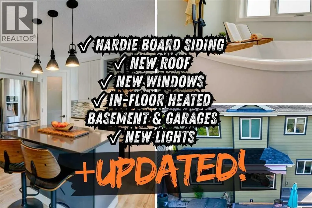 Discover the ultimate setup for hobbyists, mechanics, and car enthusiasts in this beautifully updated Lake Chaparral home. Offering 1,760 sq. ft. of above-grade living space plus a fully developed basement, this property is defined by its rare dual-garage configuration: a front-drive double garage plus an oversized, detached rear garage. Both are equipped with in-floor heating, and the detached shop boasts a 60-amp subpanel and 220V outletâperfect for when you need it! Major big ticket upgrades also include Hardie board siding, new windows and doors, and a new roof. Stepping inside, you are welcomed by an open-concept main floor featuring fresh paint, updated flooring, and modern lighting. The kitchen features under cabinet and in cabinet lighting, stainless steel appliances including a built-in microwave, flowing seamlessly into a living room anchored by a cozy corner gas fireplace. Upstairs, youâll find a spacious bonus room and a convenient laundry room. The primary retreat offers an updated ensuite with a freestanding soaker tub and walk-in tiled shower. Downstairs, the basement is warm and inviting thanks to in-floor heating and includes space for recreation, an extra bedroom, and a half bath. The home also offers the convenience of air conditioning for added comfort year-round.Enjoy a west-facing, private, compact backyard with plenty of storage space. Located just one block from the lake entrance, you'll enjoy exclusive access to Lake Chaparralâs year-round amenities: swimming, fishing, tennis, pickleball, parks, and pathways. Two elementary schools are within walking distance, and shops are close by.This home offers a unique lifestyle package and is ideal for buyers who prioritize garage space, easy-to-care-for outdoor areas, and excellent community amenities. Schedule your showing and see the advantages for yourself. (id:27476)