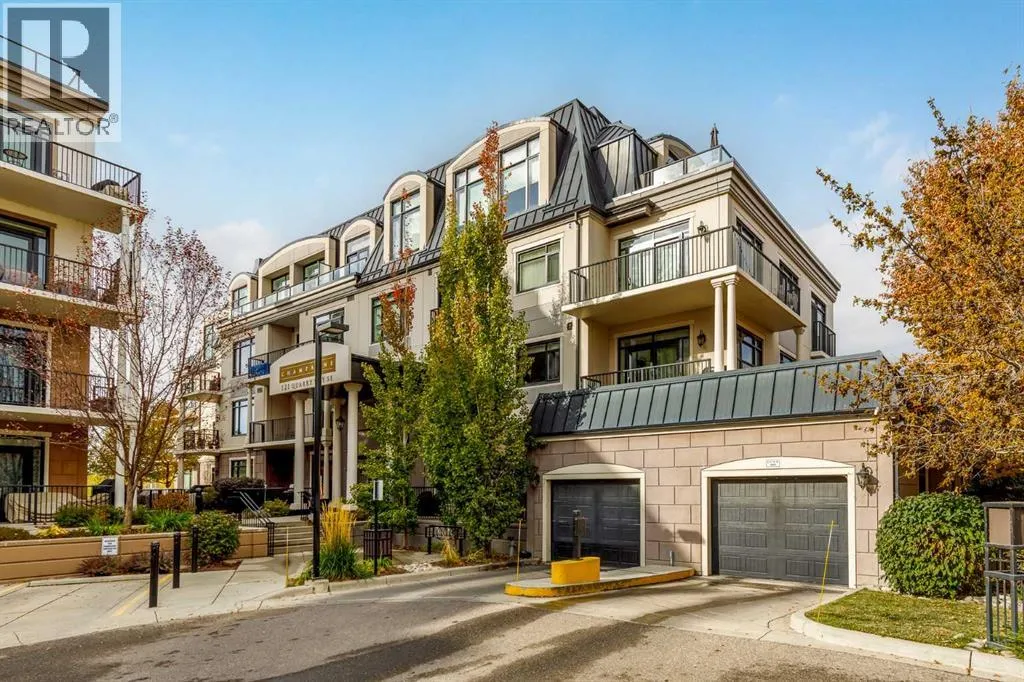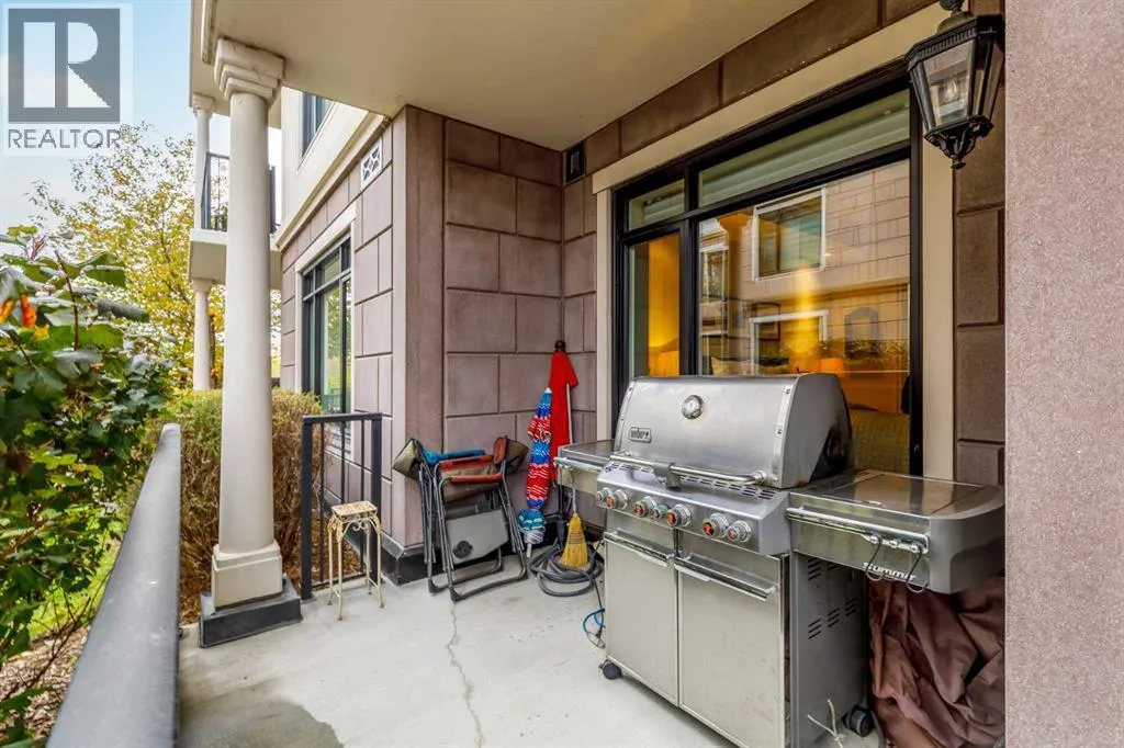 For the busy professional or the retired individual desiring the lock and go lifestyle, here is your solution. A ground floor, one bedroom, one bath, well-constructed 837 sq. ft. apartment in the notable and unique Quarry Park area. The private entry conveys you into the foyer where you will immediately note the efficient planning throughout. To the right is the in-suite laundry room along with ample closet space. The flooring is wide-plank warm hardwood and colors are neutral contributing to a feeling of space and calm. The kitchen features tasteful and plentiful white cabinetry, gleaming quartz countertops, tiled backsplash, a gas range with five-burner cooktop, stainless appliances, an island/breakfast bar with built-in microwave and deep double under counter mounted sink. Adjacent to the island is an ideal set up for your computer/office space. Moving into the open area dining room/living room notice the high tray ceilings and the amount of natural light flowing in from the south-facing patio doors. The bedroom is carpeted, has a substantial walk-in closet and a walk-through four-piece tiled bath. The substantial patio is your extra room to enjoy summer entertaining with a convenient gas hookup for BBQ. Additional conveniences include central air, a titled underground heated parking stall, a titled storage locker, car wash, bike room and visitor parking plus common area maintenance. Location is key being close to Deerfoot, Glenmore and Stoney Trails, Sue Higgins Park, the Bow River, Willow Park Golf & Country Club, shopping at nearby South Centre Mall, Calgary Farmersâ Market South, Ikea and Walmart Supercentre. (id:27476)
