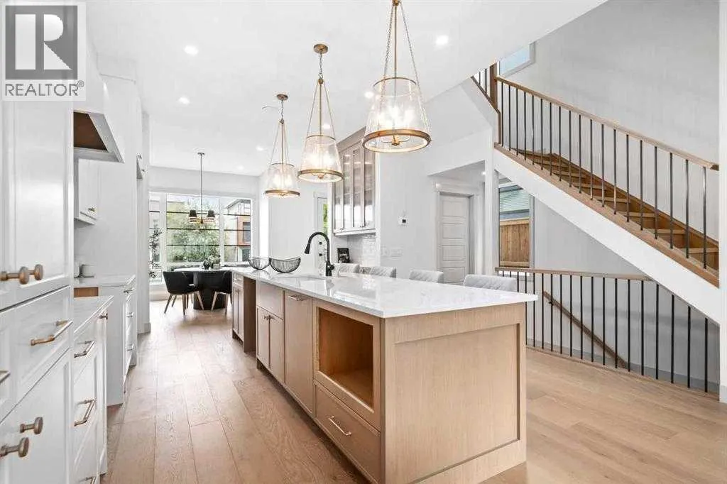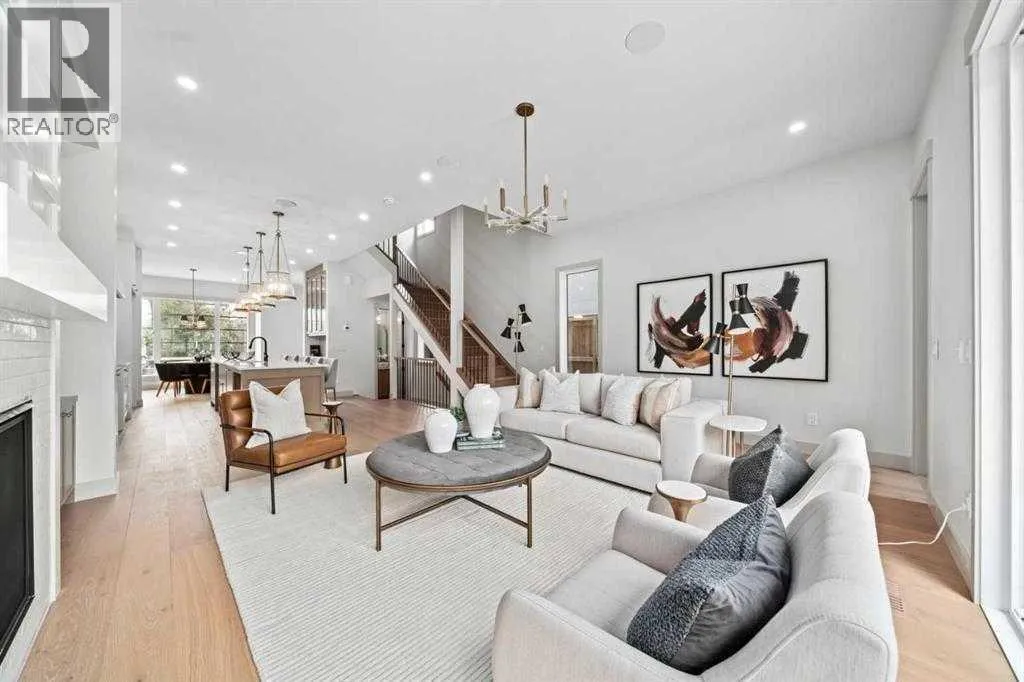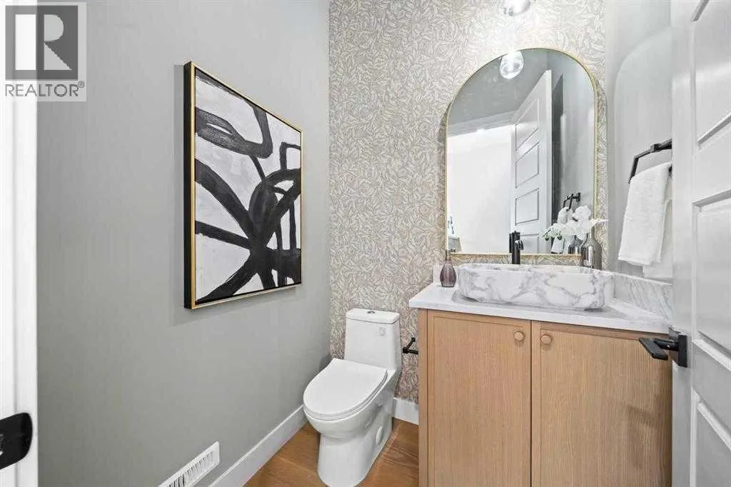 Set on a quiet cul-de-sac in WEST HILLHURST, this GORGEOUS NEW BUILD 3 STOREY DUPLEX delivers modern design, functional living and thoughtful detail in one of Calgaryâs most established inner-city communities. A SOUTH BACKYARD enhances natural light and outdoor enjoyment. The main floor is designed for everyday ease and entertaining, with an open layout that flows naturally between the living room, dining area and kitchen. A FIREPLACE anchors the living space, creating warmth and visual interest, while HARDWOOD FLOORING provides durability and timeless appeal. The kitchen is thoughtfully planned with generous prep space, modern cabinetry and a layout that supports both daily routines and hosting. On the second level, well-proportioned bedrooms are complemented by a primary bedroom featuring a PRIVATE ENSUITE with a DOUBLE VANITY, offering comfort, functionality and a sense of retreat. The THIRD STOREY is a standout feature, offering a flexible retreat ideal for entertaining, working or hosting guests. This level includes a PRIVATE BEDROOM well suited for overnight visitors or a quiet HOME OFFICE, enhanced by separation from the main sleeping areas below. A WET BAR supports relaxed evenings and casual gatherings, while access to TWO DECKS with both NORTH AND SOUTH EXPOSURE allows for sunlight throughout the day, outdoor breaks between meetings or private lounging above the surrounding streetscape. The basement is developed to extend living space, offering flexibility for a media room, home gym or guest area, with finishes consistent with the quality found throughout the home. The EXTERIOR showcases a striking combination of BRICK and COMPOSIT ELEMENTS, delivering a modern aesthetic with lasting durability. LANDSCAPING is planned per the approved site design, with concrete walkways and defined outdoor spaces in place. Parking is accommodated by a DOUBLE DETACHED GARAGE accessed from the rear lane, providing secure, weather-protected parking and additional storage. WES T HILLHURST is prized for its walkability, mature tree-lined streets and strong community feel, with easy access to river pathways, parks, local shops and everyday amenities. Proximity to downtown, major routes and nearby neighbourhood favourites makes this location especially appealing for those seeking inner-city living without sacrificing comfort, privacy or connection to green space. (id:27476)