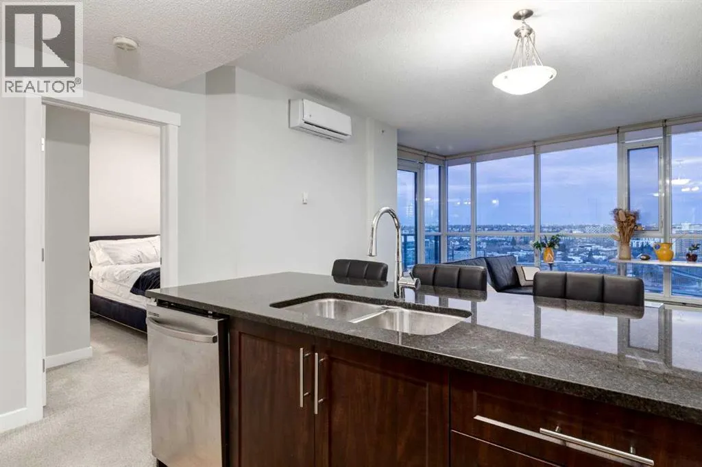 WELCOME to this AIR-CONDITIONED and FULLY FURNISHED 666.20 Sq Ft APARTMENT in the RIVERFRONT POINTE building with 2 Bedrooms, 1 Full Bathroom, 2 TITLED UNDERGROUND PARKING spots, including LOW Condo Fees, and an EAST-Facing Balcony overlooking the BOW RIVER in EAST VILLAGE!!! Entering this IMMACULATE unit with the OPEN-CONCEPT Floor plan, including 9' Ceilings, NEUTRAL colours, and MASSIVE windows allowing NATURAL Light throughout, shows off the CHARM you can call your own!! The Closet and Stacking Laundry are CONVENIENT for ACCESS and STORAGE by the front door. The GOOD-SIZED 2nd Bedroom will also convert to a DEN, a MUSIC room, or a PRIVATE Yoga room. RELAX in the Tiled 4 pc Bathroom while SOAKING in the tub after a long day to REJUVENATE yourself. The Primary Bedroom is a RESTFUL area to sleep, and also includes looking out the window at the CITY SKYLINE. This SLEEK Kitchen is the 'HEART of the HOME' and offers Wood Cabinetry, SS Appliances, GRANITE countertops, including the Breakfast Bar, and a COZY area for Dining. The Living room is GREAT for ENTERTAINING when FAMILY or FRIENDS come over, or having a QUIET time reading a book on the couch. There is a door to the Balcony that has PICTURESQUE VIEWS of the City including ST. PATRICK'S ISLAND, CENTRE STREET BRIDGE, SIEN LOK PARK, and RECONCILIATION BRIDGE!! Imagine sitting out on the balcony ENJOYING your morning coffee, using the BBQ when GUESTS come over to share a meal, or PEACEFUL star-gazing at night. The unit can be purchased FULLY FURNISHED at no extra cost -ideal for TURNKEY living or LONGTERM RENTALS. There are 2 TITLED Parking Stalls in the HEATED GARAGE, and the building offers a FITNESS CENTRE in Tower C, BIKE STORAGE, OUTDOOR PATIO, VISITOR PARKING, and a CONCIERGE with 24-hour SECURITY. This PRIME LOCATION is close to a Dog Park, Trendy Restaurants, Boutique Coffee Shops, Craft Breweries, Superstore, Confluence Historic Site & Parkland, Olympic Plaza, the Central Library, the University of Calgary Satellite Campus, the Saddledome, and the NEW arena. Whether you take in the NIGHT LIFE in the NEW Entertainment District, Stampede, or go to the YMCA, Fort Calgary, Chinatown, Eau Claire Market, Art Commons, CORE Shopping Centre, +15 Bridge access, Olympic Plaza, or the Studio Bell, you will EXPERIENCE the BEST that Calgary has to offer. It is EASY to get around with the City Transit, C-Train, or get your EXERCISE by WALKING/RUNNING/BIKE RIDING the Bow River Pathways. There are many Green spaces to DISCOVER INNER CITY BEAUTY, including the BIRDS and AQUATIC wildlife near the water. Communities around are Bridgeland and Crescent Heights with AMENITIES that have QUAINT shops, and more SHOPPING. It's all about LOCATION, and LIFESTYLE - this HOME is DESIRABLE with a QUICK COMMUTE to downtown. Book your showing TODAY!!! (id:27476)