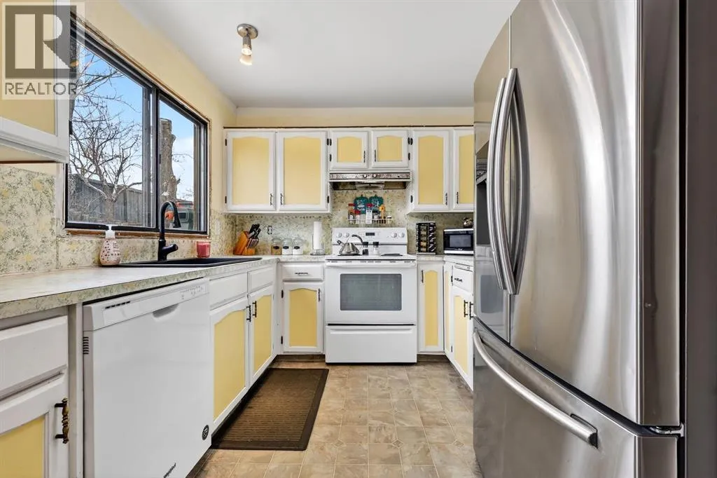 Welcome to this ideal family home located in the well-established and welcoming community of Ranchlands. Thoughtfully laid out for everyday living and entertaining, the sizeable main floor offers a well-appointed kitchen, a dedicated dining room, and a cozy living room centered around a charming wood-burning fireplace. A main floor bedroom provides the perfect space for guests, a home office, or flexible family needs. Upstairs, three comfortable bedrooms and two renovated bathrooms, create a functional and private space for family living. The lower level features an open floor plan, making it an excellent option for a media room, play area, or recreation space tailored to your lifestyle. Step outside to a large wraparound backyard designed for year-round enjoyment, complete with a deck, pergola, and hot tub, perfect for relaxing during Calgaryâs colder winter days. A single detached garage and driveway provide convenient parking and additional storage. Located close to parks, schools, shopping, and transit, this Ranchlands home offers space, warmth, and functionality in a mature, family-friendly neighborhood. This home requires a bit of updating, but it provides an excellent opportunity to customize to your own taste. (id:27476)