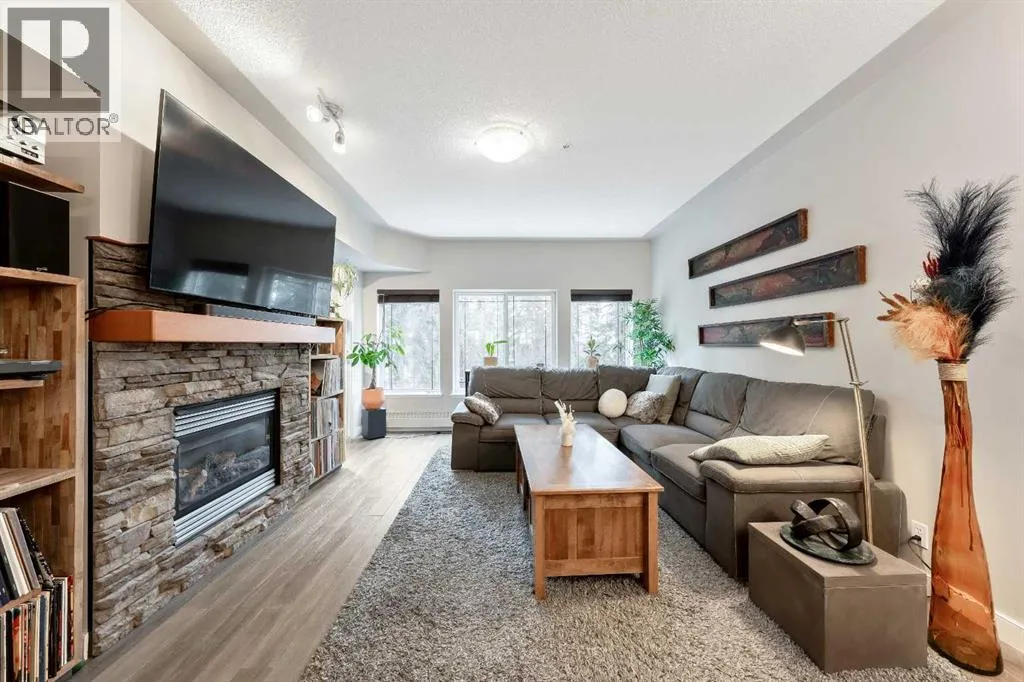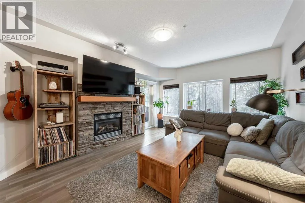 Aaaahhhh⦠Waking up slowly this morning⦠the fresh breeze & unmistakable scent of the forest as a young whitetail strolls by with her fawns⦠sparrows singing in the background⦠camping is bliss⦠Wait a minute⦠you just realized you arenât camping⦠you just woke up in bed at home, the window is open, & this is your new reality ;) **WELCOME HOME!** This Updated & Beautifully maintained unit is all about LOCATION LOCATION LOCATION & WOW... THE VIEW!! Nestled in the PERFECT SPOT backing directly onto GRIFFITH WOODS with Unbelievable FOREST VIEWS, this lovely home boasts nearly 1050ft of Rustic appeal & thoughtfully designed living space, offering a bright, open concept floor plan with 9â ceilings, Large WINDOWS & recently NEW ENGINEERED HARDWOOD Flooring! The stylish & functional layout flows seamlessly from the CHEFâS Kitchen with eat-up breakfast bar, open to the inviting dining area & living room with cozy STONE GAS FIREPLACE feature & a front row seat to the natural scenic surroundings of GRIFFITH WOODS PARK! A Spacious Master Retreat complete with PRIVATE ENSUITE, 2nd Bedroom, additional 2nd Full Bath & In-Suite laundry with built-in STORAGE complete the interior of this TURN-KEY GEM! Step outside onto your private balcony, where the forest is your backdrop & the wildlife are your closest neighbors - an ideal space for BBQs, entertaining friends & family, or simply unwinding & reconnecting with nature! Located in a well-managed, pet-friendly complex (with board approval), enjoy Peaceful Pathways with the River & Ravine directly behind the complex. This unit also includes titled underground heated parking & access to fantastic amenities including a fitness room, social events, & access to the Discovery Ridge Community Association, offering tennis courts, soccer fields, skating rink, & more! Discovery Ridge is loved for its peaceful atmosphere, stunning natural surroundings, & strong sense of communityâperfectly blending nature-focused living & outdoor adventure wit h modern conveniences, all just a short scenic drive to the mountains. Enjoy endless outdoor activities right outside your front door including hiking, biking, birdwatching, or take a leisurely stroll along the Elbow River! Simply move in & enjoy everything that living at The Wedgewoods in Discovery Ridge has to offer! (id:27476)