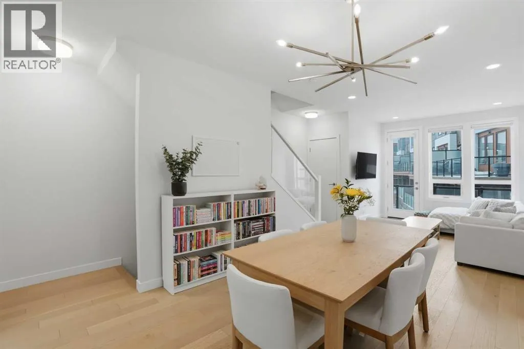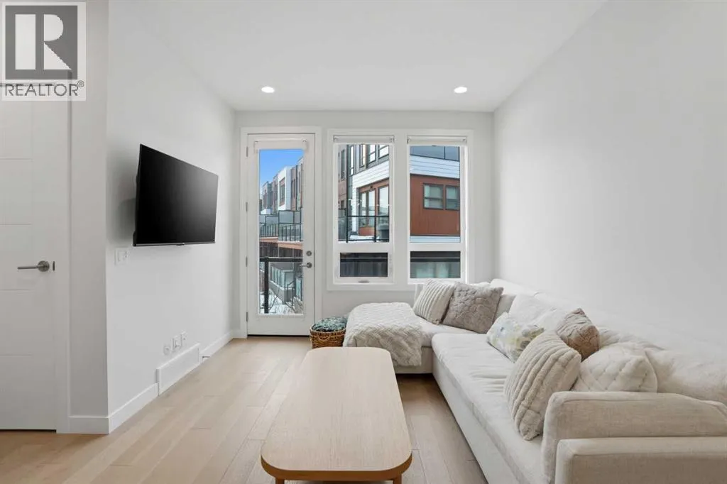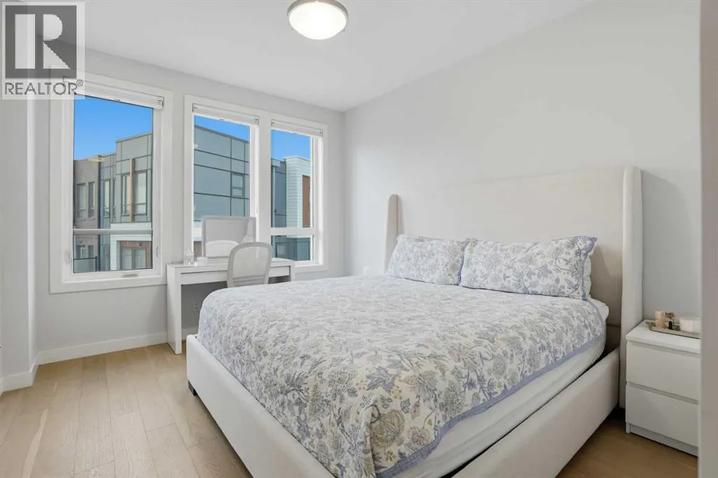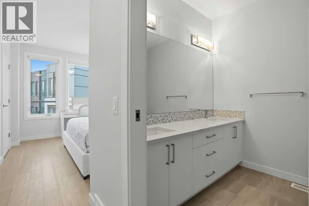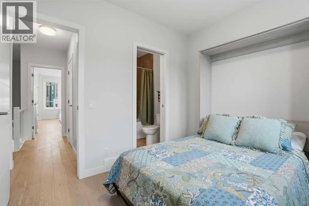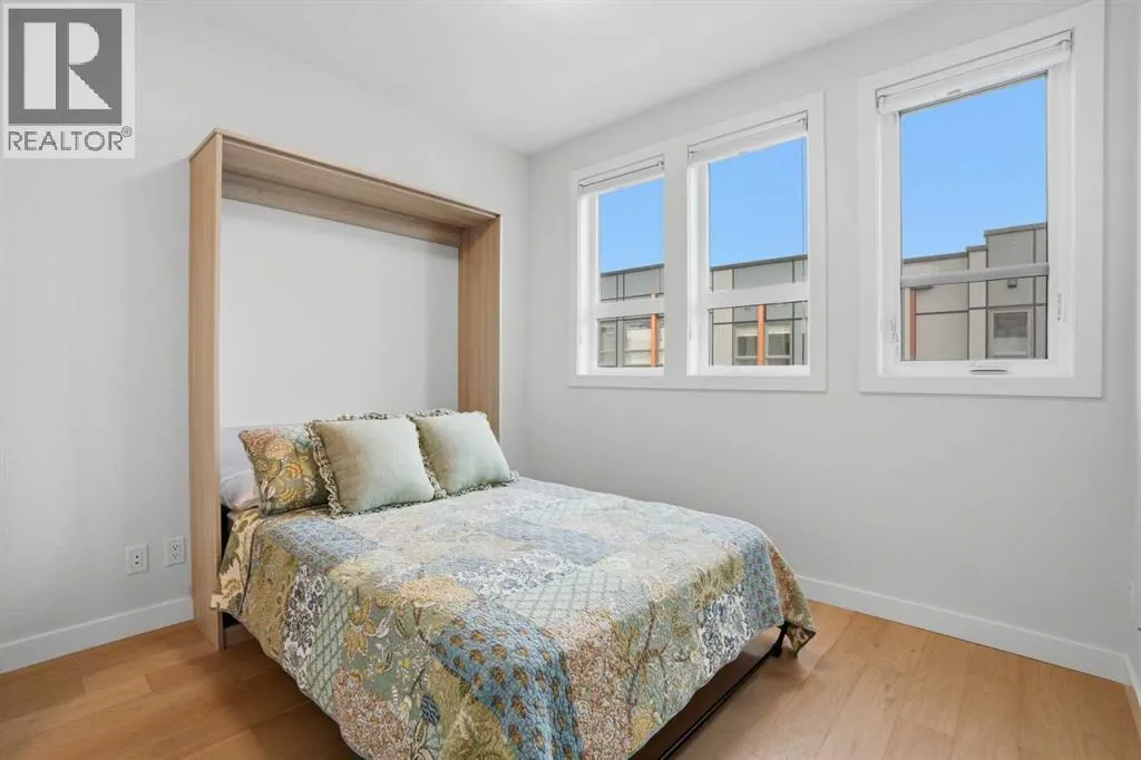 Discover this exceptional south-facing townhouse located in the heart of the University District, in Varsity one of NW Calgary's most desirable communities. Boasting upgraded contemporary finishes and engineered hardwood flooring throughout the main and upper levels. This home offers both style and comfort. Enjoy picturesque views of the expansive courtyard, complete with green space, a community garden, and a playgroundâperfect for relaxation and recreation. The inviting main entry features a sun-drenched south-facing patio, while the open-concept main floor is flooded with natural light from large windows and a private South facing balcony. Custom blinds add a touch of elegance throughout. The sleek, modern kitchen is ideal for entertaining, featuring ample cabinetry, stunning quartz countertops, and upscale stone back splash , stainless-steel appliances (including a gas range), a walk-in , pantry, and a built-in pantry for extra storage. Upstairs, youâll find two spacious bedrooms, each with its own ensuite bathroom. The second bedroom includes a built-in queen Murphy bed, maximizing space and versatility. A separate laundry room completes the upper level. With so many premium upgrades, this home is equipped with air conditioning, Hunter Douglas window coverings, epoxy garage flooring, central vacuum, and enhanced hardwood flooring. The secure, double attached tandem garage offers generous storage, epoxy floors, and a wall of built-in cabinets. Step outside your front door to find the University campus, Foothills and Childrenâs Hospitals, as well as the Market Mall with a vibrant selection of shops, cafes, restaurants, pubs, boutiques, grocery stores, and a movie theatreâall just moments away. This property shows like new and presents a rare opportunity to live in one of Calgaryâs most dynamic and sought-after neighborhoods. Donât miss your chance to call the University District home! (id:27476)