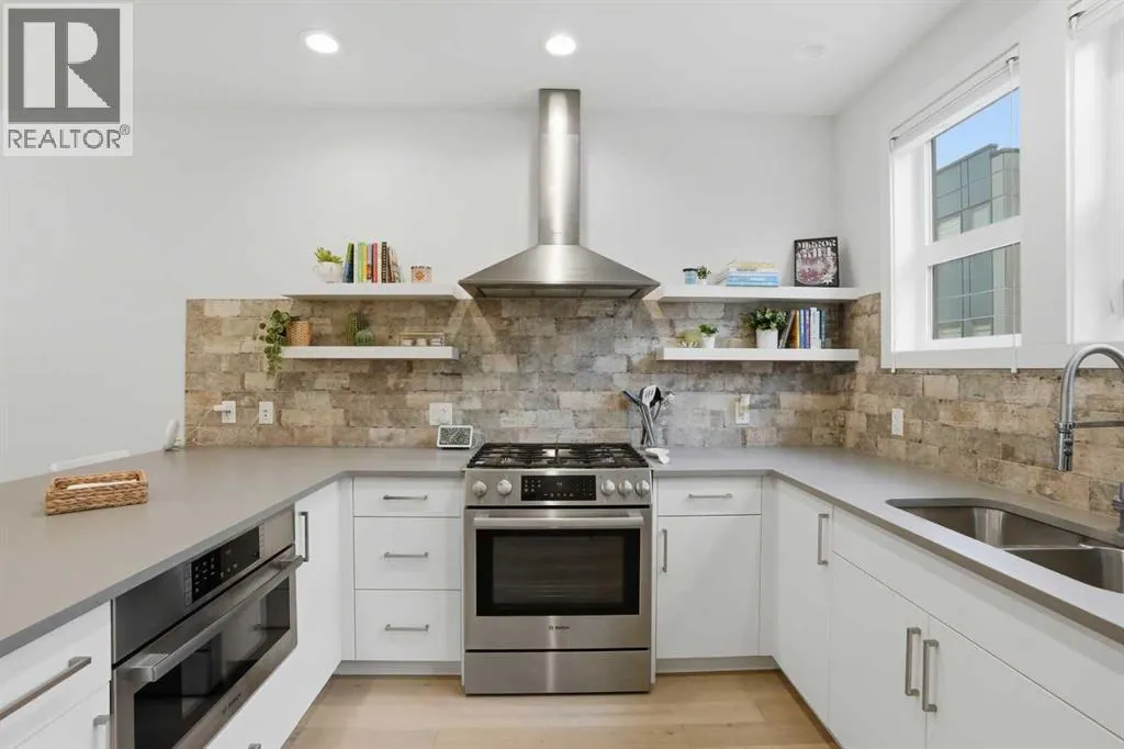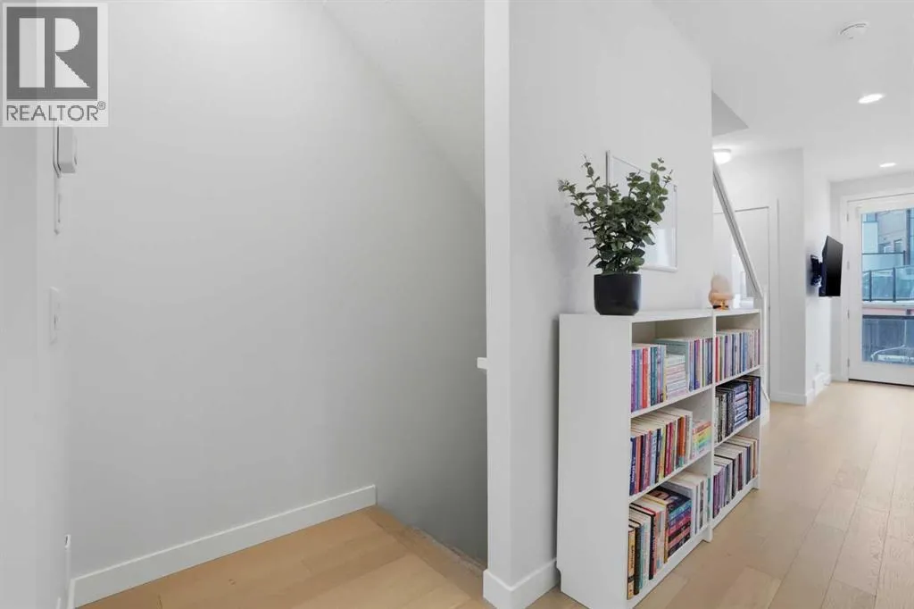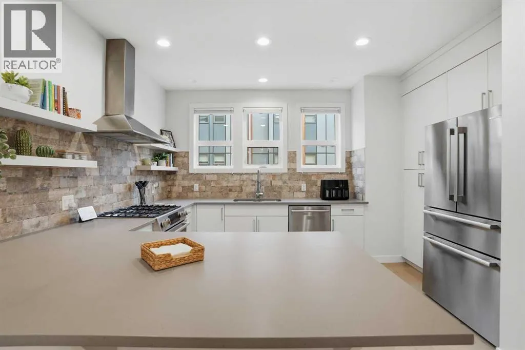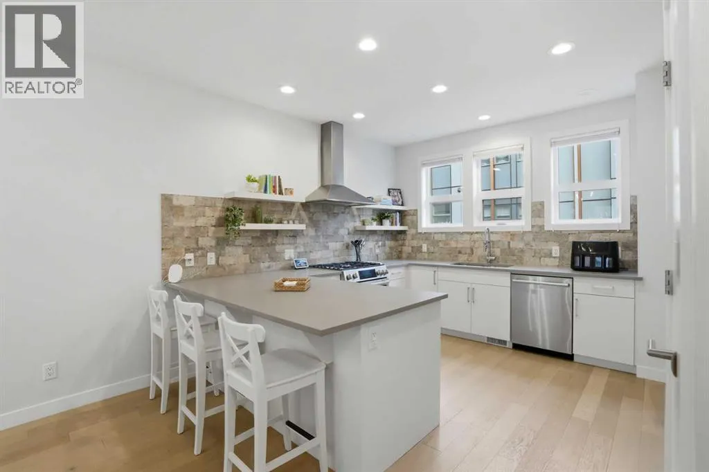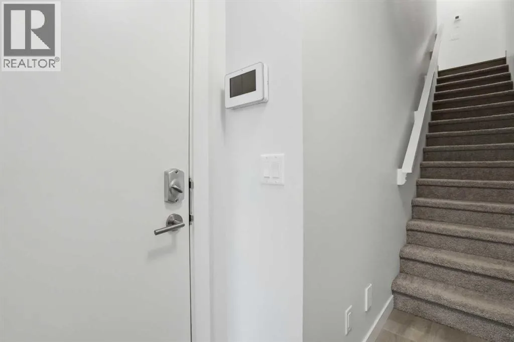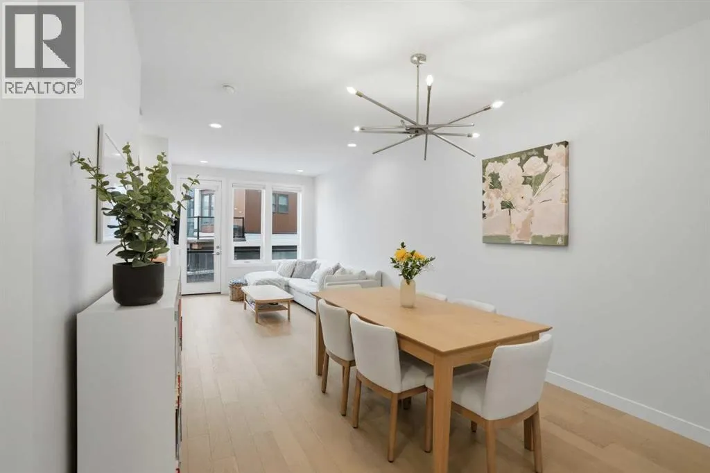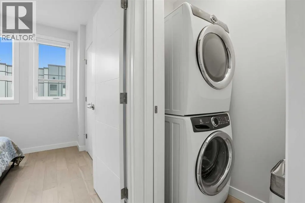 Discover this exceptional south-facing townhouse located in the heart of the University District, in Varsity one of NW Calgary's most desirable communities. Boasting upgraded contemporary finishes and engineered hardwood flooring throughout the main and upper levels. This home offers both style and comfort. Enjoy picturesque views of the expansive courtyard, complete with green space, a community garden, and a playgroundâperfect for relaxation and recreation. The inviting main entry features a sun-drenched south-facing patio, while the open-concept main floor is flooded with natural light from large windows and a private South facing balcony. Custom blinds add a touch of elegance throughout. The sleek, modern kitchen is ideal for entertaining, featuring ample cabinetry, stunning quartz countertops, and upscale stone back splash , stainless-steel appliances (including a gas range), a walk-in , pantry, and a built-in pantry for extra storage. Upstairs, youâll find two spacious bedrooms, each with its own ensuite bathroom. The second bedroom includes a built-in queen Murphy bed, maximizing space and versatility. A separate laundry room completes the upper level. With so many premium upgrades, this home is equipped with air conditioning, Hunter Douglas window coverings, epoxy garage flooring, central vacuum, and enhanced hardwood flooring. The secure, double attached tandem garage offers generous storage, epoxy floors, and a wall of built-in cabinets. Step outside your front door to find the University campus, Foothills and Childrenâs Hospitals, as well as the Market Mall with a vibrant selection of shops, cafes, restaurants, pubs, boutiques, grocery stores, and a movie theatreâall just moments away. This property shows like new and presents a rare opportunity to live in one of Calgaryâs most dynamic and sought-after neighborhoods. Donât miss your chance to call the University District home! (id:27476)