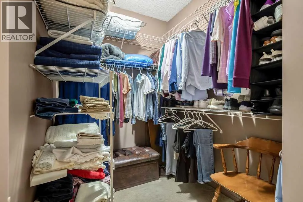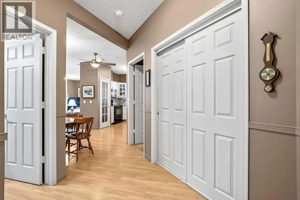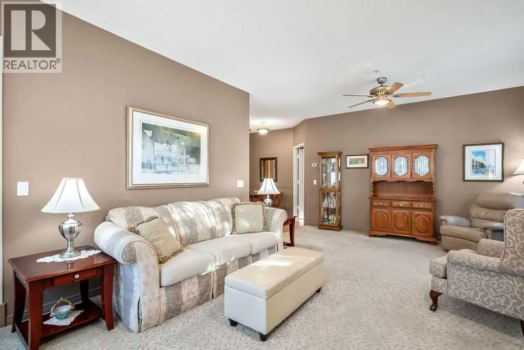 This bright and beautiful condo is ready to welcome its next owners, having been lovingly maintained by the original owners. Located on the main floor and a desirable end unit, it offers exceptional privacy in a whisper-quiet, well-managed building. Main floor units in this building enjoy soaring 10-foot ceilings, and this home truly stands out with two generous balconiesâone off the spacious living room and another off the second bedroom. These balconies are private, peaceful spaces perfect for morning coffee or evening wine with friends.The sunny kitchen is thoughtfully designed with ample cabinetry and counter space, newer appliances, and two pantries, making organization effortless. The two bedrooms are well separated by the living and dining areas, ideal for privacy. The large primary bedroom features a walk-in closet and a 4-piece ensuite complete with a deep soaker tub. The second bedroom, currently used as a den, includes a large closet and direct access to one of the balconies which is very private, nested in the mature trees.Additional highlights include a second 3-piece bathroom, a large in-suite storage closet, a laundry room with full size machines, and a spacious coat closet at the main entry. The living and dining areas are open and inviting, anchored by a cozy fireplaceâperfect for cooler evenings. There is also a gas hook up for your bbq on the deck off of the living room.This well-run building has recently updated common areas with fresh carpet, paint, and stylish finishes. Residents also enjoy access to a large bookable event room at no cost, complete with a full kitchen and sunroom, as well as a guest suite available for a small fee.The condo includes one titled underground heated parking stall and a storage locker. The quiet location is highly sought after for its close proximity to Glenmore Park, the Reservoir, scenic walking and bike paths, Glenmore Landing, Rockyview Hospital, and easy access to Stoney Trail as well as a quick and con venient commute to downtown. (id:27476)