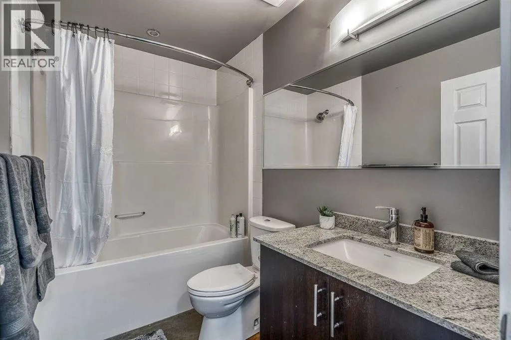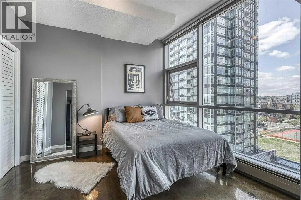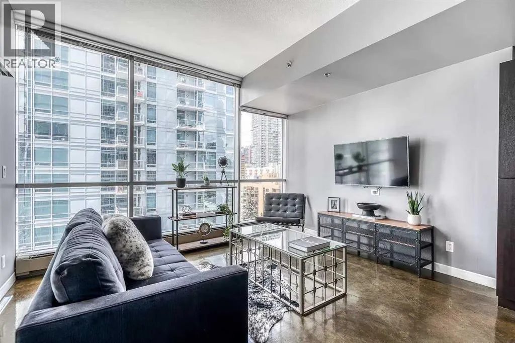 An incredible opportunity to own a thriving Airbnb with all furniture and furnishings included in Calgary's vibrant Downtown Beltline District! Bathed in natural sunlight, this stunning West-facing residence in the highly coveted, Colours by Battistella building effortlessly blends industrial style with contemporary elegance. Boasting 2 bedrooms and 1 bathroom, this unit features soaring 9-foot ceilings, polished concrete floors, and dramatic steel-framed floor-to-ceiling windows that frame incredible city views. The sleek kitchen is a delight with granite countertops and stainless-steel appliances, while conveniences such as in-suite laundry and central A/C ensure year-round comfort. As an established Airbnb property, this unit allows you to seamlessly take over the reins and continue reaping the rewards of this venture. Perfectly positioned in the vibrant Victoria Park neighborhood, youâll be just moments from downtown, Calgary Stampede Grounds, the Bow River, 17th Ave, and an array of Calgaryâs trendiest spotsâincluding Starbucks, Ten Foot Henry, and Proofâplus endless dining, nightlife, and entertainment options, all with public transit at your doorstep. (id:27476)