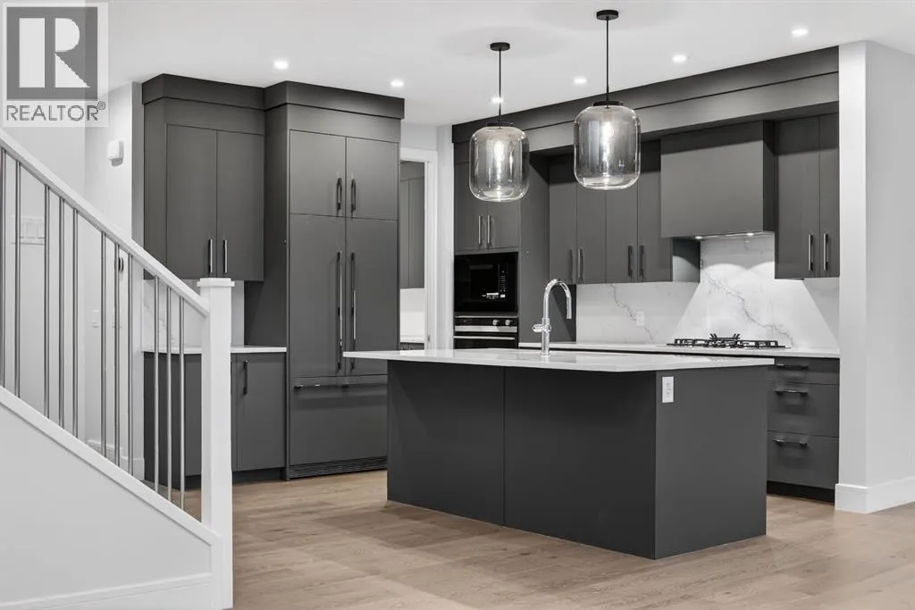 This TRUMAN-built residence is quietly situated on an exclusive cul-de-sac in the highly sought-after enclave of Westland Estates. Defined by refined craftsmanship, premium finishes, and timeless design, the home offers a rare balance of elegance, comfort, and long-term value.The open-concept main level is anchored by a chef-calibre kitchen featuring full-height custom cabinetry, soft-close doors and drawers, quartz countertops, and a premium integrated appliance package including a panelled refrigerator, gas cooktop, built-in microwave, and wall oven. A walk-in pantry with custom built-ins enhances both aesthetics and functionality. The kitchen flows seamlessly into the open-to-above great room, where dramatic two-storey ceilings create an impressive sense of volume. A gas fireplace with striking floor-to-ceiling architectural detailing serves as a commanding focal point, anchoring the space with warmth and understated eleganceâideal for both entertaining and quiet evenings.The main floor is completed by 9â ceilings, wide-plank hardwood flooring throughout, a versatile private den, and a thoughtfully designed powder room, all curated for effortless daily living.The upper level is distinguished by a primary retreat with tray ceiling, spa-inspired five-piece ensuite, and a generous walk-in closet. A centrally positioned bonus room, two additional bedrooms, a well-appointed four-piece bath, and upper-level laundry offer both comfort and functionality.The undeveloped lower level, featuring a separate side entrance, presents exceptional flexibility for future customizationâwhether a private gym, media lounge, or bespoke recreation space.Built by TRUMAN, a name synonymous with quality and architectural integrity, this home offers a rare opportunity to experience the privacy of Westland Estates while enjoying close proximity to the amenities, schools, and lifestyle of West Springs. A residence defined by distinction, designed for those who appreciate quiet luxury. (id:27476)