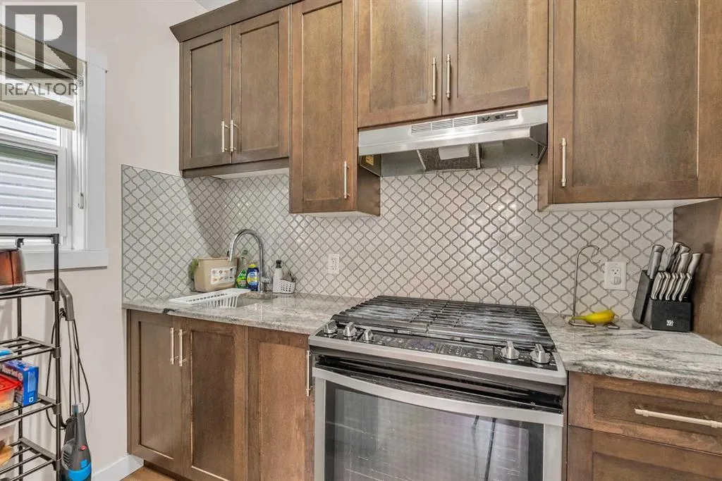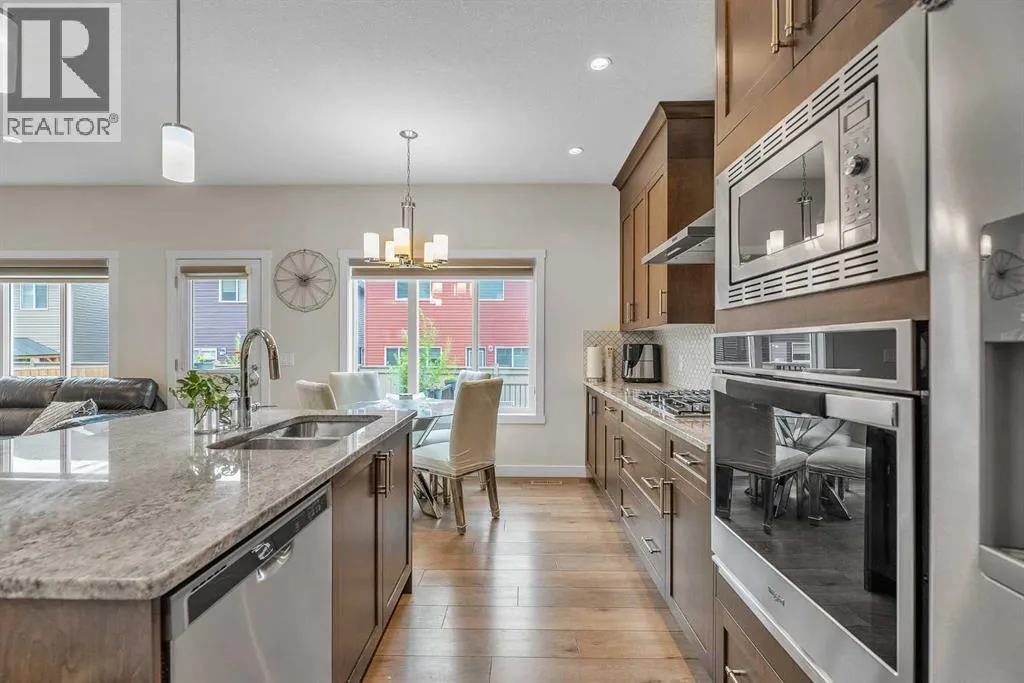 **OPEN HOUSE SATURDAY, FEBURARY 7 from 1-5 PM** Welcome to this exceptional home, offering 3,800+ sqft of developed living space in a prime location! With extensive upgrades throughout, this spacious residence boasts two living areas, a chef-inspired kitchen with a separate spice kitchen, and 5 bedrooms including a main-floor bedroom with a full bath. finished basement adds even more living space, featuring a wet bar, another full bath and a large storage room. Located on a quiet street, just seconds away from transit, parks and grocery stores, this home is perfectly positioned for convenience and comfort.As you enter the home, you are greeted by a grand 18' open-to-below foyer, with beautiful maple railing and soaring ceilings. The main level features LVP flooring throughout, with a spacious living room and dining area upon entry, perfect for hosting guests. The family room, set across from the chefâs kitchen, is centered around a natural gas fireplace with an upgraded maple mantle and stonework along with additional pot lights to brighten the space. The kitchen is a culinary masterpiece with granite countertops, soft-close maple cabinets, built-in appliances, and a large island. The kitchen is complemented by a bright breakfast nook with expansive windows overlooking the large deck. Additional highlights on the main level include a generously sized spice kitchen with a natural gas range, a private den/bedroom, and a full bath. Upstairs, you'll find four spacious bedrooms, including two primary suites with each suite boasting a 5-piece ensuite with dual vanities and walk-in closets. Additional features in these bedrooms include elegant pot lighting and tray ceilings for a refined touch. A large laundry room, main bathroom, and cozy loft area complete the upper level.The finished basement adds even more value, offering an expansive space for entertainment, a wet bar, a full bathroom with double sinks, and ample storage. Currently being used as a day home, the cur rent setup can also be included for the right price!Nestled on a quiet street, seconds walk to transit, parks, and grocery stores, this home is perfectly situated for both convenience and comfort. New roof shingles! Call your favorite realtor to book a showing! (id:27476)