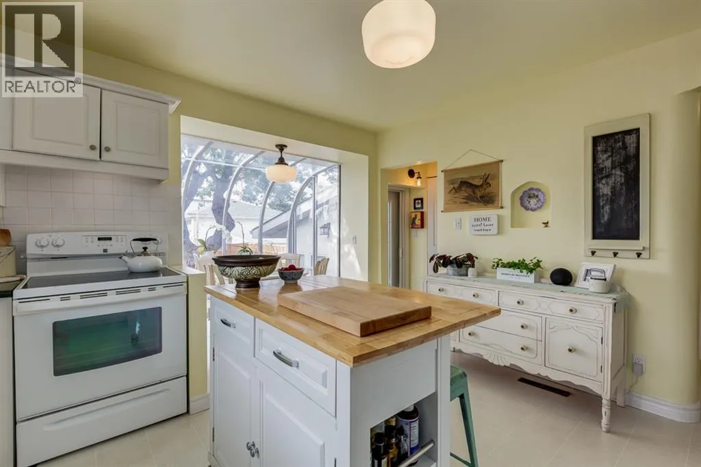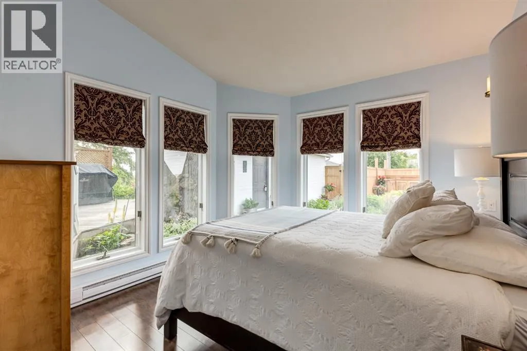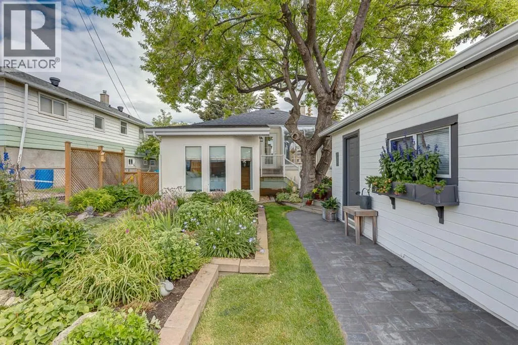 PREMIUM HILLSIDE BUNGALOW on SCOTSMAN HILL Move-in ready with multiple outdoor spaces to enjoy the private, serene garden and deck area! Original character, amazing NE views and sought after location, this adorable home is minutes from river pathways, farmer's markets, Inglewood shops & restaurants and walking distance to downtown! Step inside and be wowed by the super functional and beautiful design. Spacious white kitchen cabinets with a moveable eat-up island counter plus a solarium eat-in dining area to enjoy the backyard views. A great place to host friends and family, enjoy the front living room with plenty of natural light, beautiful views and original hardwood flooring. The primary bedroom hosts a king-sized set and overlooks the south facing backyard with extensive windows and natural light. Separating the 2 bedrooms is the updated and amazing main bathroom featuring white tile floors, plenty of storage space and a huge walk-in shower! The second bedroom is spacious and welcoming and can host a queen set up. Currently a single-family home, a walkout basement featuring one bedroom, three-piece bath, kitchen and lots of natural light lends itself to a potential up/down rental. The oversized single garage has lots of space for a workbench and storage. Two parking spots in front of garage alley access with no thru Road! Updated electrical, mechanical, some windows & roof. Perfect for move in ready investors/developers â the options are endless! Home is now vacant and Basement access for Illegal Suite Check out the zoning options! (id:27476)