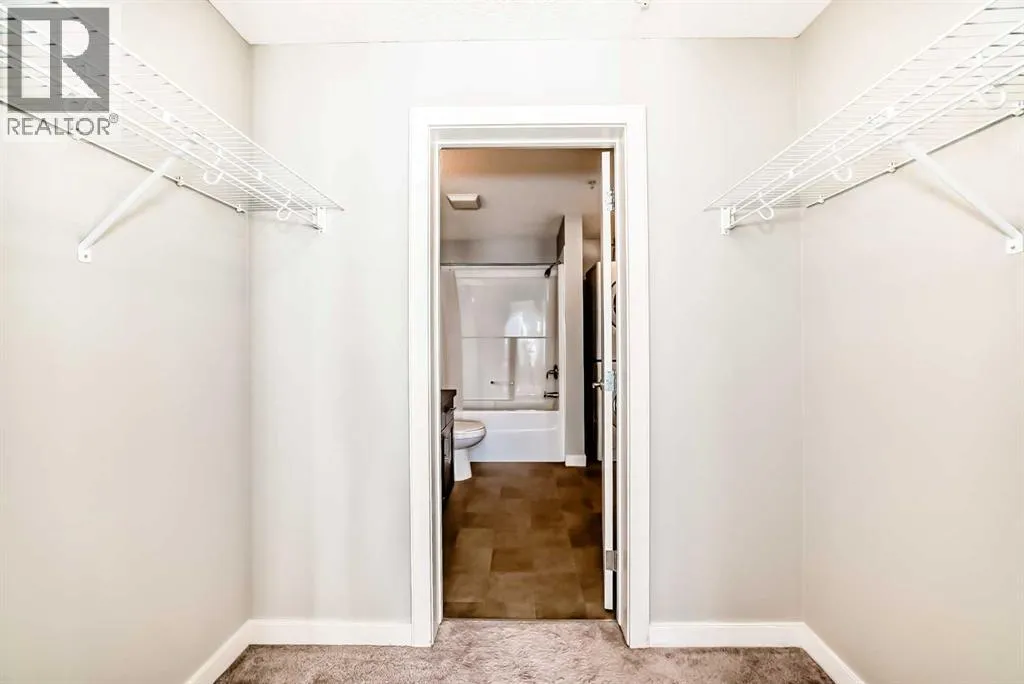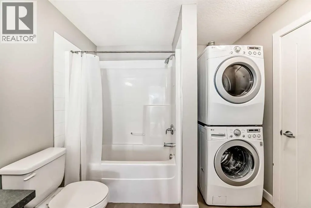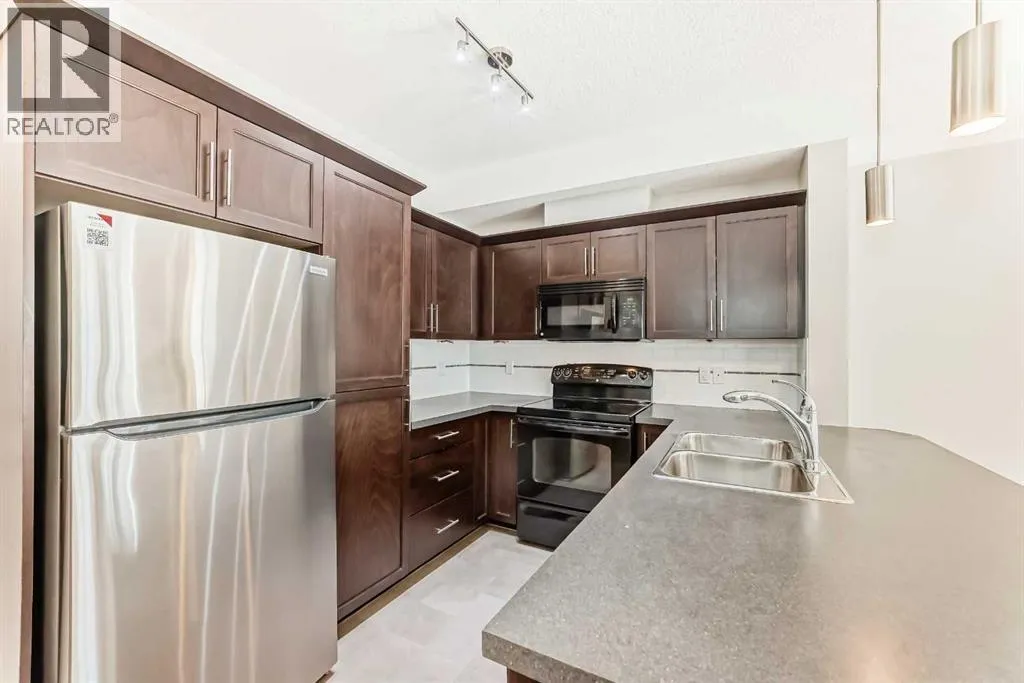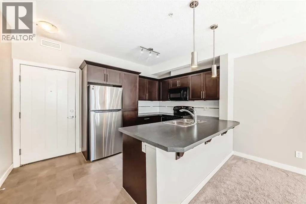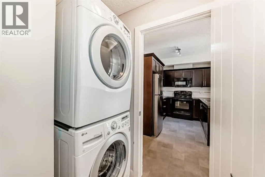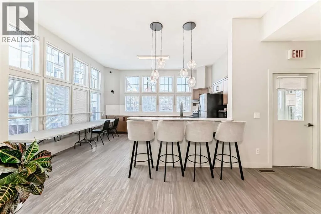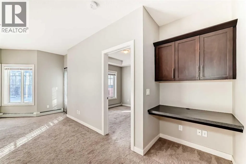 Located in the sought-after Red Haus complex in Royal Oak, this well-appointed one-bedroom condo offers comfortable, low-maintenance living in a highly convenient NW Calgary location. With easy access to shopping, dining, schools, the Rocky Ridge YMCA, C-Train service, and major roadways including Stoney Trail, everything you need is close at hand. Set on the second level, this open-concept home overlooks the attractively landscaped inner courtyard and features a private balcony with a natural gas hookup, perfect for outdoor cooking or relaxing. The kitchen is thoughtfully designed with stainless steel appliances (brand new fridge), generous cabinet and counter space, and a breakfast bar that connects effortlessly to the living area, creating a welcoming space for both everyday living and entertaining. A built-in desk area adds functionality and works perfectly as a home office or study nook. The bedroom is spacious and includes a walk-through closet that leads directly to the four-piece bathroom, where the in-suite washer and dryer are conveniently located. The unit also comes complete with titled underground parking, a titled storage locker, bike storage, and ample visitor parking. Residents enjoy access to shared amenities housed in the central clubhouse, including a fitness centre, a multi-purpose meeting room with kitchen facilities, and an outdoor patio area. This is a great opportunity to own in a well-run condo complex within one of NW Calgaryâs most desirable communities. (id:27476)