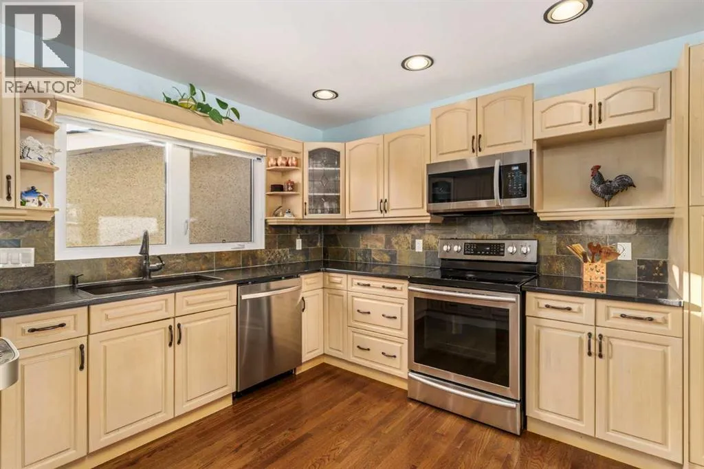 A thoughtfully, well-designed two-storey home with numerous improvements and upgrades is now available in the very desirable SE community of Bonavista Downs. This is a unique home in that it features two garages. The first is a front-facing, single (21âx12â), attached, insulated and heated garage with upgraded wiring, and finished interior which includes shelving. The front rubber-paved driveway offers additional parking. The second is an oversized double (25â x 28â), heated, detached garage accessed from the paved alley, and has a finished interior which includes shelving, cabinets, and a workbench and is wired for 220 volts. Three bedrooms, 3.5 baths and 2,250 sq. ft. of living space on three levels. Upon entering the tiled foyer, the natural light flowing in from the upgraded triple pane windows on all sides is remarkable. Motorized window blinds allow you to control the light factor. The main floor is comprised of living room, dining room and kitchen and has warm hard wood floors throughout. To the left is the living room with woodburning, stone surround fireplace and enough space to experiment with various furniture configurations. The rear deck is accessed via French doors in the living room. To the right of the foyer is the dining room with ample room for entertainment and is adjacent to the kitchen. Cream cabinetry and plenty of it in the kitchen is a beautiful contrast to the dark granite countertops and tiled backsplash. Gleaming stainless appliances and a pantry add to the efficiency. A 2-pc. bath completes the main level. Moving upstairs, there is a combination of hardwood and laminate flooring. The primary bedroom is large and sunny with the benefit of a newly added walk-through closet and 4-pc. ensuite (double vanity). Two additional bedrooms, both with generous-sized closets, share a 4-pc. bath. The basement has been attractively finished and features a large, carpeted rec room with a second woodburning fireplace (both fireplaces passed WETT inspecti on in 2023). Across from the rec room is a tiled home office and tucked back of that is the laundry room with upgraded plumbing, venting and wiring; storage area and an upgraded 3-pc. bath. The house, attached garage and detached garage all have well-insulated (R40) attics. In 2023 the furnace was upgraded to a high-efficiency model with smart thermostat, a tankless water heater was installed and the humidifier was replaced. Both front and back yards are landscaped with lawn and mature trees. The back yard is fenced and has sprinklers installed. A bonus is your own hot tub. Well situated and close to Stoney, Deerfoot and Macleod Trails and Anderson Road. Proximity to shops and restaurants on both Macleod Trail and 130th Avenue; the Bow River; numerous schools (public and Catholic); churches; playgrounds; dog parks; Fish Creek Provincial Park and South Health Campus. This home has obviously been well tended as evidenced by the many upgrades and enhancements. Don't miss out on this outstanding opportunity. (id:27476)