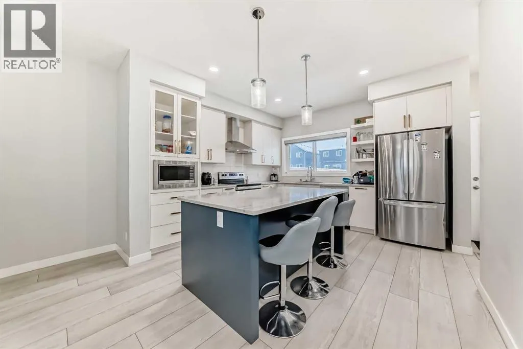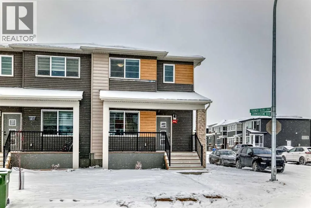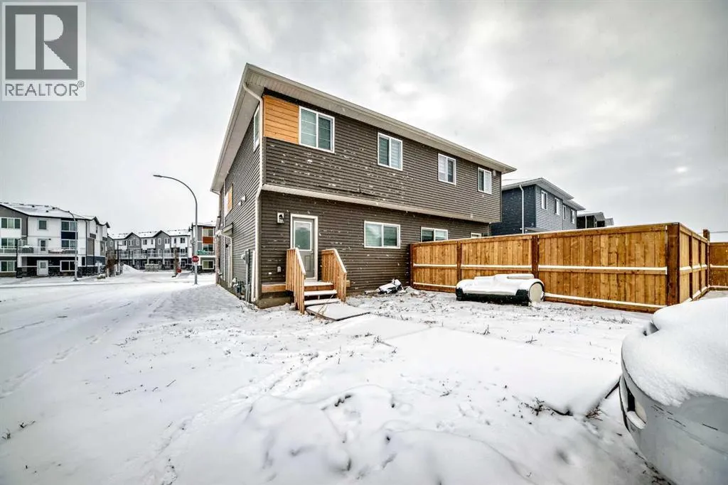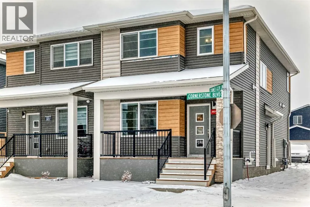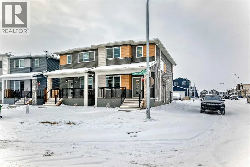 Welcome to this beautifully designed 2023-built semi-detached duplex offering approximately 1,649 sq. ft. of well-planned living space located in the vibrant and fast-growing community of Cornerstone. Situated on a premium corner lot, this home offers extra natural light, added privacy, and excellent long-term value.The open-concept main floor features 9-foot ceilings and a bright, spacious layout ideal for modern living and entertaining. The fully upgraded kitchen is the heart of the home, complete with a large island, upgraded cabinetry, and stylish finishes, seamlessly flowing into the living and dining areas.Upstairs, you will find three generously sized bedrooms along with a versatile bonus area, perfect for a family room, home office, or play space. The layout is thoughtfully planned to provide both comfort and functionality for everyday living. The basement offers a separate side entrance and is currently unfinished, providing a blank canvas for future development to suit your needs. Back alley access adds convenience and potential for future garage development.Located close to schools, parks, shopping, and with convenient access to Stoney Trail, Cornerstone is a well-planned community known for its excellent connectivity and family-friendly environment.This move-in-ready duplex is an excellent opportunity for homeowners and investors alike. Donât miss your chance to own a modern, upgraded home in one of the cityâs most desirable new communities. Call your realtor today to book private showing today!NOTE: There is minor hail damage on back side , owner will get it fixed before closing. (id:27476)