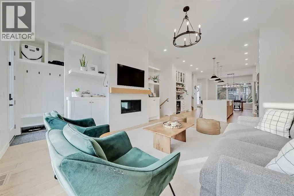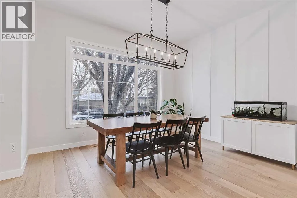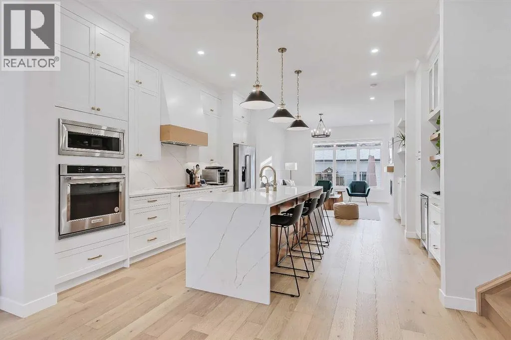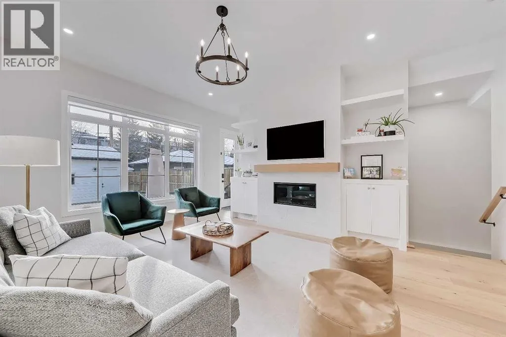 Set on a quiet, tree-lined street in Windsor Park, this semi-detached home delivers a refined blend of modern design, family-friendly function, and inner-city convenience. From the bright open-concept main floor to the spa-inspired primary suite and fully developed basement, every level has been thoughtfully designed to feel elevated yet comfortable. A chef-style kitchen with standout finishes, custom built-ins, a detached garage, and a private fenced SOUTH backyard come together to create a home that truly works for real life.The main floor is flooded with natural light and finished with wide-plank hardwood flooring throughout. The living room is anchored by custom built-ins, wainscotting, electronic blinds, and a sleek gas fireplace, creating a warm and inviting focal point. The kitchen is a true showpiece, featuring full-height white cabinetry with oak accents, quartz countertops, premium stainless steel appliances, including an INDUCTION cooktop, INSTANT HOT WATER tap, and a large island with seating. A statement apron-front farmhouse sink adds both character and function, while open shelving and thoughtful storage keep the space feeling clean and intentional. The open dining area sits beside oversized windows overlooking the front yard, making the entire main floor feel bright, connected, and ideal for entertaining.Upstairs, the primary bedroom offers a calm, private retreat with large windows, custom closet storage, and a luxurious ensuite. The ensuite is beautifully appointed with dual vanities, a freestanding soaker tub, and a glass-enclosed STEAM shower finished with timeless tile. Two additional bedrooms are bright & perfectly suited for kids with custom wall details & quick access to the modern 4-pc main bath. A spacious bonus room offers ample space to spread out and the laundry room completes this space.The fully developed basement adds exceptional flexibility with a spacious family room, built-in media wall & wet bar, creating an ideal space for movie nights or casual entertaining. A dedicated home GYM space and a fully equipped private OFFICE w/ built-in desk & storage are perfect for any family, while the additional bedroom and full bathroom make the lower level comfortable and functional. Outside, the fenced SOUTH backyard offers a low-maintenance outdoor space with a concrete patio and direct access to the detached garage.Windsor Park is one of Calgaryâs most established inner-city communities, known for its mature tree canopy, wide streets, and strong sense of neighbourhood. Youâre minutes from Britannia Plaza, Chinook Centre, Glenmore Trail, and Elbow Drive, making daily commuting and errands effortless. Nearby parks, playgrounds, and pathways offer easy access to green space, while respected schools, transit options, and quick connections to downtown add everyday convenience. Itâs a location that blends quiet residential living with exceptional access to the city.Polished inner-city living in a location that continues to deliver. (id:27476)