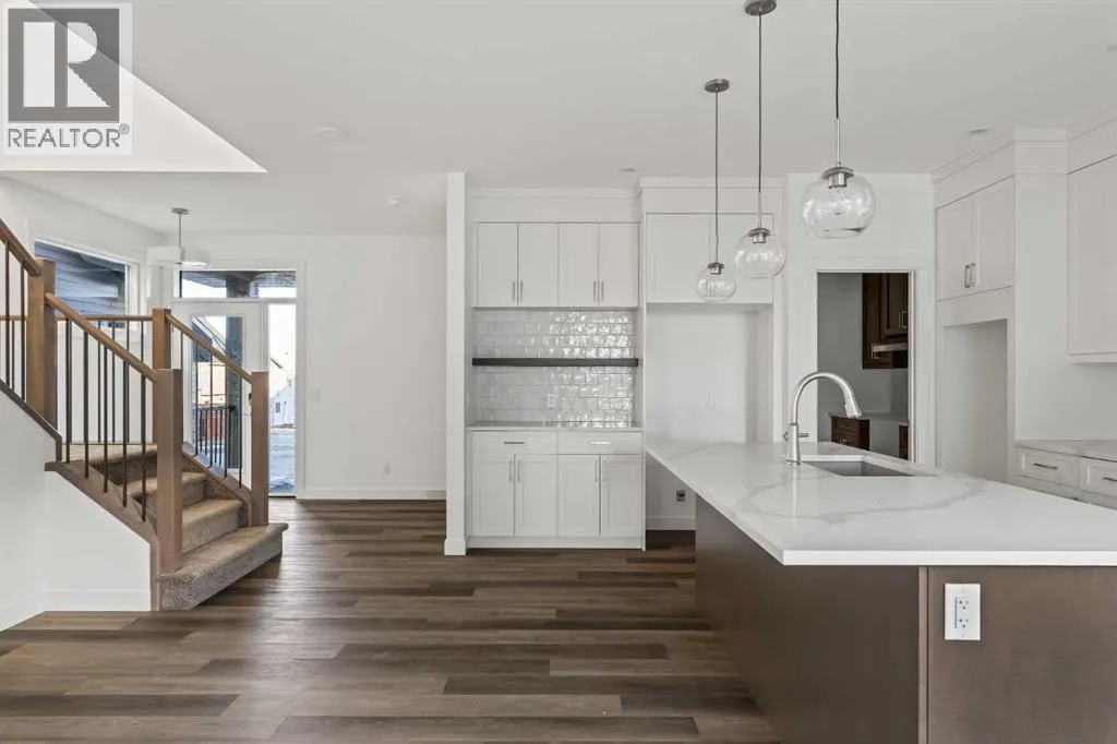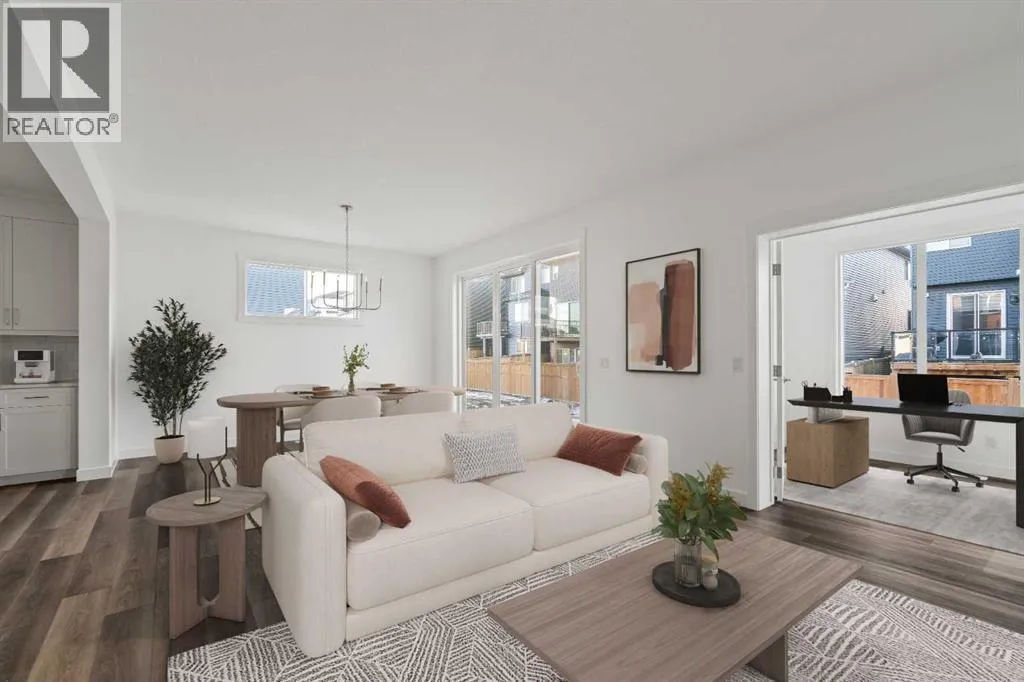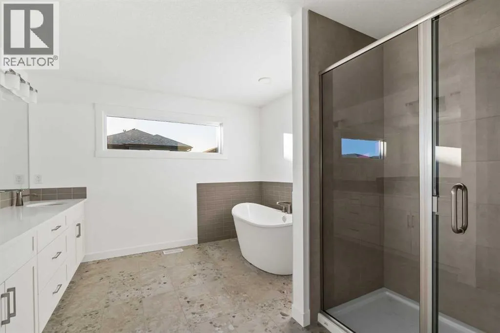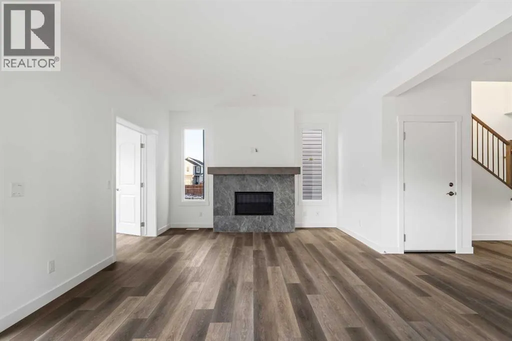 The Columbia 26 by Brookfield Residential is a stunning, brand-new home available for immediate possession, offering nearly 2,600 sq. ft. of beautifully developed living space above grade, plus an undeveloped basement with a private side entrance. With four bedrooms upstairs, multiple living areas, and a dedicated home office, this home is thoughtfully designed for growing families who need both function and flexibility. A spacious and welcoming foyer sets the tone as soon as you step inside, with clear sightlines that draw you through to the bright and open main living area at the rear of the home. Expansive windows line the back wall, filling the space with natural light throughout the day and creating an airy, uplifting atmosphere. At the heart of the home is a chef-inspired central kitchen that blends style and practicality. It features a large island perfect for gathering, a chimney-style hood fan, built-in wall oven and microwave, and a gas cooktop. An oversized pantry with a 2nd working kitchen connects directly to the mudroom for seamless grocery drop-off and everyday convenience. The kitchen flows effortlessly into the dining and living areas, making it an ideal layout for entertaining or spending time together as a family. Rich wood tones and a classic, timeless finish package carry throughout the home, offering both immediate appeal and lasting value. A private main floor flex room with double doors provides a quiet space for a home office or study. The cozy central gas fireplace enhances the living room, making winter evenings feel extra inviting. The main level is rounded out with three separate closets, a generous mudroom, and a convenient two-piece powder room. Upstairs, a central bonus room creates a smart separation between the primary suite and the other bedrooms, giving everyone their own sense of space. The primary bedroom overlooks the backyard and features a spacious ensuite complete with dual sinks, a walk-in shower, a relaxing soaker tub, and an oversized walk-in closet. Three additional well-sized bedrooms offer a mix of walk-in and double closets and are perfect for children or guests. A full bath and dedicated laundry room add everyday ease to the upper floor. The basement remains undeveloped and full of potential, with rough-ins already in place and a private side entrance - ideal for future customization. Situated in the vibrant new community of Starling/Moraine, this home comes with Alberta New Home Warranty along with the builderâs warranty, giving you confidence and peace of mind when purchasing this exceptional new home. (id:27476)