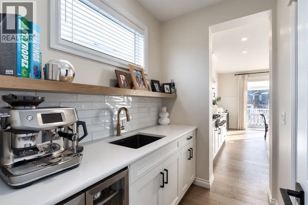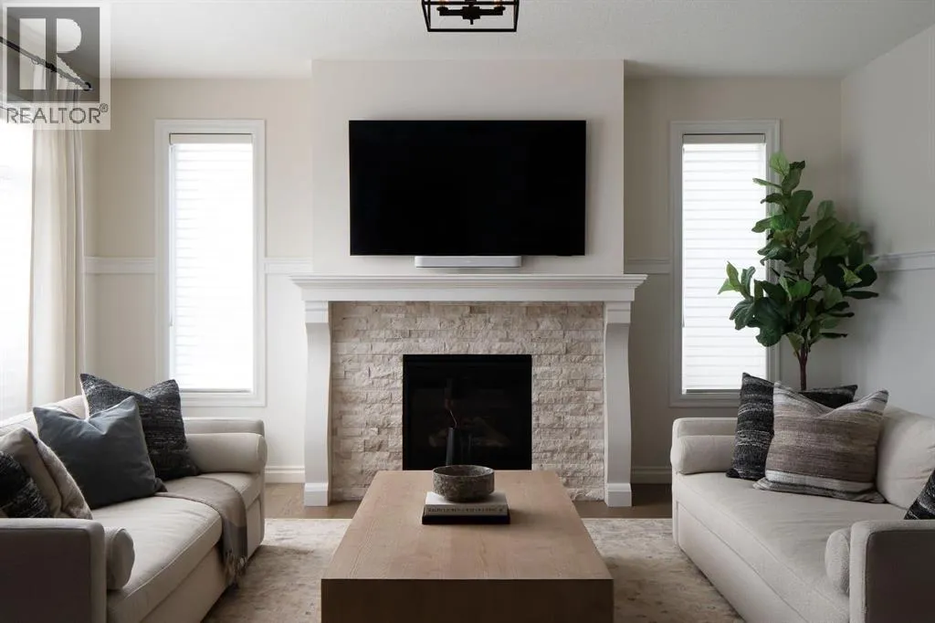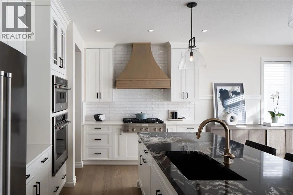 BILD Calgary Award Finalist | Built by Morrison HomesBacking onto a quiet, private wooded setting in Legacy, this beautifully upgraded estate home offers timeless design paired with exceptional functionality. Upgraded hardwood flooring flows throughout both the main and upper levels, complemented by ornate moldings and custom cabinetry that elevate every space.The chef-inspired kitchen is equipped with premium stainless steel appliances, granite countertops, custom glass cabinetry, and a striking statement hood fan. The open-concept main floor features a welcoming great room with gas fireplace, an elegant dining area with triple-panel patio doors, and a private office with custom built-ins. A thoughtfully designed mudroom, wet bar, and large enclosed pantry connect seamlessly to the heated triple attached garage.Upstairs, the spacious primary retreat offers a spa-like ensuite and walk-in closet, alongside three additional bedrooms, a full bathroom with dual sinks, a generous bonus room, and convenient upper-level laundry. The fully finished sunshine basement includes a bedroom with walk-in closet, a 4-piece bathroom, and a large recreation roomâideal for guests, teens, or extended family.Located just steps from the future Living Spirit Catholic School (Kâ9, opening 2026) and close to parks, shopping, and major roadways, this exceptional home combines luxury, comfort, and a rare wooded backdrop in one of Legacyâs most desirable family communities. (id:27476)