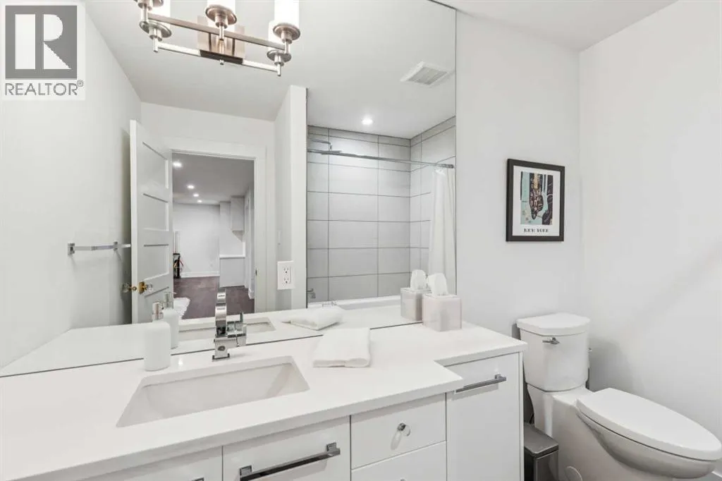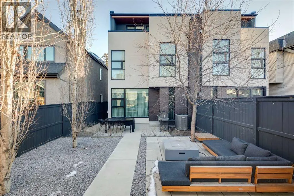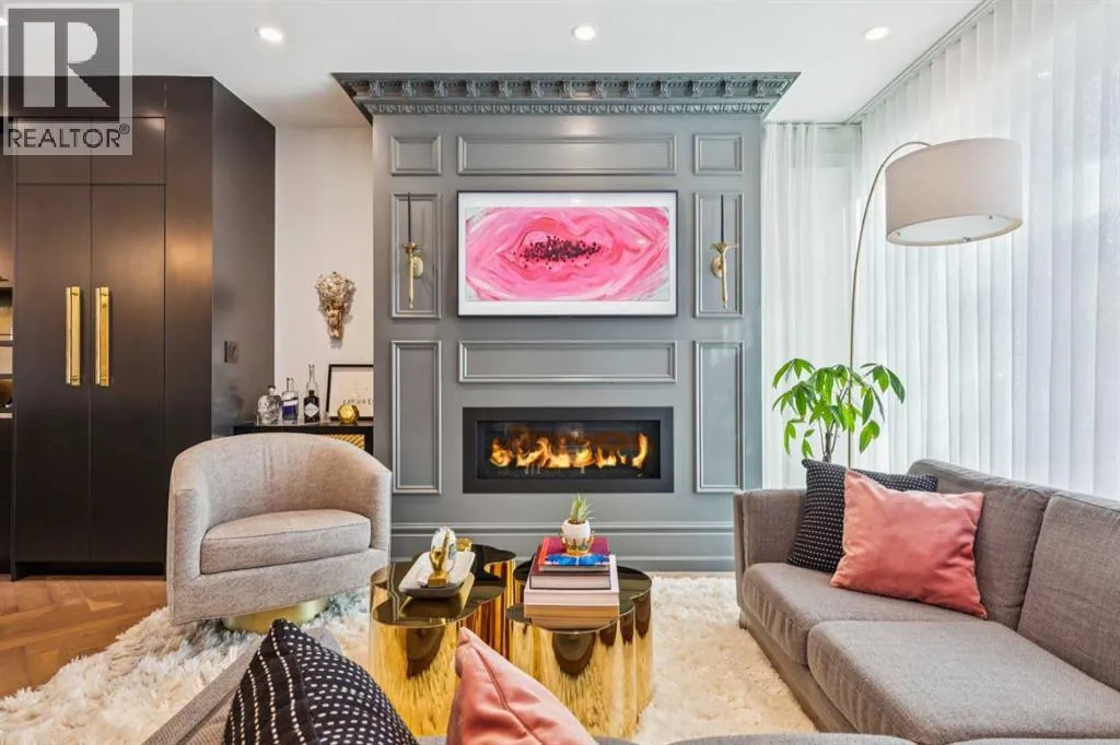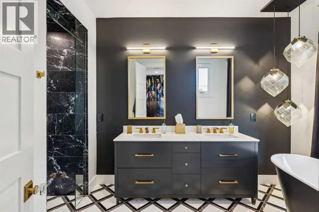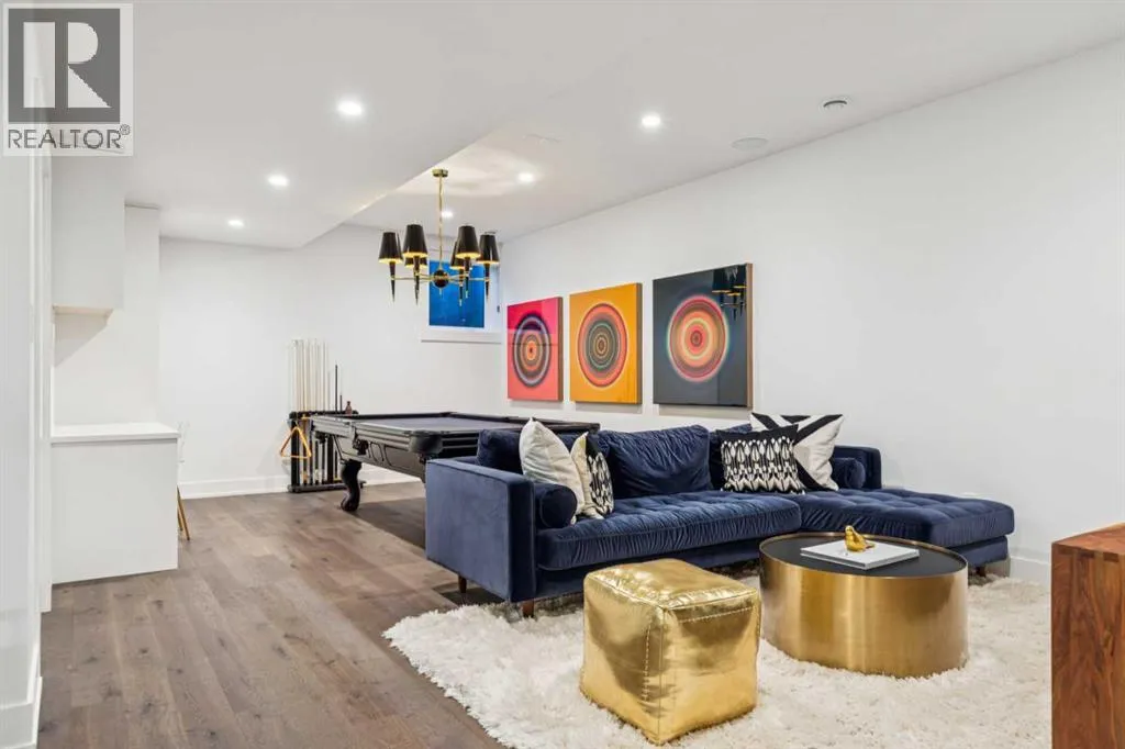 Exceptionally high-quality home in sought-after Parkhill, just a few doors from the Ridge Park with access to the Elbow River pathway system. Enjoy a walkable lifestyle minutes from the vibrant 4th Street Village, offering an endless array of shops, dining, and services, along with proximity to excellent schools. This stunning contemporary residence showcases impeccable design and craftsmanship with architecture by Marvin DeJong and an incredible array of upgrades. Brick, metal, and stucco create a striking curb appeal punctuated with a custom 2.5â solid oak and glass front door. 3,096 sq ft of developed living space including 4 bedrooms and 3.5 bathrooms. The totally open-concept main floor features high ceilings, exceptional natural light from the oversized front and rear windows and custom herringbone hardwood floors. The living room is anchored by a custom-paneled fireplace with âframeâ television and soft floor-to-ceiling sheers. Truly incredible chefâs kitchen with extensive custom cabinetry, quartzite counters and a massive âwaterfallâ island with seating. Top appliances include: a La Cornue gas stove, Subzero fridge plus 2 fridge drawers, 2 Subzero freezer drawers, 2 Subzero wine fridges, Wolf Induction burner, 2 dishwashers and a custom fabricated quartzite sink. The generous dining area with designer lighting and built-in storage overlooks the rear yard . A mudroom with heated floor and excellent storage and a discreet, elegant powder room complete the main level. Striking staircase with glass wall and solid wood treads leads to the upper floorsâ¦no carpet in the home. The primary suite features blackout drapery, wall-mounted TV and a well-organized walk-in closet. The spa-inspired ensuite showcases heated custom marble flooring, designer lighting, Kateryn cast iron soaking tub, zero-threshold shower with steam, water closet with Japanese bidet toilet and a large double vanity with honed marble counter and Restoration Hardware fixtures. The balance of the s econd level includes two bright bedrooms (one currently used as a dressing room), a spacious house bath and a walk-in laundry room with sink and storage. The top-floor holds both a large studio space with amazing light quality and an office area with access out to a large and private terrace. The fully finished lower level offers heated hardwood floors, a media space, games room, work station, bedroom and a full bath. Outdoor living is equally impressive with a front terrace with perennial-rose garden and a sunny west-facing and low-maintenance back yard with multiple patios. Additional highlights include a smart home system that controls Lutron lighting, temperature and security, a sprinkler system and Gemstone exterior lighting. The fully finished and heated double garage has 2 EV chargers and enjoys a paved alley. This exceptional property must be seen to be appreciated. (id:27476)