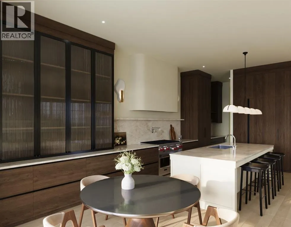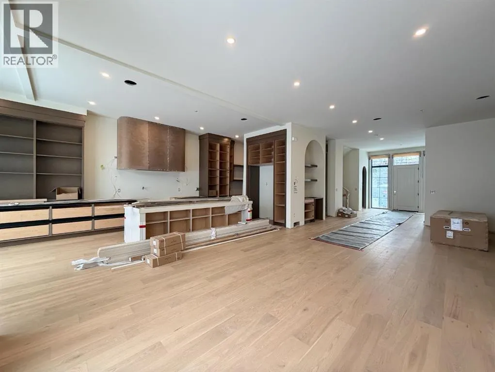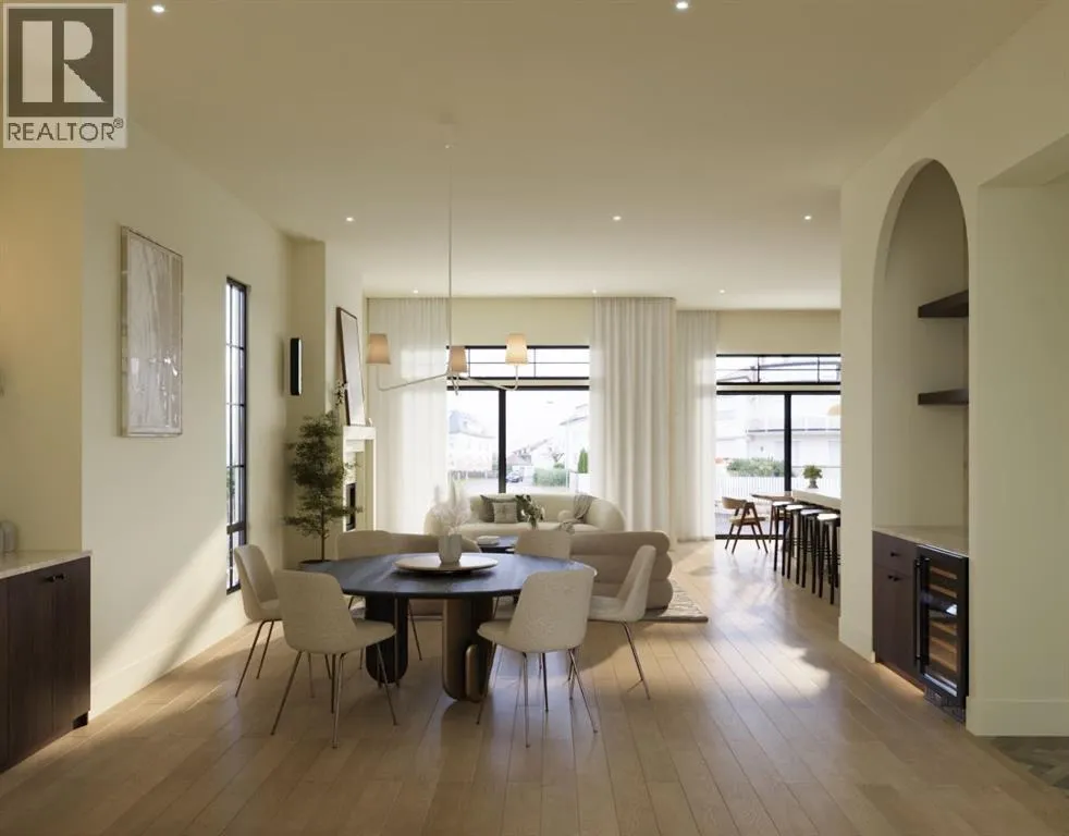 Luxury pre-sale opportunity on one of Altadoreâs most sought-after streets. This brand new custom-built home by Jerry Homes and designed by aalstudios offers over 4,200 square feet of total elegant living space designed for modern comfort and style. Situated in the heart of Altadore, the exterior showcases timeless architectural details with rich red brick, vertical black siding, and warm accent lighting that highlights its striking facade. Inside, eleven-foot ceilings, expansive windows, and wide-plank hardwood floors create a seamless flow throughout the main level. The front entry opens to a beautiful home office or study, followed by an open concept dining room with custom arched built-ins. The living room features a sleek floor-to-ceiling fireplace that anchors the space and overlooks the backyard through oversized sliding doors that flood the home with natural light, complemented by a breakfast nook. The kitchen is the centrepiece of the main floor, equipped with full-height custom cabinetry, a large quartz island, a walk-in pantry, and a premium built-in appliance package featuring a Sub-Zero refrigerator and a Wolf gas range. A stylish powder room wrapped in designer wallpaper and a spacious mudroom with custom lockers complete this level. Upstairs, the second floor offers three spacious bedrooms, each with its own ensuite bathroom, a den, and a thoughtfully designed layout ideal for family living. The primary suite is a private retreat with twelve-foot tray ceilings, large windows, and a spa-inspired ensuite featuring a curved glass shower, a freestanding curved soaker tub, dual vanities, in-floor heat and two large walk-in closetsâone complete with a makeup vanity. The two additional bedrooms each include walk-in closets and elegant en-suites. A dedicated laundry room with built-in cabinetry and a sink adds everyday convenience, while a south-facing den with large windows provides a bright and versatile space to complete the upper level. The fully develope d basement extends the living area with a large recreation room featuring a custom wet bar and built-in shelving, a glass-enclosed gym, a wine room, a spacious guest bedroom, and a full bathroom. Additional features include rough-ins for air conditioning, basement in-floor heating, security cameras, and built-in speakers. The exterior offers a landscaped yard, rear deck, and a triple detached garage. This remarkable home seamlessly blends quality craftsmanship with refined modern design. Every detail has been carefully curated for luxury living, from the high-end finishes to the integrated Sub-Zero and Wolf appliances. Perfectly situated steps from schools, parks, and Marda Loop amenities, this residence embodies the perfect balance of sophistication, functionality, and timeless design in one of Calgaryâs most desirable inner-city neighborhoods. Call today to book your private tour. (id:27476)