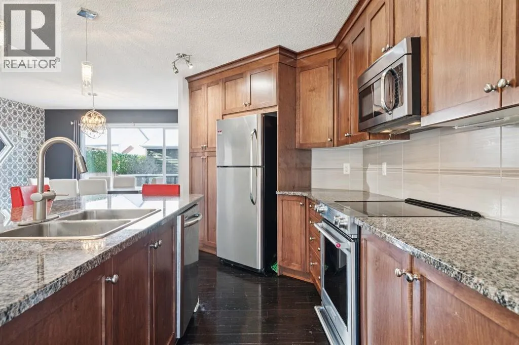 THE BELVEDERE FLOOR PLAN is the single best plan ever created in Calgary! STUNNING VAULTED CEILINGS, CURVED GRAND STAIRCASE, OPEN TO BELOW VIEWS AND SKYLIGHTS! This home is as bright as they get! Stunning design in a detached laned home that has to be seen in person to appreciate it. This home is meticulously cared for and boasts new carpets, fresh paint and a prime location a half block to CBE elementary which guarantees you morning kindergarten options! Vaulted ceilings with skylights and open to below are show stoppers! Gorgeous chef's kitchen with super tall cabinets, stainless appliances and granite counters. Sunny oversized dining room off the kitchen will easily hold large furniture and gives you a clear view to the developed backyard through the massive SW windows. Sunken living room is super spacious, has massive windows and shows off hickory solid wood flooring. Take a tour up the spiral staircase to the second floor where you will find BRAND NEW CARPET and skylights flooding this open to below view down into the kitchen. YOUR PLANTS WILL LOVE THIS HOUSE. Primary bedroom is spacious and features an ensuite bath with separate soaker tun and shower and large walk-in closet. 2 additional kids rooms are a great size and located on the opposite side of the hallway. Another 4 pc bath finishes the upper level. Back door has a small mud room area, which is ideal as you enter from the back door where your double detached garage sits, complete with designer colour package inside and extra attic storage above. Backyard is finished with a huge 19x12 deck, a built in hot tub and patio stones. The basement is completely unfinished and waiting for your design ideas. Gorgeous curb appeal with new sod in the front. Furnace serviced in 2026. Access to the New Brighton Club is included in this home, where you can experience family classes, skate in the winter on the frozen path and a terrific playground and adult gym. Walk your kids to school at Dr. Martha Cohen CBE school. YOU WILL BE AMAZED HOW MUCH YOUR MONEY GETS YOU IN THIS INCREDIBLE LAYOUT. BELVEDERE FOR THE WIN EVERY TIME! (id:27476)