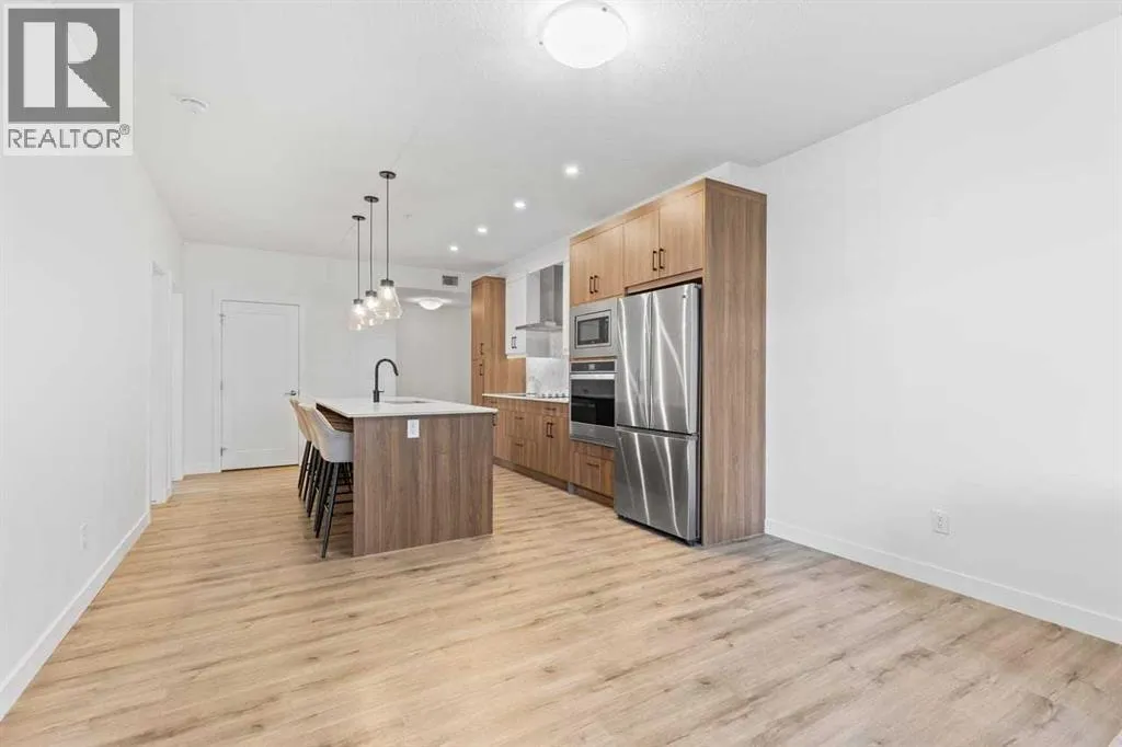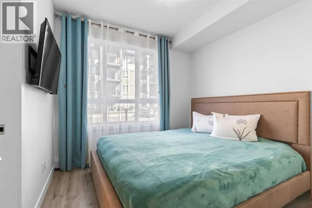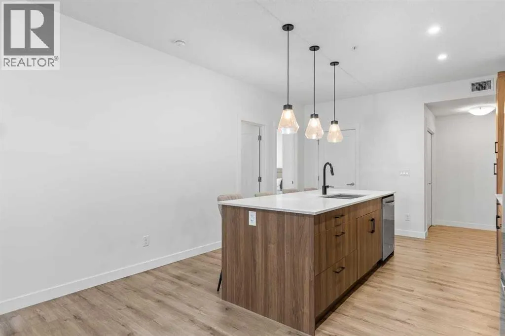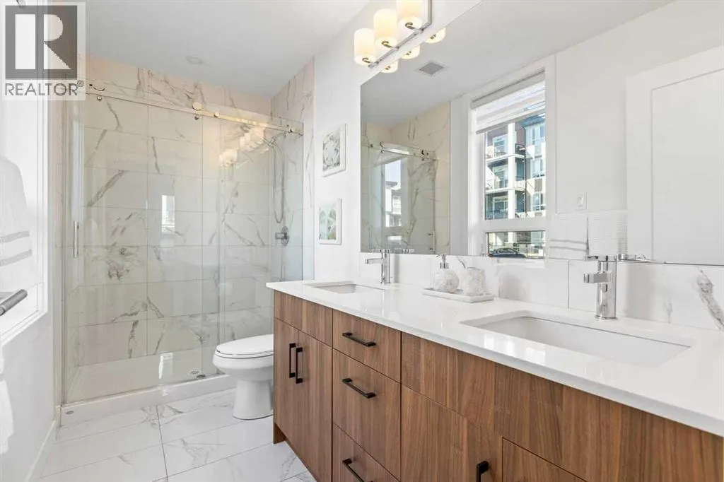Looking for space + style? This 958 sq. ft. 2 bed/2 bath condo in Walden has tons of upgrades, 2 parking stalls, and a private deck with gate to green space. A true gem in the heart of the community! The unit can be accessed either through the main building entrance or via its own private ground-level entrance. The kitchen and bathrooms showcase custom tilework along with quartz island that comfortably seats four. A chimney-style range hood, counter-depth fridge, smooth cooktop, granite sink, pot lights, and under-cabinet lighting complete this stunning kitchen.The primary bedroom easily fits a king-sized bed and nightstands, and connects to a large walk-through closet leading to a beautiful ensuite with a frameless glass shower, quartz countertops, two sinks and built-in cabinetry. The second bedroom fits a kingsize bed too and offers direct access to the main 4-piece bath. The heated underground stall is conveniently located near the entrance and direct access to the assigned storage locker. With its rare floor plan, extensive upgrades, and unbeatable outdoor space, this condo is truly a gem in family friendly Walden. (id:27476)