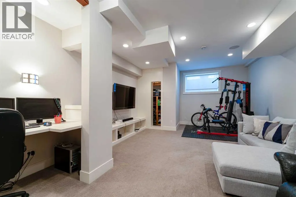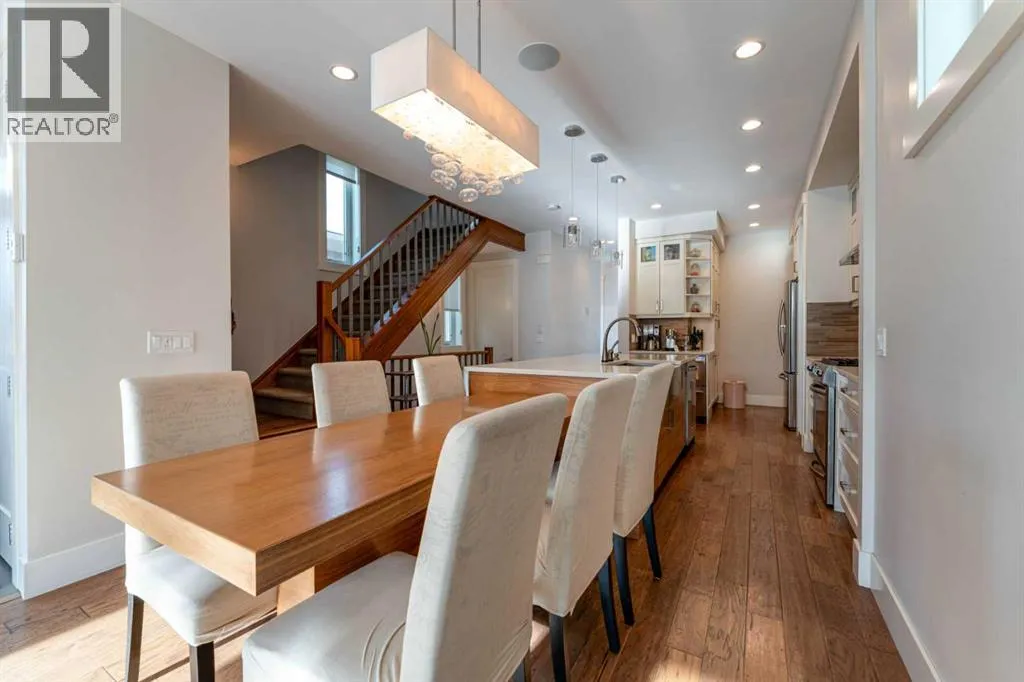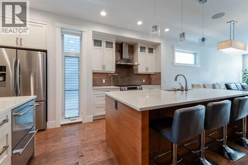 Check out the Virtual Tour of this exceptional custom-built home in Winston Heights. Perfectly positioned on a quiet street with quick access to downtown, Deerfoot Trail, schools, and shopping, this stunning three storey residence offers the ideal blend of luxury, functionality, and energy efficient space.Thoughtfully crafted with eco conscious features throughout, the home includes in floor heating on all levels, spray foam insulation, and triple pane heat deflecting windows. Each floor has dual zone temperature controls. Spanning approximately 3,200 square feet of fully finished living space, the open concept layout is flooded with natural light thanks to numerous windows and a sunny south facing backyard. The main floor welcomes you with a stylish front entrance featuring a built in bench beside a flexible office or study space. Wide plank hardwood flooring carries through the main and upper levels, leading into a beautifully designed living area with a sleek gas fireplace and custom built ins. The chef inspired kitchen is the heart of the home, complete with stainless steel appliances, quartz countertops, a gas range, extensive cabinetry, and a massive island with seating that is perfect for entertaining. Upstairs, the primary retreat is a true sanctuary, offering a luxurious five piece ensuite with double sinks, a large soaker tub, and an oversized glass steam shower. A spacious second bedroom, a full bathroom, and a conveniently located laundry room complete the second level. The third storey features a generous bonus or family room, a third bedroom, and another full bathroom, making it an ideal space for guests, teens, or a private retreat. The builder finished basement adds even more versatility with a cozy media or TV area, built in shelving and workspace, a fourth bedroom, and a full bathroom. To finish off the basement, you have a built-in hidden wine cellar. Meticulously maintained with a recently replaced new furnace and circulator heads for the in-fl oor heating that should last another 10-15 years. Step outside to a backyard with a well designed garden bed surround an oversized deck accessed directly from the living room sliding doors. The fully fenced yard offers both beauty and privacy, while the double detached garage features dual sided doors, with an additional door to drive through and park a well sized RV, trailer or more. With four bedrooms, five bathrooms, exceptional craftsmanship, and high end finishes throughout, this home is a rare opportunity for those seeking modern luxury, comfort, and sustainability in one of Calgaryâs most desirable inner city communities. Book your private showing today. (id:27476)