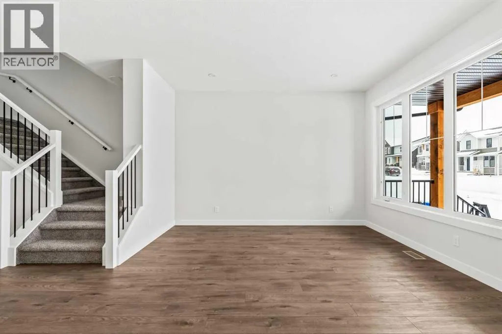 Welcome to the Wicklow in the vibrant community of Seton. This thoughtfully designed home by Brookfield Residential features 3 bedrooms, 2.5 bathrooms, two distinct living areas, and a full basement that awaits your imagination! Offering nearly 1,700 sq. ft. of living space across two levels, the Wicklow blends modern design with functional, family-friendly layouts. The main floor is bright and inviting, with expansive front windows that allow natural light to flood the space throughout the day, while ensuring optimal sunshine in the southwest-facing backyard in the evenings. The open-concept layout is enhanced by 9-foot ceilings, creating a comfortable and airy living environment. The kitchen is a standout feature with full-height cabinetry, a central island, a large corner pantry, and a full suite of stainless-steel appliances, including a chimney-style hood fan, built-in microwave, and gas line for the range (electric range included). It flows seamlessly into the dining area and sliding patio doors lead to the backyard, perfect for indoor-outdoor living. On the upper level, a centrally located bonus room provides separation between the spacious primary suite and the two additional bedrooms, offering added privacy. The primary suite features a walk-in closet and a luxurious 4-piece ensuite with dual sinks and a walk-in shower. Two more bedrooms, a full bathroom, and an upper-level laundry room complete this level. The full basement is undeveloped, offering endless potential, and includes a separate side entrance for direct exterior access. There is ample space to create a large living area, an additional bedroom, and a full bathroom, making this ideal for growing families or future income potential (subject to local municipal guidelines and approvals). The southwest-facing backyard provides plenty of space for family activities and leads to a double parking pad, with future potential to add a detached garage if desired. This home comes with a builderâs warranty an d the Alberta New Home Warranty, giving you peace of mind. Ideally located just a short walk from Setonâs extensive amenities and the South Calgary Health Campus, this property is perfect for families or investors alike. (id:27476)