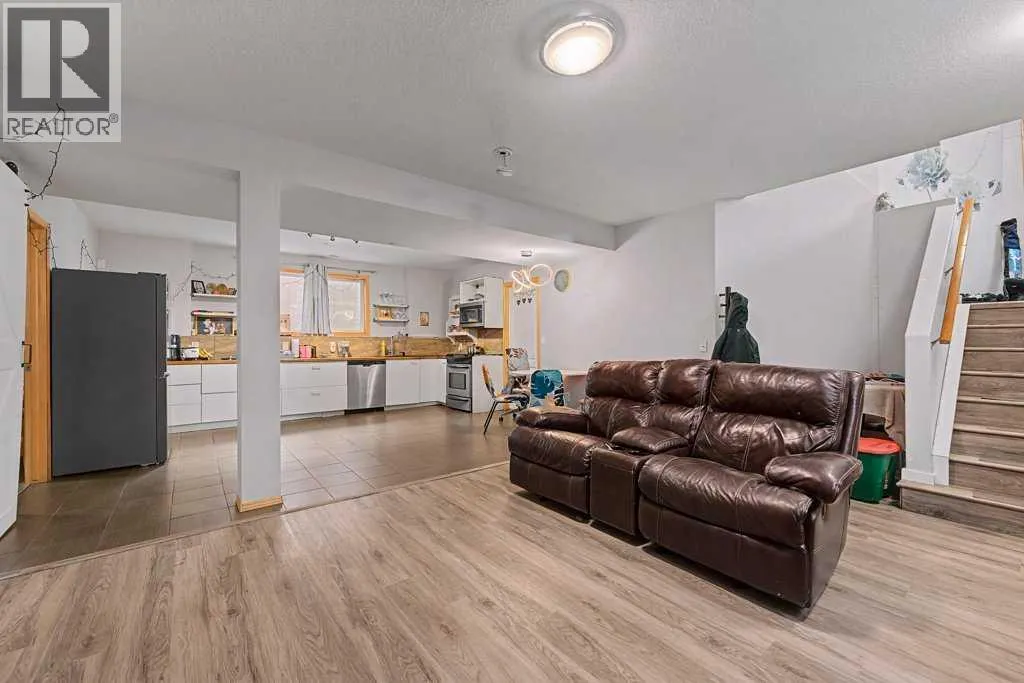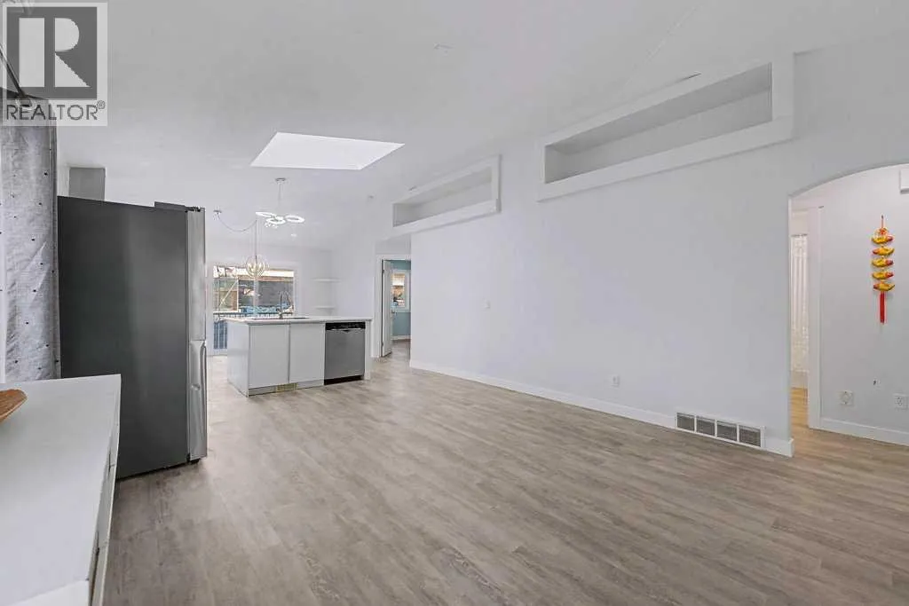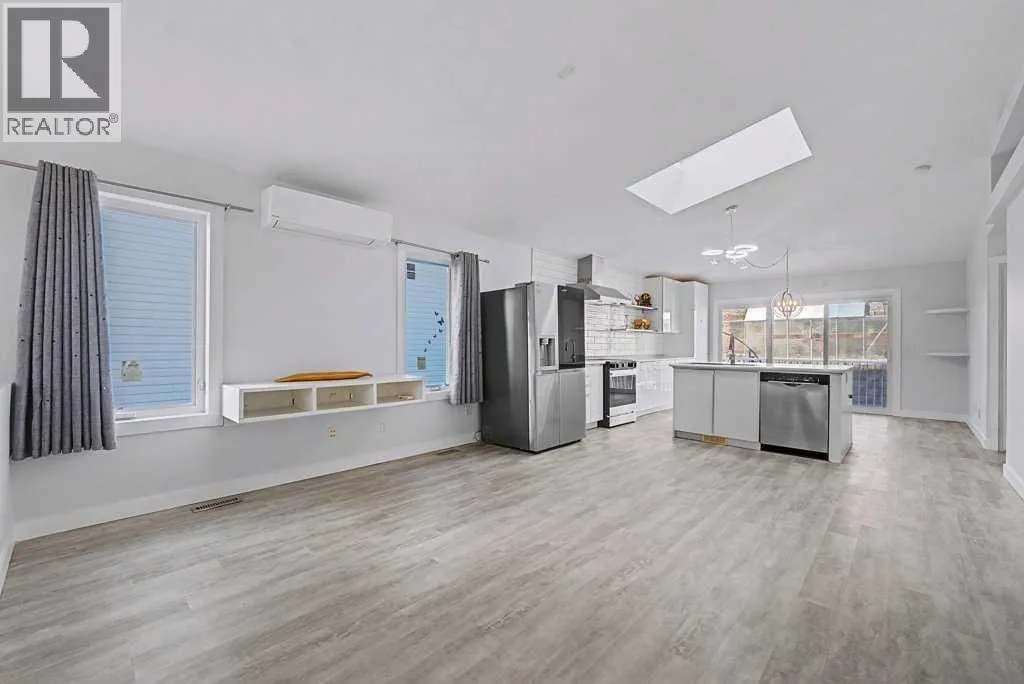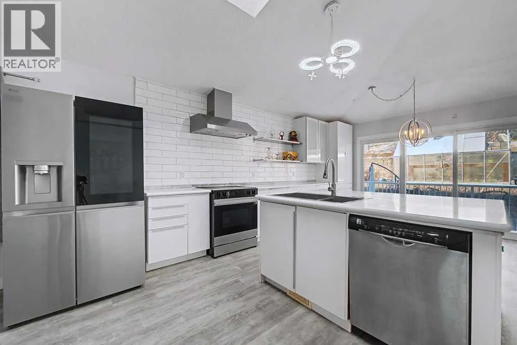 Such a unique "one-of-a-kind" home..... 5 bedroom, 3 bathroom home with recent renovations - backing onto Green Space - Sunny West Exposure with a large deck! Nearly 2200 sq. ft. of "Air Conditioned" comfort - includes a 2 bedroom basement Legal Suite! Be welcomed into the spacious "open plan" design with soaring vaulted ceilings with a large skylight throughout the living room, plus all new windows throughout this home! Much natural light abounds here! All wide vinyl plank flooring on main level! The chef's gourmet kitchen boasts newer white lacquer smooth-finish cabinetry with quartz counters and large island with a stainless steel under mount sink, new backsplash, new high-end fridge and new stove, stylish hood fan, plus Bosch stainless steel dishwasher. The "eat-in" kitchen nook also provides adjacent access to the sunny west fibreglass deck! This unique home offers a spacious main level master bedroom with a 4 pc ensuite - plus walk-in closet, 2 additional bedrooms and another full 4 pc bathroom, plus a main level laundry. The 2 bedroom basement legal suite offers 2 bedrooms, a full 4 pc bathroom, large living area, separate laundry room, plus storage area. The greenhouse offers the perfect garden oasis, the fire pit and apple trees add to the overall ambience and this lot has privacy galore. New roof and new hot water tank. Double attached front drive garage, plus an oversized driveway for 3 cars! Quiet crescent location within walking distance to Transit #3301, Schools, Park, Movie Theatre , Vivo, Superstore and all amenities. (id:27476)