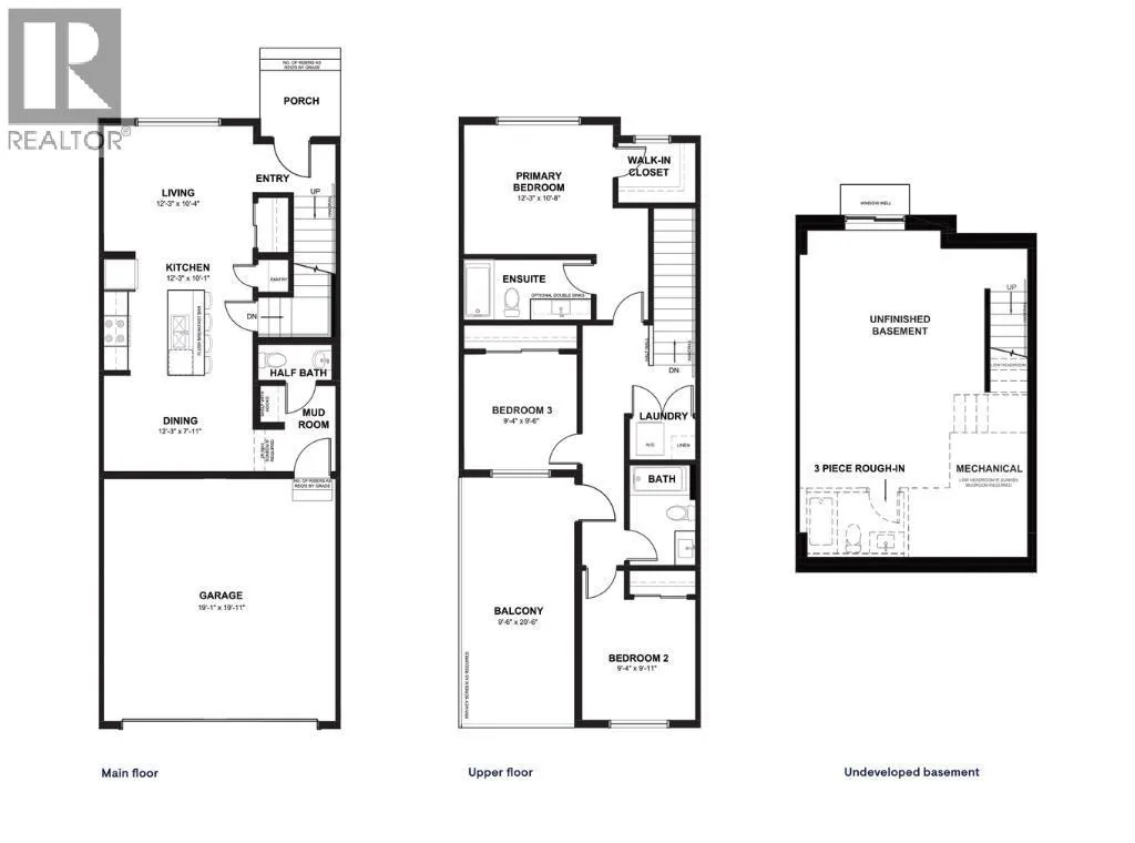 NEW BUILD | NO CONDO FEE | 3 BED / 2.5 BATH / 1382 SQ FT | REAR ATTACHED DOUBLE GARAGE | 9 FT CEILINGS | UNDEVELOPED BASEMENT | EST. Q4 2026 POSSESSION â Welcome to the Amber model by Minto Communities, an award-winning Canadian builder, located in East Hills Crossing, one of southeast Calgaryâs fastest-growing and most convenient communities. These thoughtfully designed lane townhomes offer modern finishes, functional layouts, and long-term value in a location that truly stands out.The main floor features a bright, open-concept design with 9-foot ceilings, creating a spacious and airy feel throughout. The layout opens into a generous living room, perfect for everyday living or entertaining. At the heart of the home is the kitchen, complete with a central island, stainless steel appliances, and contemporary finishes, seamlessly connecting to the dining area at the rear of the home. A convenient half bath and mudroom are tucked away at the back, providing direct access to the rear attached double garage, keeping daily life organized and efficient.Upstairs, youâll find a well-planned upper level designed for comfort and privacy. The primary bedroom is spacious enough to accommodate a king-sized bed and includes a walk-in closet along with a 4-piece ensuite, with the option to upgrade to a 5-piece. Two additional well-sized bedrooms, a full 4-piece bathroom, upper-floor laundry, and a linen closet complete this level. Adding even more appeal is a large private balcony located above the garage, an ideal spot to enjoy morning coffee or unwind in the evening.The home also includes a full, undeveloped basement with rough-in for a 3-piece bathroom, offering excellent future potential to add a large recreation space, and additional storage as your needs evolve.Ideally situated across from East Hills Crossing Shopping Centre and Costco, this location offers unmatched convenience with shopping, dining, and services just steps away. Public transit is nearby, providing a qui ck and easy commute to downtown Calgary in minutes. East Hills itself is a vibrant, well-connected southeast community, known for its thoughtful planning, green spaces, pathways, and easy access to major roadways and 17 Ave SE.Combining modern design, a functional floor plan, and an unbeatable location, this is an excellent opportunity to secure a brand-new home in East Hills with estimated completion in Q4 2026. Donât miss your chance to be part of this exciting community! Book your visit at the presentation centre today for more details! *Photos are representative.* (id:27476)
