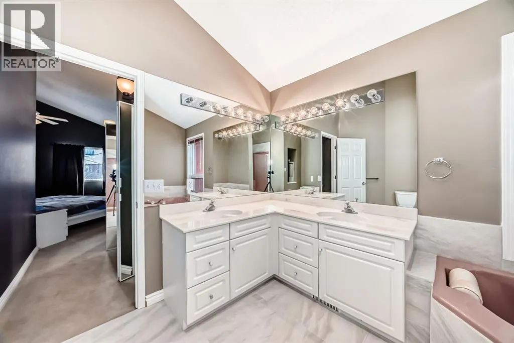 Welcome to 8373 Edgevalley Drive NW, CalgaryDiscover this beautifully maintained 4-bedroom, 3-bathroom offering over 2500 square feet of thoughtfully designed living space in a desirable Northwest Calgary communit. This spacious home features a bright and functional layout, ideal for growing families or those who love to entertain. The main level offers generous living and dining areas filled with natural light, creating a warm and inviting atmosphere. A well-appointed kitchen provides ample counter space and storage, seamlessly connecting to the rest of the home for everyday living and hosting. Upstairs, youâll find comfortable bedrooms designed for relaxation, including a spacious primary retreat with a private ensuite. Additional bedrooms offer flexibility for family, guests, or a home office. With three full bathrooms, convenience and comfort are ensured for everyone. The lower level adds valuable living space, perfect for a recreation room, home gym, or media area. Thoughtful design throughout maximizes both functionality and comfort.Located on Edgevalley Drive NW, this home is close to parks, schools, shopping, transit, and major roadwaysâproviding easy access to all the amenities Northwest Calgary has to offer.Key Features:⢠4 Bedrooms⢠3 Bathrooms⢠Over 2500sq. ft. of living space⢠Family-friendly NW Calgary location⢠Close to schools, parks, and amenities⢠New concrete countertop⢠New bathroom tile in the ensuite⢠Heated floors on the lower level⢠Oversized Double Car Garage with heated floors ⢠Two person jetted tub⢠Vaulted Ceilings This home offers space, comfort, and an excellent locationâan ideal place to call home. (id:27476)