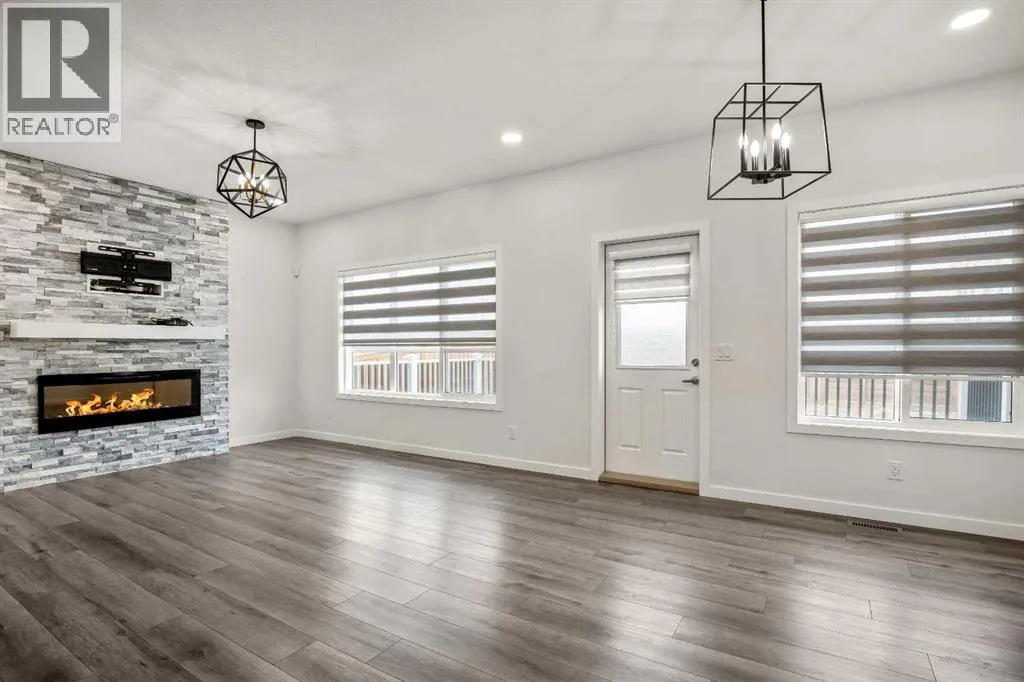 Welcome to this stunning executive-style home offering over 2,200 sq. ft. of fully developed living space, thoughtfully designed for modern family living. This exceptional residence features 7 bedrooms and 4 full bathrooms, providing outstanding space, comfort, and flexibility for growing or multi-generational families. The main floor showcases a bright open-concept layout filled with natural light, including a spacious family room and a formal living room highlighted by a designer-tiled feature wall and fireplaceâperfect for both everyday living and entertaining. A main-floor bedroom with a full 4-piece bathroom offers ideal accommodation for guests or aging family members. Upstairs, you'll find a sunlit bonus room, four generously sized bedrooms, two full bathrooms, and a convenient upper-level laundry room that adds everyday functionality. The primary bedroom retreat truly stands out, featuring an ensuite bathroom designed for relaxation and privacy. The fully finished basement offers exceptional versatility with a large living area, two bedrooms, a full bathroom, ample storage, separate laundry, and a private entranceâideal for extended family or potential rental income. Step outside to a beautiful backyard featuring a large composite deck, offering durability, low maintenance, and the perfect space for outdoor relaxation and entertaining. Recent exterior upgrades include a NEW roof 2025 and NEW sidings 2025. Inside, enjoy modern lighting, premium doors, designer hardware, remote-controlled and Alexa-operated blinds, security cameras, and a keypad entry system. Ideally located near walking paths, parks, schools, medical clinics, dining, and Savanna Bazaar, with quick access to major roadways and just 10mins to Calgary International Airport. Meticulously maintained, and owner-occupied home since November 2020, this property perfectly blends luxury, space, and location. Book your private tour today! (id:27476)