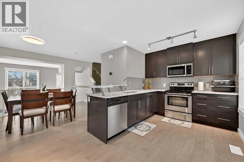 Welcome to this well-appointed, BRIGHT corner END UNIT townhome located in the heart of the family-friendly community of McKenzie Towne. Offering a highly desirable layout with TWO PRIMARY BEDROOMS, each complete with its OWN PRIVATE EN-SUITE BATHROOM and walk-in closet, this home is ideal for professionals, roommates, investors, or anyone seeking flexible and comfortable living. The OPEN CONCEPT main floor is bright and inviting, featuring KNOCKED-DOWN CEILINGS, modern LAMINATE flooring, and LARGE windows that fill the space with natural light throughout the day. The kitchen is both stylish and functional, showcasing CEILING-HEIGHT cabinetry, QUARTZ countertops, STAINLESS STEEL appliances, and a mosaic BACKSPLASH, seamlessly flowing into the dining and living areasâperfect for everyday living and effortless entertaining. Upstairs, enjoy the convenience of UPPER-FLOOR LAUNDRY just steps from both bedrooms. The lower level features an unfinished basement, with access to your DOUBLE ATTACHED GARAGE for excellent practicality. The front yard includes a private patio with a GAS LINE for your BBQ. Visitor parking is conveniently located nearby. This home is MOVE-IN-READY and ideally located, close to schools, shopping, walking paths, South Health Campus, with quick access to Stoney Trail and Deerfoot Trailâa SMART opportunity in a well-established Calgary community. Book your private viewing and see firsthand why this townhome stands out. (id:27476)