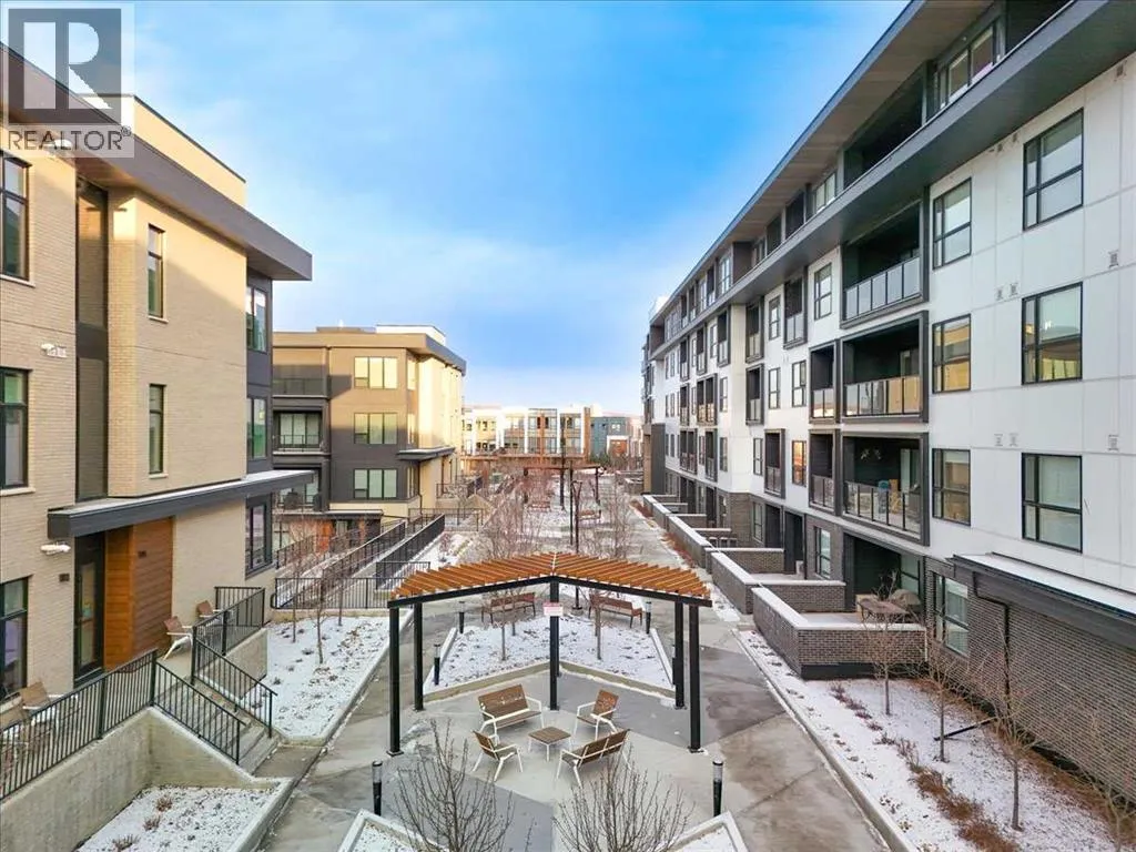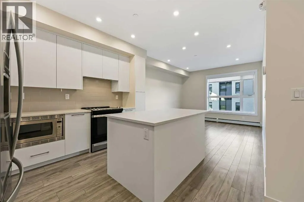 *** OPEN HOUSE SATURDAY FEBRUARY 14th 2026 12-2PM *** Welcome to Capella in University District, a modern, well-built condo in one of Calgaryâs most vibrant and walkable NW communities. This 2 bedroom, 2 bathroom home offers a quiet, courtyard-facing setting with a peaceful outlook, while still being just steps from parks, a playground, and the districtâs best shops, cafés, restaurants, and everyday conveniences. With quick access to U of C, Alberta Childrenâs Hospital, Foothills Medical Centre, Market Mall, scenic pathways, and transit, the location delivers unbeatable lifestyle and long-term value.Inside, the open-concept layout is bright and inviting, finished with 9â knock-down ceilings, triple-pane windows, LED lighting, and durable vinyl plank flooring. The kitchen is designed to impress with quartz countertops, a large quartz island, full-height cabinetry, a tiled backsplash, and a full stainless steel appliance package including a built-in microwave, ideal for cooking, entertaining, or casual mornings at the island. The living and dining areas flow seamlessly and provide excellent functionality for both daily living and hosting.The primary suite offers comfort and privacy with a 4-piece ensuite, while the second bedroom is perfectly positioned near the additional 4-piece bathroom, ideal for guests, roommates, or a dedicated home office. In-suite laundry adds everyday convenience and keeps everything neatly within reach.Step outside to your oversized massive patio complete with a gas line, perfect for summer BBQs, patio furniture, and relaxing evenings. Capella also features a striking lobby, an attractive landscaped courtyard/breezeway, and a fitness centre, adding to the elevated condo lifestyle. Completing the package are titled underground parking and an assigned storage locker. A polished, low-maintenance home in an exceptional location, perfect for professionals, downsizers, or investors looking to be in the heart of University District. (id:27476)