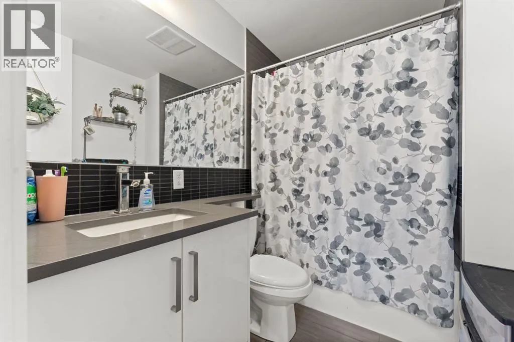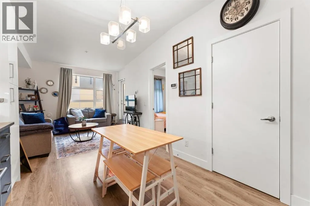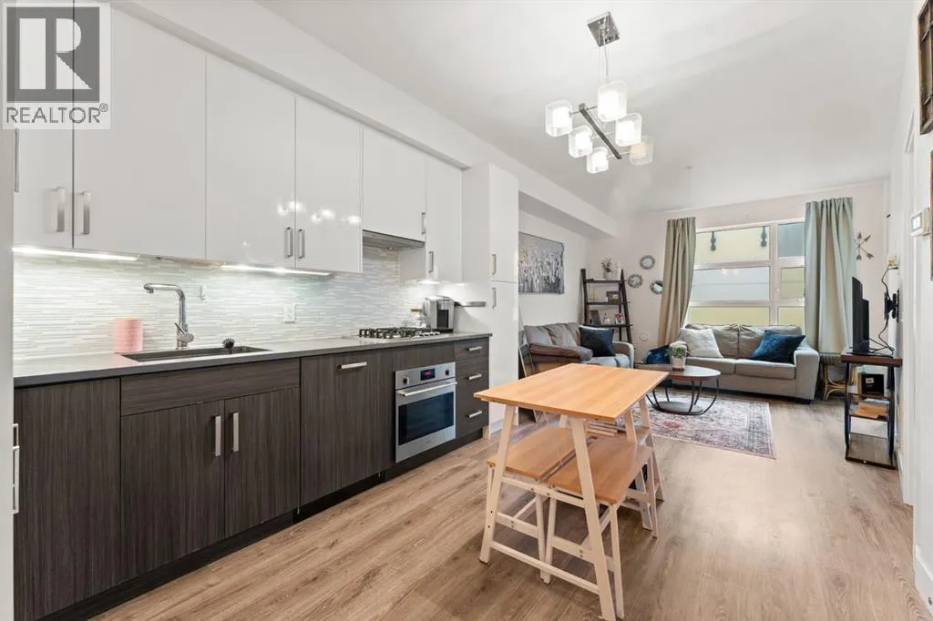 Welcome to Victory & Venture Bridgeland, offering exceptional urban living in one of Calgaryâs most vibrant neighborhoods.This meticulously designed 2-bedroom, 2-bathroom condo features upscale finishes and modern conveniences. The gourmet kitchen boasts high-gloss, high-profile cabinets, quartz countertops with a stylish tile backsplash, and European integrated appliances, including a gas cooktop and built-in oven. Wide plank laminate flooring, 9â ceilings, and modern lighting create a contemporary and spacious feel throughout.Say goodbye to bulky furniture with built-in, floor-to-ceiling wardrobes providing sleek and functional storage solutions. Enjoy the convenience of underground parking and personal storage, ensuring your belongings are secure and easily accessible.For entertaining, take advantage of two community rooftop patios featuring stunning downtown views and social amenities, perfect for hosting friends and family. Experience the perfect blend of style, comfort, and convenience in Bridgelandâs premier condo development. Donât miss your chance to make this incredible property your new home!Contact us today to book a private viewing. (id:27476)