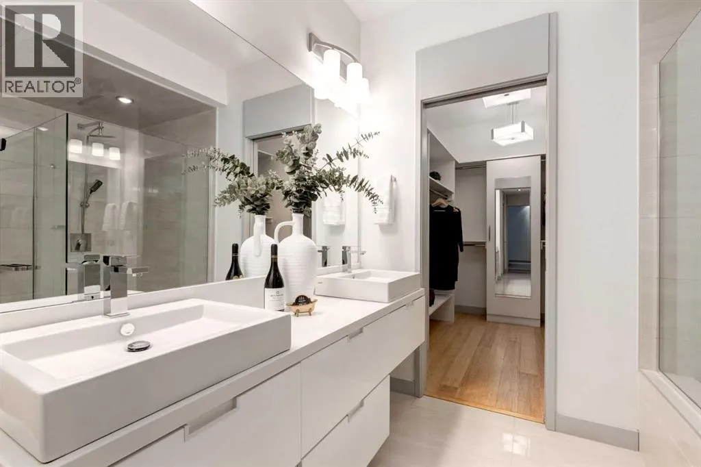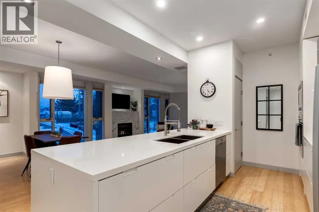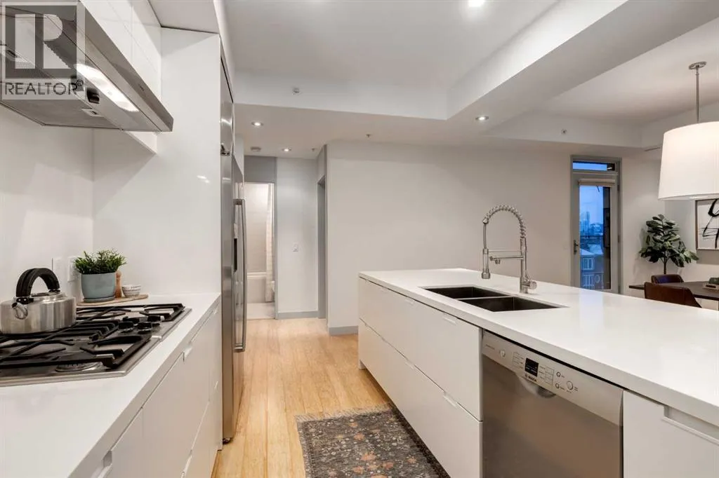 Penthouse living awaits in this stunning, 3 bedroom, 3 bath home with over 1400sqft of thoughtfully designed living space! The open concept layout has 9 ft ceilings, floor to ceiling windows to bring in plenty of natural light and high end finishings throughout. The chef inspired kitchen features lacquered cabinetry, stainless steel appliances, quartz counters, and a large island with breakfast bar overlooking the dining and living rooms - ideal for entertaining. Step out from the dining room unto the balcony to enjoy the downtown, while your spacious living room is anchored by a striking marble-tiled gas fireplace. The primary bedroom has a 5 piece ensuite and an oversized walk-in closet with built-in organizers. 2 additional bedrooms are well proportioned - one with a walk-in closet - are conveniently located near 2 full bathrooms, perfect for sharing or guests. Insuite laundry and a titled stall in the underground parkade complete this home. Located within an easy walk to Marda Loop and it's many shops, restaurants and amenities, plus with a quick commute to downtown, this home is not to be missed! (id:27476)
