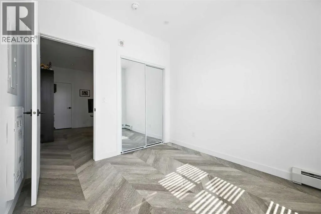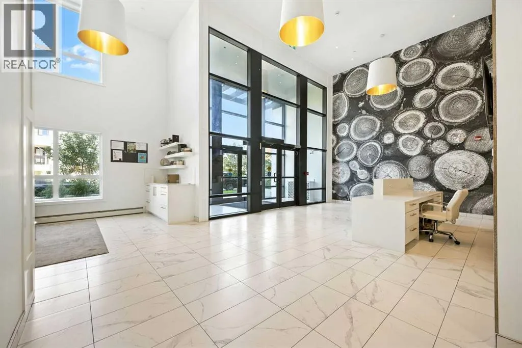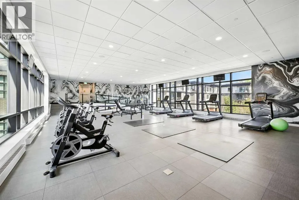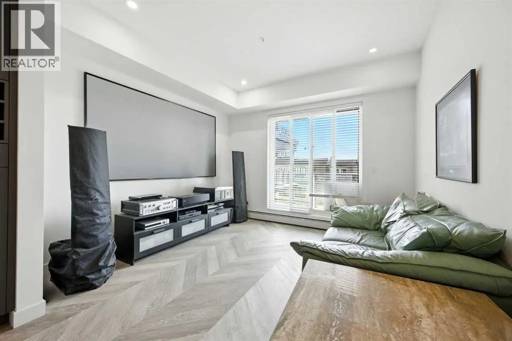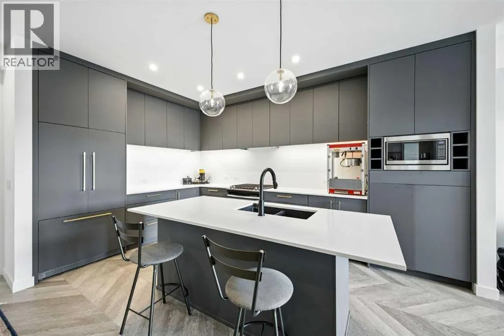 Bright top floor living with a quiet courtyard view and a southeast facing balcony. This 900 square foot 2 bedroom 2 bathroom home in Esquire offers high ceilings, a smart layout, and a clean modern finish package.The kitchen is built for real cooking with ceiling height cabinetry, quartz countertops, tile backsplash, a gas range, and a large island with seating. Herringbone vinyl plank flooring runs through the main living space, which is bright, open, and large enough for a dining setup plus a desk or study nook. Step outside to the southeast facing balcony and enjoy morning sun and evening unwind time overlooking the landscaped courtyard.The primary bedroom features a walk in closet and a 4 piece ensuite with dual sinks and a glass enclosed shower. A second bedroom and full bathroom add flexibility for guests, roommates, or a dedicated office. In suite laundry adds everyday convenience, and a titled underground parking stall keeps your vehicle secure and warm year round.Esquire residents enjoy premium amenities including a fitness centre, pet wash station, and bike storage with maintenance space. Steps from restaurants, cafes, grocery options, parks, pathways, and the off leash area, with quick access to the University of Calgary, Foothills Medical Centre, Alberta Childrenâs Hospital, and Market Mall. Book your showing today. (id:27476)