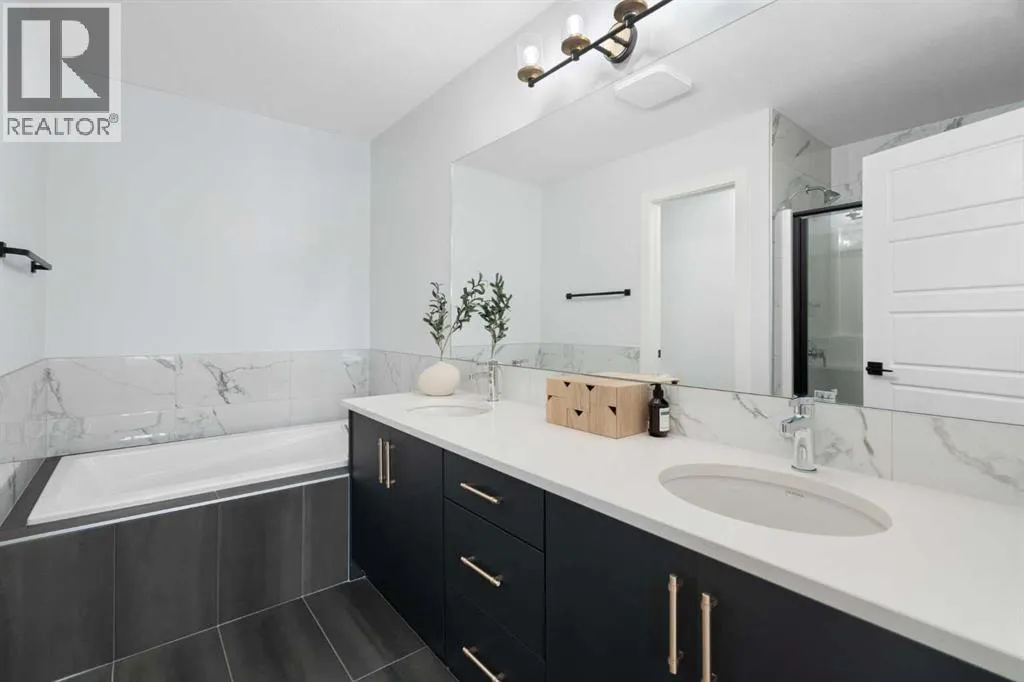 Welcome to 158 Ambleton Drive NW â the kind of home that lets you skip the wait and start living right away. Located in the highly sought-after NW community of Ambleton (Moraine), this thoughtfully upgraded and move-in-ready home built in 2022 offers 1,774 sq ft of well-planned living space, plus an unfinished basement. With a separate side entrance including bathroom and laundry rough-ins, it provides excellent future flexibility.The main floor is centred around a beautifully upgraded kitchen designed for real life, featuring full-height cabinetry to the ceiling, quartz countertops, an oversized island, and upgraded appliances. The open layout keeps everything connected and comfortable, whether youâre easing into your morning or hosting friends.Upstairs, all three bedrooms are thoughtfully placed. The primary suite offers a true retreat with double sinks, a separate tub and shower, a walk-in closet, and the convenience of upper-floor laundry right where you need it.Out back, the home continues to impress with a fully landscaped yard and two-tiered deckâperfect for summer evenings, weekend BBQs, or simply unwinding at the end of the day. A spacious rear entry connects the backyard to the double detached garage, with ample street parking for guests. Central air conditioning, window coverings, and a new roof (2025) add even more peace of mind.Set on a quiet, completed street and steps from the community walking paths, this location offers an easy balance of outdoor space and convenience, with nearby amenities, parks, and quick access to major routes throughout NW Calgary.Where this home really shines is in whatâs already done and waiting for you. The yard is finished, the deck is built, and the upgrades are in placeâno post-possession projects or added costs like youâll find with many new builds. With new home warranty remaining and clear pride of ownership, this home is a perfect fit for first-time buyers or those ready to step up from an apartment or townhome a nd move in with confidence.Call your favourite Realtor and book your showing today! (id:27476)