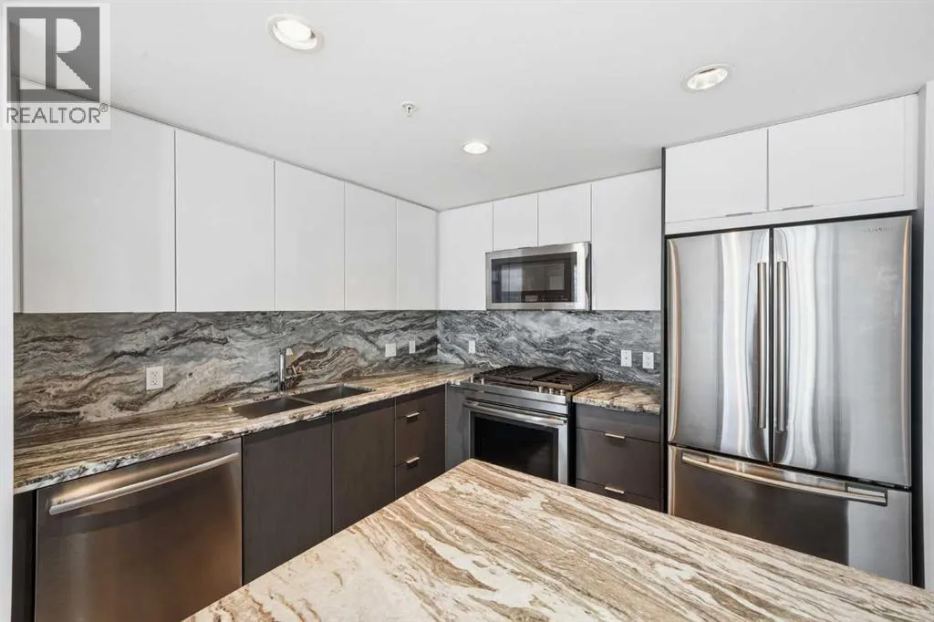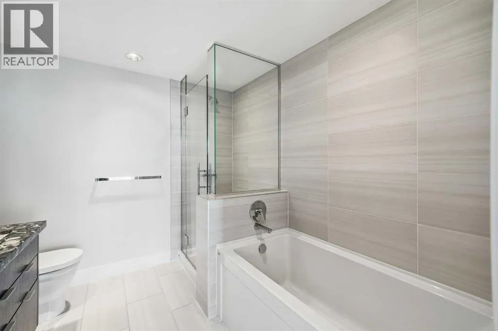 Welcome to this bright and beautifully maintained condo in the heart of East Village, one of Calgaryâs most vibrant and walkable communities. This 2-bedroom, 2-bathroom suite in the highly sought-after Evolution complex offers exceptional value for buyers seeking upscale finishings, comfort, and long-term potential. Freshly painted and move-in ready, this modern home features a spacious open-concept layout with floor-to-ceiling windows that flood the space with natural light. The stylish kitchen is equipped with full-size stainless steel Jenn-Air appliances, granite countertops, and sleek cabinetry â perfect for both everyday living and entertaining. Heated tile floors in the bathrooms add an extra touch of luxury that todayâs homeowners and renters alike will appreciate. The primary suite offers a walkthrough double closet and a generous ensuite complete with dual sinks, a soaker tub, and a separate shower. The second bedroom is thoughtfully positioned near the second full bathroom, making it ideal for guests, roommates, or a home office. Additional features include central A/C, in-suite laundry, underground parking, and assigned storage. Step outside to your large private balcony with a BBQ gas line and take in beautiful views toward the Bow River. Residents of Evolution enjoy an exceptional lifestyle with 24/7 concierge service, a fully equipped fitness centre, sauna and steam rooms, a rooftop patio with BBQs, a social lounge, bike storage, and underground visitor parking. Located just steps from the RiverWalk, CTrain, Superstore, the new Arena District, Calgary Public Library, Studio Bell, and countless restaurants and cafés, this location truly canât be beat. Whether you're entering the market or adding to your investment portfolio, this is a rare opportunity to own a low-maintenance, high-appeal property in one of Calgaryâs most desirable downtown neighbourhoods. (id:27476)