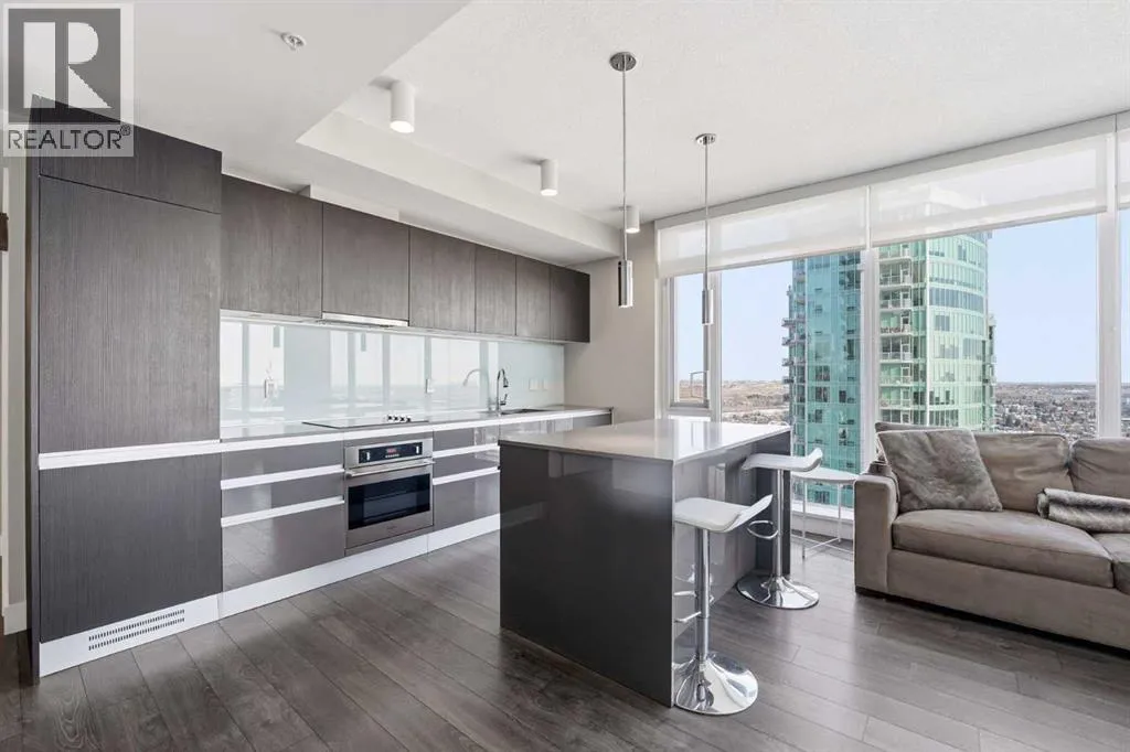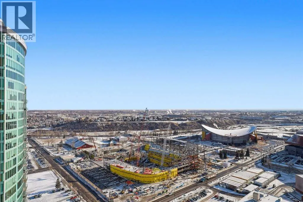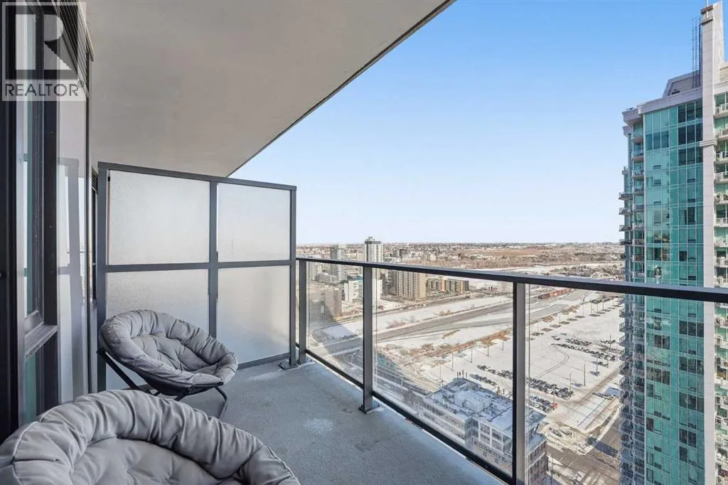 *OPEN HOUSE SUNDAY FEB 15TH 2:00PM-4:00PM* Welcome to elevated inner-city living on the 28th floor, where natural light and thoughtful design come together in this stunning 2-bedroom, 2-bathroom CORNER residence. A major value-add rarely found in this price point: TWO TITLED UNDERGROUND PARKING STALLS (double-long tandem), perfect for multiple vehicles or or if you have a large truck. Additional conveniences include in-suite laundry and walking distance to shopping, coffee shops, and restaurants. This home immediately stands out with its FLOOR-TO-CEILING windows on multiple exposures, flooding the space with sunlight throughout the day. Step onto your private balcony to take in unforgettable sunsets and enjoy front-row seats to Calgaryâs iconic firework displays â all from the comfort of home. Inside, the open-concept layout is both functional and inviting, ideal for everyday living and entertaining alike. The modern kitchen features' quartz countertops, stainless steel appliances, and clean contemporary finishes that flow seamlessly into the living and dining areas. Both bedrooms are generously sized, offering PRIVACY and comfort, while the two full bathrooms provide flexibility for guests, roommates, or professionals working downtown. Residents enjoy access to an impressive lineup of amenities, including a fully equipped GYM, party/lounge space, garden terrace, workshop, and 24 HOUR SECURITY with CONCIERGE service for seamless package delivery. Located just steps from the Bow River pathways, East Village, Stampede Grounds, 17th Avenue, transit, dining, nightlife, and cultural attractions, this home offers unbeatable walkability and urban convenience. Priced exceptionally well for a high-floor corner unit, this property represents a rare opportunity to enter the downtown condo market without compromise â combining views, light, parking, amenities, and location in one complete package. This is city living done right. (id:27476)