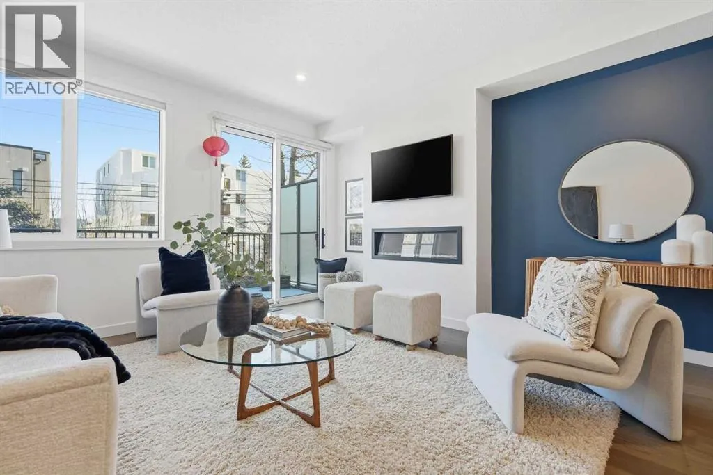 OPEN HOUSE SATURDAY, FEBRUARY 14TH AT 10 AM-12 PM & SUNDAY, FEBRUARY 15TH AT 2-4 PM!!! Sophisticated and upscale, this 3 bedroom townhome is nestled in the desirable inner city community of Bankview, offering SPECTACULAR CITY AND DOWNTOWN VIEWS along with over 2,600 sq ft of beautifully designed living space. The open main level is ideal for entertaining, featuring hardwood floors, lofty ceilings, and stylish lighting. A spacious dining area flows seamlessly into the well appointed kitchen, complete with quartz countertops, two large islands providing exceptional prep space, abundant storage, and stainless steel appliances including a wine fridge. The inviting living room, anchored by a sleek electric fireplace, offers balcony access for enjoying the views. A 2 piece powder room completes the main level. The second level hosts a quiet office area, two bedroomsâincluding one with its own private 5 piece ensuiteâa 4 piece main bath, and a convenient laundry room. Ascend to the top level to discover a secluded primary retreat featuring a generous walk in closet and a luxurious 5 piece ensuite with dual sinks, a large vanity, freestanding soaker tub, and oversized shower. A versatile flex space on this level is perfect for a home office or fitness area and provides access to a spacious rooftop patio showcasing expansive city and downtown vistas. The entry level includes a recreation/games area and direct access to the heated double attached tandem garage. This prime location offers effortless access to vibrant 17th Avenue, as well as nearby schools, shopping, and public transit. (id:27476)