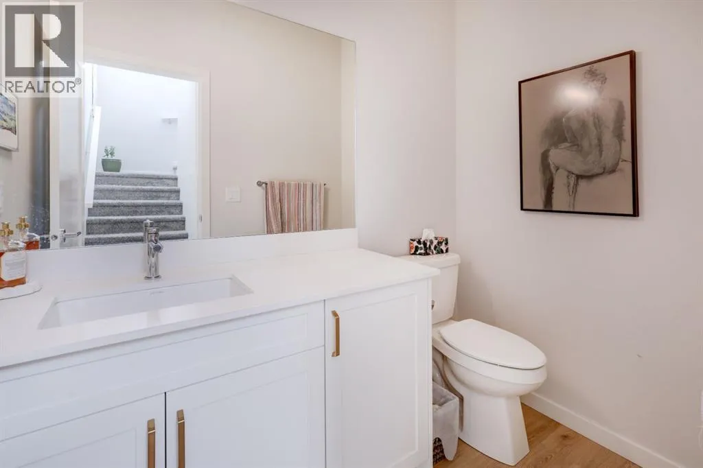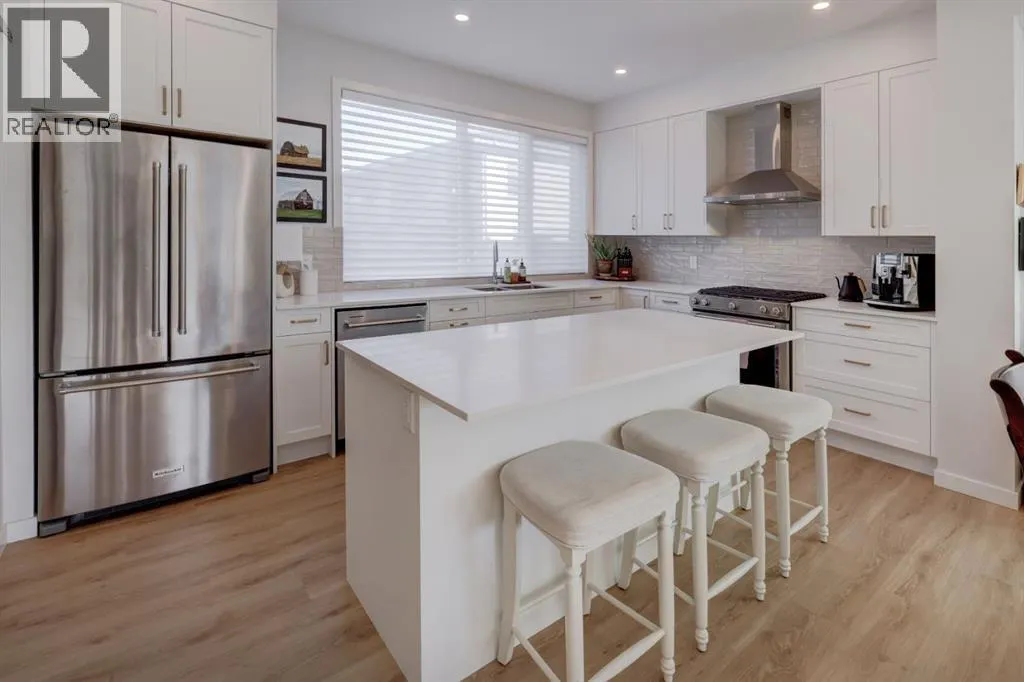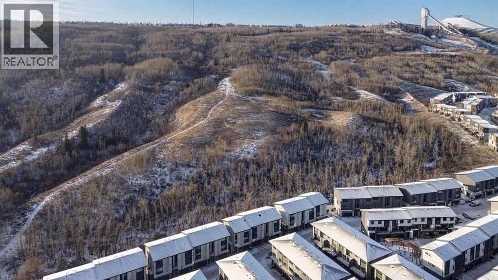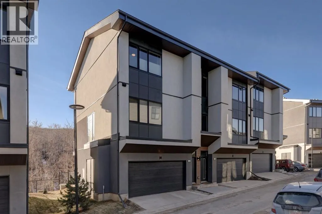***Please check out the Virtual Tour!***. Welcome to the community of Medicine Hill and the Village at Trinity Hills. One of Calgary's most elegant and sophisticated urban dwellings. This end unit town home comes with 1988 square feet of finished living space. The open floor plan flows seamlessly from the gorgeous living room with incredible vistas to the large dining room and gourmet kitchen. The kitchen has a large island, upgraded stainless steel appliances and granite countertops. The kitchen flows perfectly into the dining and living rooms which is fabulous for entertaining family and friends. Upstairs, you will find three bedrooms and 2 4pc bathrooms with one bathroom being the primary bedroom ensuite. In the basement you will find a spacious 2 car double attached garage and recreation room which leads outside to a beautiful patio. Back on the main second floor you will love the outdoor patio to cook, eat and relax all the while enjoying beautiful vistas of forest reserve behind you. This home comes with over $35,000 of additional upgrades which include upgraded appliances, California closets, high end window coverings and upgraded drawers. The Village at Trinity Hills is a revolutionary and modern community for the Calgary area; integrates upscale family living within the parameters of commercial and professional buildings and services. This home allows you to walk out your front door and within minutes be at the grocery store, pharmacy, pet shop, medical building and so much more. Within minutes from Calgary Olympic Park this home provides quick access to downtown and just over an hour to Banff National Park. Please contact me for showing information and come see what modern living in the heart of Calgary looks like in 2026. (id:27476)