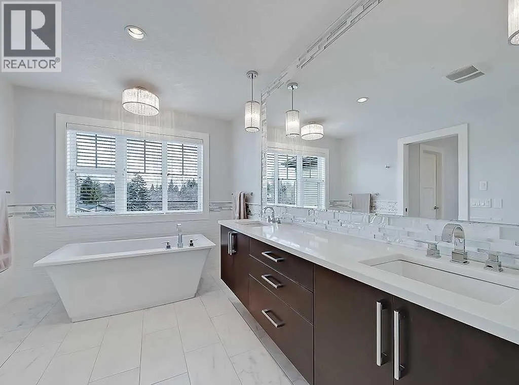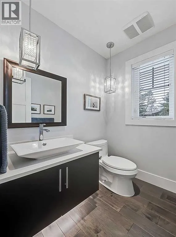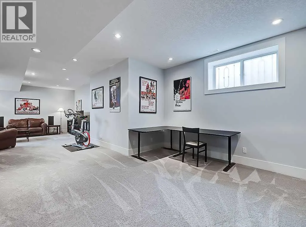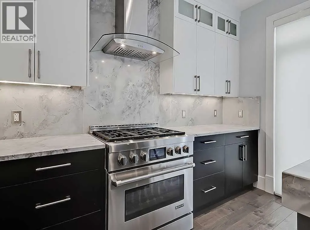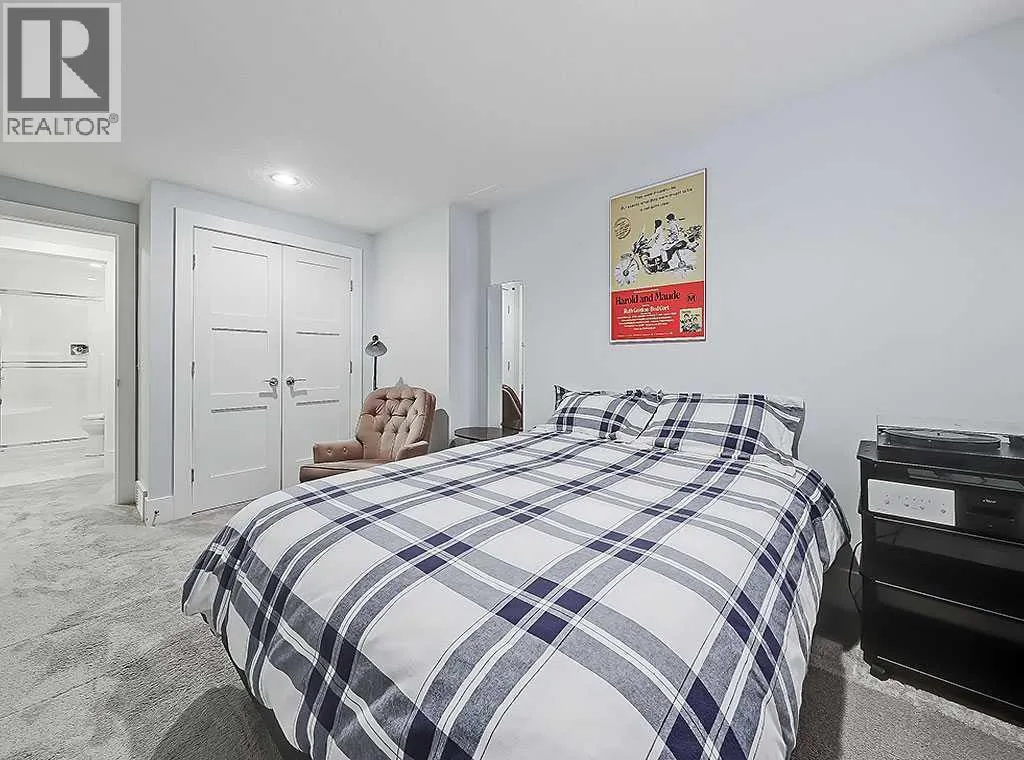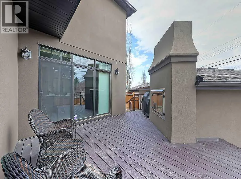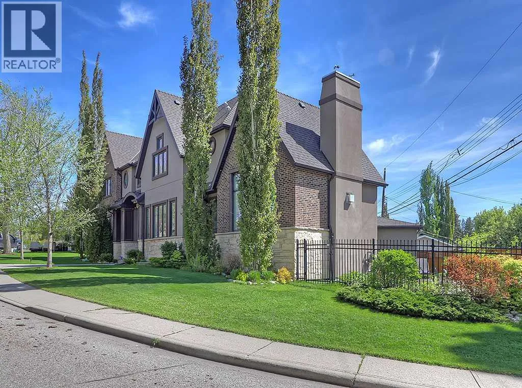 Nestled in the sought-after community of Rosemont, this exceptional home offers the perfect blend of modern design and timeless craftsmanship. Ideally located, Rosemont provides easy access to top-rated schools, shopping, dining, and major commuter routes. Just steps from Confederation Park, residents can enjoy scenic pathways, playgrounds, and year-round outdoor activities, all while being only minutes from downtown Calgary. This beautifully crafted two-storey home offers over 3,700 sq. ft. of thoughtfully designed living space, finished with high-end materials throughout. Featuring four bedrooms, 3.5 bathrooms, an oversized double detached garage, and a fully landscaped and fenced yard, every detail has been carefully considered and meticulously maintained. The paved back lane adds further convenience and enhances the overall livability of the property. Inside, premium finishes create a warm yet sophisticated atmosphere. Wide-plank hardwood flooring, quartz countertops, and floating vanities with under-mount lighting add refined elegance throughout the home. The living room is bright and expansive, highlighted by impressive 16-foot ceilings, while in-floor heating in the primary ensuite and basement bathroom provides an added layer of comfort. A main-floor office offers an ideal space for remote work or quiet study. The gourmet kitchen is a chefâs dream, showcasing stainless steel appliances, a large quartz waterfall island, and a seamless connection to the private composite deckâperfect for entertaining. The outdoor space is complete with a striking gas fireplace, ideal for cooler evenings. Upstairs, the primary suite serves as a true retreat, featuring a spacious walk-in closet and a spa-inspired ensuite with a stand-alone tub and steam shower. The fully finished lower level is designed for both relaxation and entertainment, offering a media room, wet bar, games area, and a generous fourth bedroom with a full bathroom. Situated on a quiet street in one of Calgar yâs most desirable neighbourhoods, this exceptional home is truly move-in ready. Experience the best of Rosemont living in a property that seamlessly combines quality, comfort, and convenience. (id:27476)