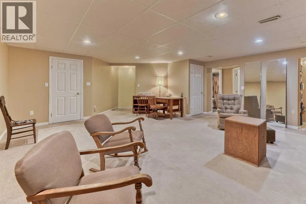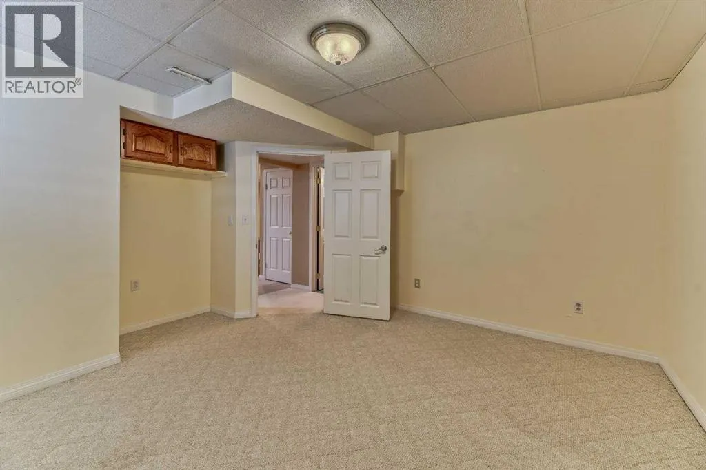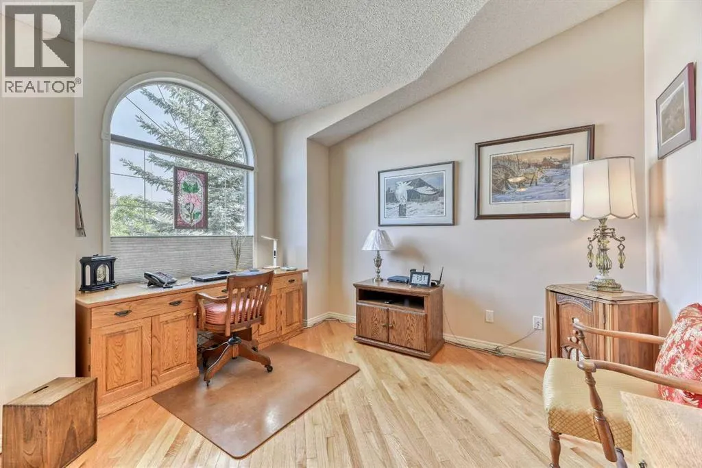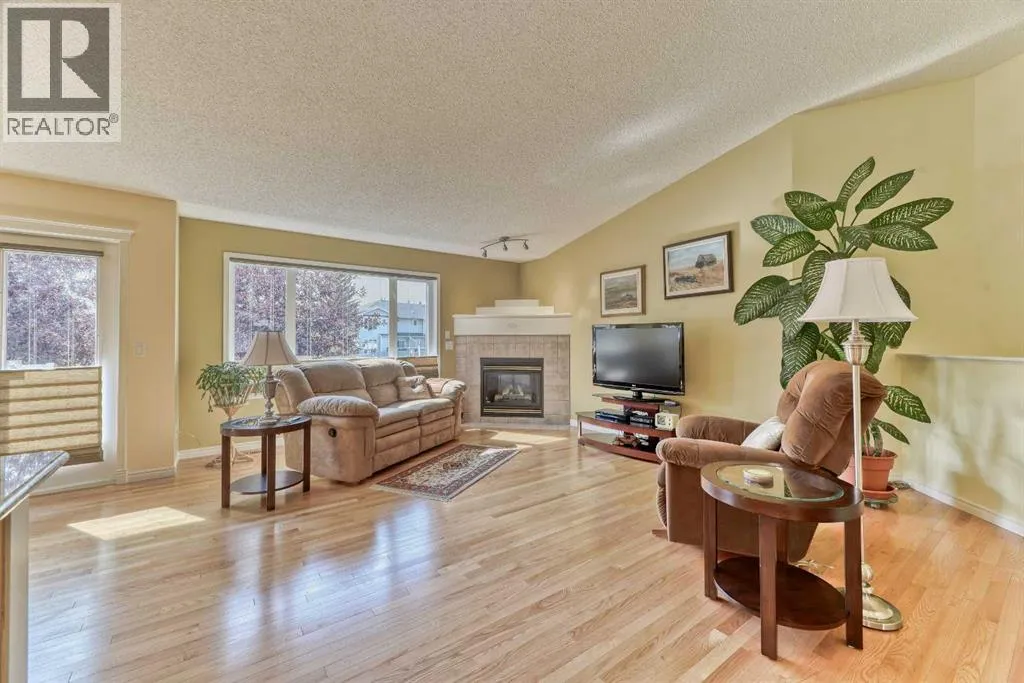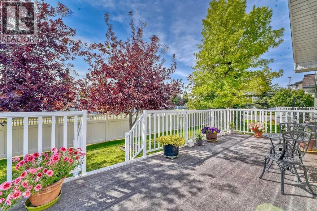 Welcome to this exceptional BUNGALOW villa in the highly sought-after community of Scenic Acres Villas, just a short walk to the LRT. This fully finished home with a DOUBLE attached garage is filled w/ NATURAL LIGHT and features soaring VAULTED ceilings, 3 full bathrooms, and a sunny south-facing backyard with a BRAND NEW extended deck and gas BBQ hookup. The main floor showcases gleaming diagonal-laid HARDWOOD, a bright den that can also function as a second sitting room (or even a second bedroom), and an expansive living room highlighted by vaulted ceilings & a cozy gas fireplace. The generously sized dining room easily accommodates family gatherings, while the eat-in kitchen impresses with GRANITE countertops, upgraded appliances including an Ultraline gas stove, and a clever pull-out wood table that tucks neatly away when not in use. The primary bedroom is a true retreat, complete with a walk-in closet & a spa-inspired ensuite featuring heated floors, an oversized shower with jets, colour therapy, and a built-in sound system. A convenient laundry nook with washer, dryer, and additional storage completes the main level. The fully developed lower level offers excellent additional living space --a large bedroom, a spacious recreation or games room with an electric fireplace, a FULL bathroom, and two separate storage rooms. Hobbyists and DIY enthusiasts will appreciate the impressive workshop with 220 wiring. Additional highlights include central vacuum, garage storage shelving, NO POLY B plumbing, nearby visitor parking, and pet-friendly living (with board approval). This outstanding property offers the perfect opportunity to downsize without compromiseâenjoying space, light, and comfort in one of NW Calgaryâs most desirable villa communities. (id:27476)