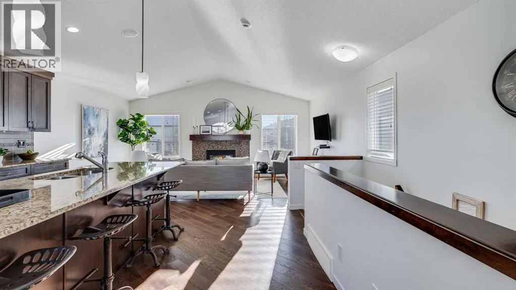 Welcome to 389 Cranberry Circle SE, a thoughtfully designed home where the main living space is elevated to the top floor, creating an exceptional environment for everyday living and entertaining. This upper level is the heart of the home, showcasing vaulted ceilings, a spacious open-concept layout, and abundant natural light pouring in through large windows. The inviting living area features a beautiful gas fireplace framed by two oversized windows, creating a warm and visually striking focal point. A generous dining area flows seamlessly from the kitchen, making it ideal for hosting gatherings both large and small.The centrally located kitchen is designed for entertaining, complete with granite countertops, a gas range, dark cabinetry with ample storage, and a functional island offering additional cabinetry. Just off the dining area, step onto the upper balcony extending your entertaining space outdoors. A convenient 2-piece bathroom completes the upper level, while the home is wired for sound throughout, enhancing both daily living and hosting.The main floor is dedicated to rest and privacy, offering two generously sized bedrooms, each with its own private ensuite and walk-in closetâa rare and highly desirable layout. A thoughtfully designed back entry includes custom cabinetry, hidden storage, and stacked laundry, conveniently located near the bedrooms.The fully developed basement adds versatility, featuring a large third bedroom, a full bathroom, and an expansive recreation area ideal for a home theatre, kidsâ play zone, or multi-purpose family space.Outside, enjoy a south-facing backyard featuring a spacious deck and a stamped concrete patio, surrounded by low-maintenance landscapingâperfect for relaxing, entertaining, and enjoying the sun all day. A double detached, insulated garage completes the property.Additional comfort features include central air conditioning and on-demand hot water, enhancing efficiency and year-round comfort.Ideally locate d close to parks, schools, and shopping, with excellent access to Deerfoot Trail and Stoney Trail, this bright, spacious, and intelligently designed home offers a unique layout that truly enhances how you live and entertain. (id:27476)