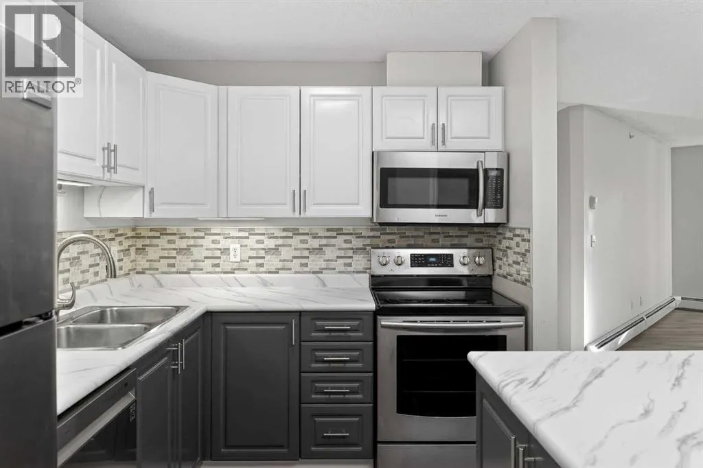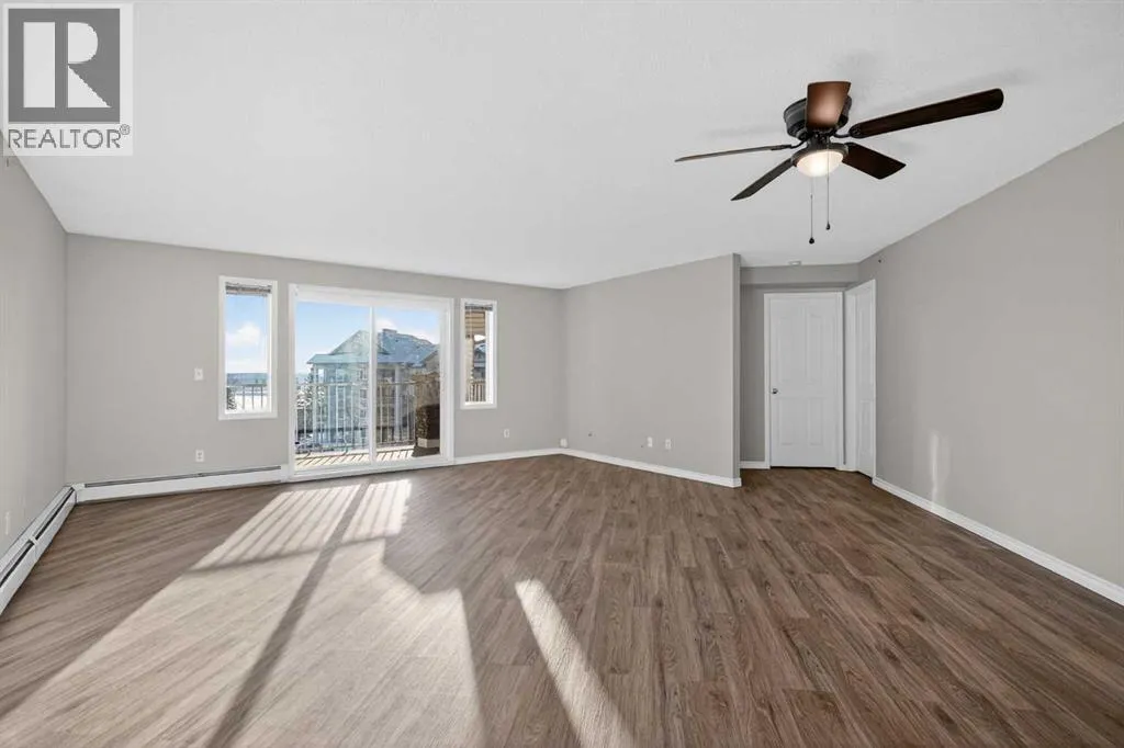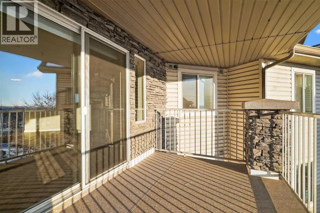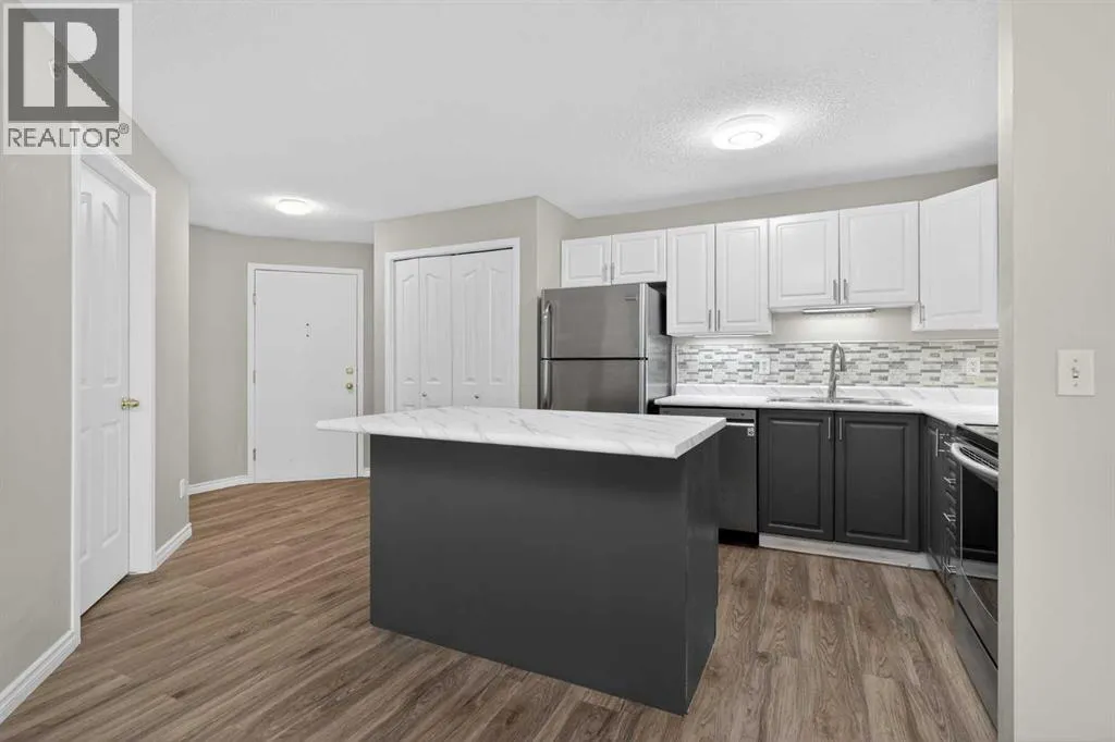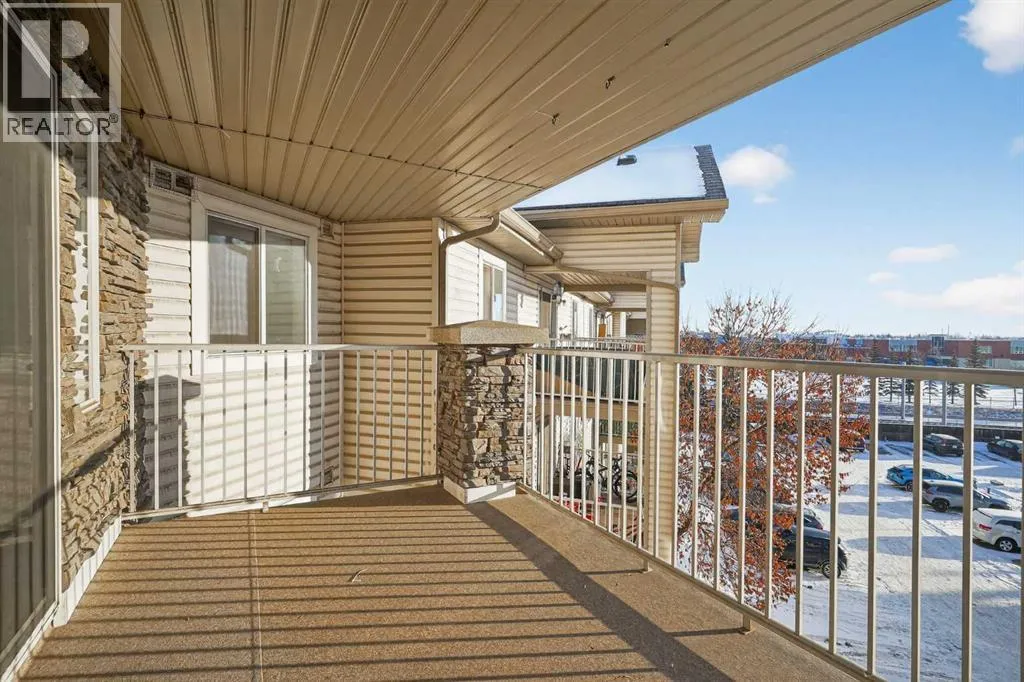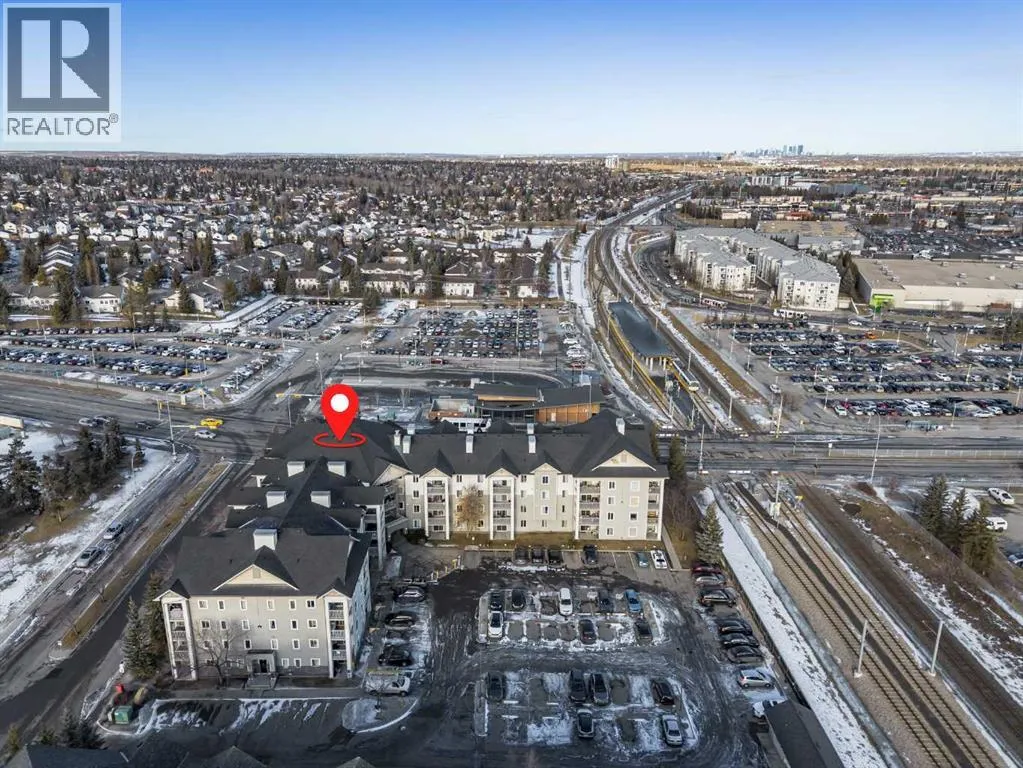 Welcome to this exceptionally spacious top-floor condo in the vibrant community of Somerset, perfectly positioned adjacent to the endless amenities of Shawnessy. Offering an impressive 1201 sq. ft - the largest floor plan in the building - this 2 bed + den, 2 bath residence delivers space, functionality, and value rarely found at this price point. Enjoy sunny days on your south-facing covered balcony (7'7" x 12'4"), complete with a gas BBQ line, ideal for year-round grilling and outdoor relaxation. Inside, youâll find newer flooring throughout, complemented by a stylish kitchen featuring two-tone cabinetry (white uppers, charcoal lowers), newer stainless steel appliances, and a central island perfectly suited for meal prep and entertaining. The thoughtfully designed layout includes a generous den / storage room, plus a separate laundry room with additional storage - a true standout for condo living. The spacious primary bedroom offers a walk-in closet and a private ensuite, while the second bedroom and full bath provide excellent flexibility for guests, a home office, or shared living. Condo fees are exceptionally comprehensive and include ELECTRICITY - a rare and valuable inclusion not offered by most buildings - along with heat, water, sewer, and trash, delivering substantial monthly savings. The unit also comes with an assigned parking stall and ample visitor parking. All of this is just steps from shopping, dining, recreational services, and the Somerset LRT, making daily life and commuting effortless. A rare combination of size, location, and inclusions, this top-floor Somerset condo is one you wonât want to miss. (id:27476)